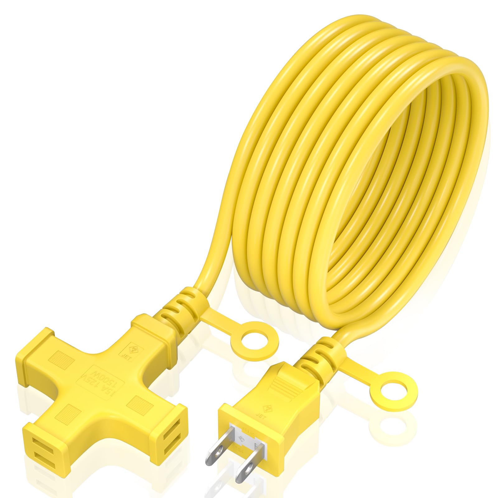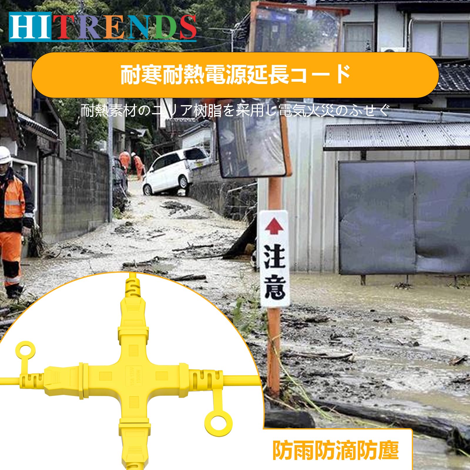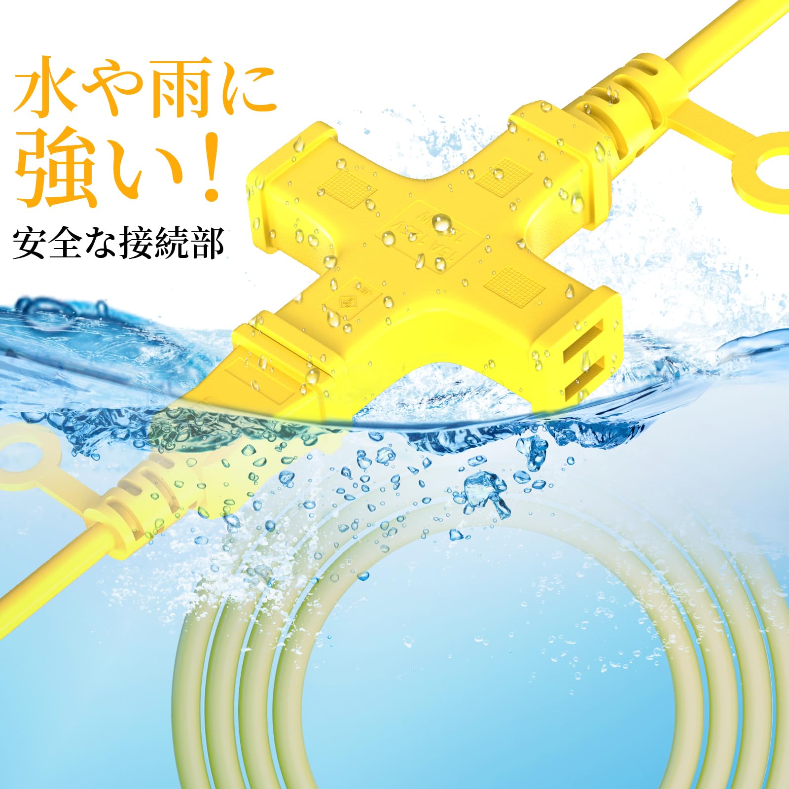 HITRENDS 延長コード 15m 延長コード 屋外 電源コード 電源タップ 15m 3個口 延長コード 15m 3分岐 延長コード 1500W 防雨型 ソフトケーブル 延長コード 十字型トリプル 延長ケーブル 延長コード 作業用 野外用延長コード コードリール イエロー (15m)