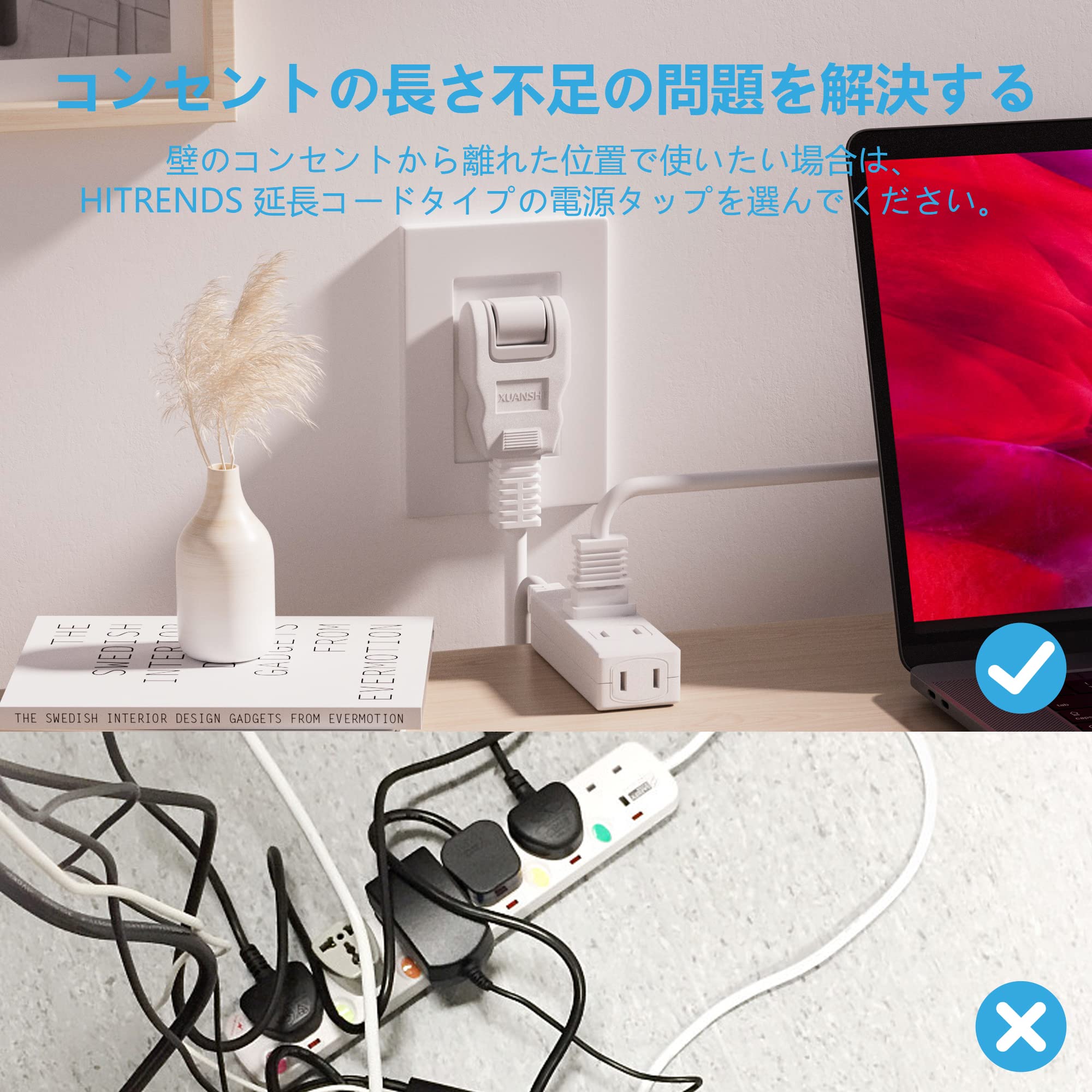 【仕様】この2メートルのコンセントは電気や機器の電源を拡張するのに最適です。トラッキング火災防止付きの延長コードは、最大1500Wの負荷に耐えることができ、屋内と屋外の電気の電源延長での使用に適しています。壁挿しタイプのコンセントタップは延長コードの巻き付けがないので、コンセントの周りもスッキリです。小型でコンパクト、お出かけでも、カバンのスペースを占めません。持ち出すのが便利で、旅行や出張などにも最適です。コンセントは火災を予防する絶縁キャップ付き180°スイングプラグを採用しました。狭い場所でも配線しやすいで。【商品仕様】定格:15A、125V定格電力:1500W まで(合計)【電源コード長】:2m【電源プラグ】2P【パッケージ内容】2* 2メートル 延長コード