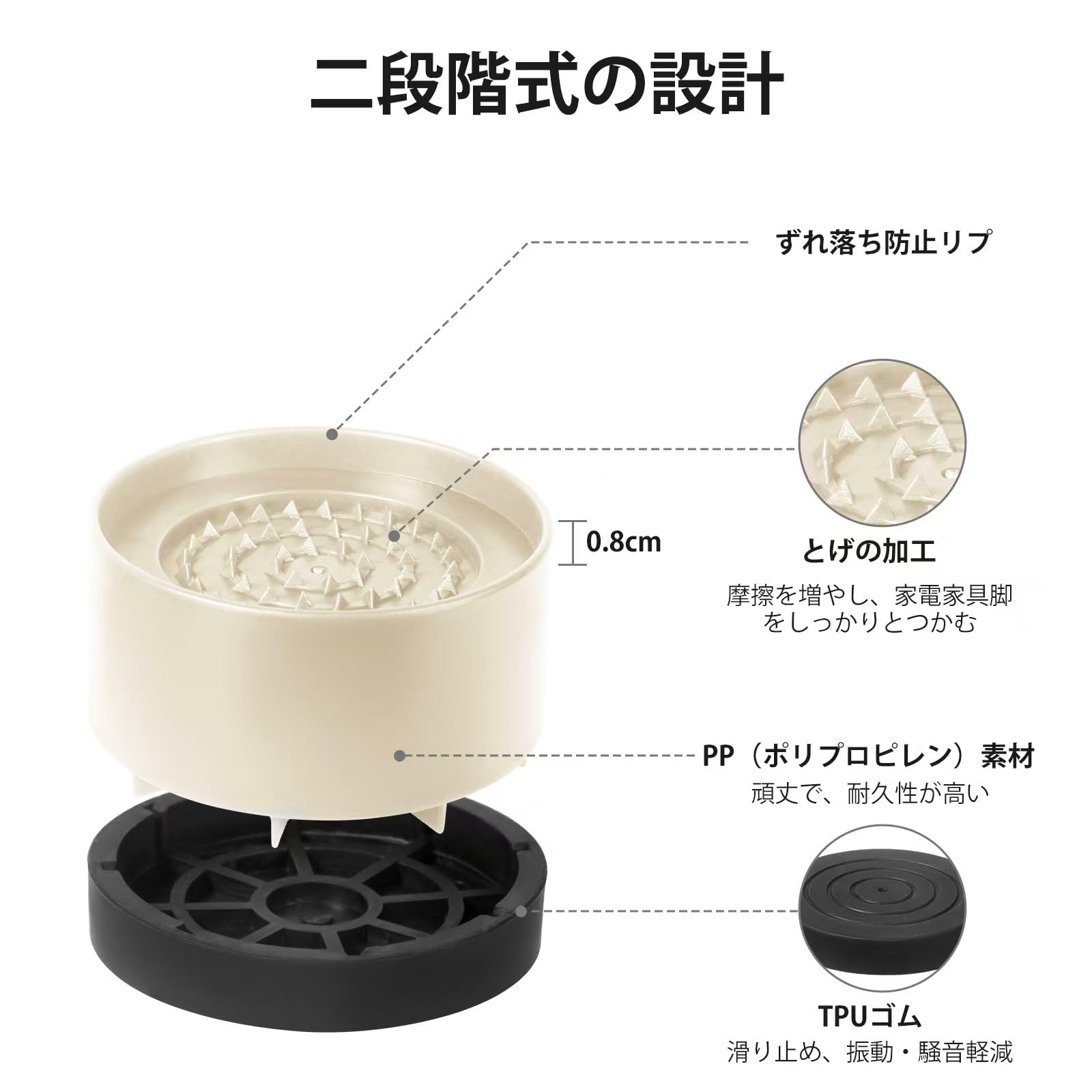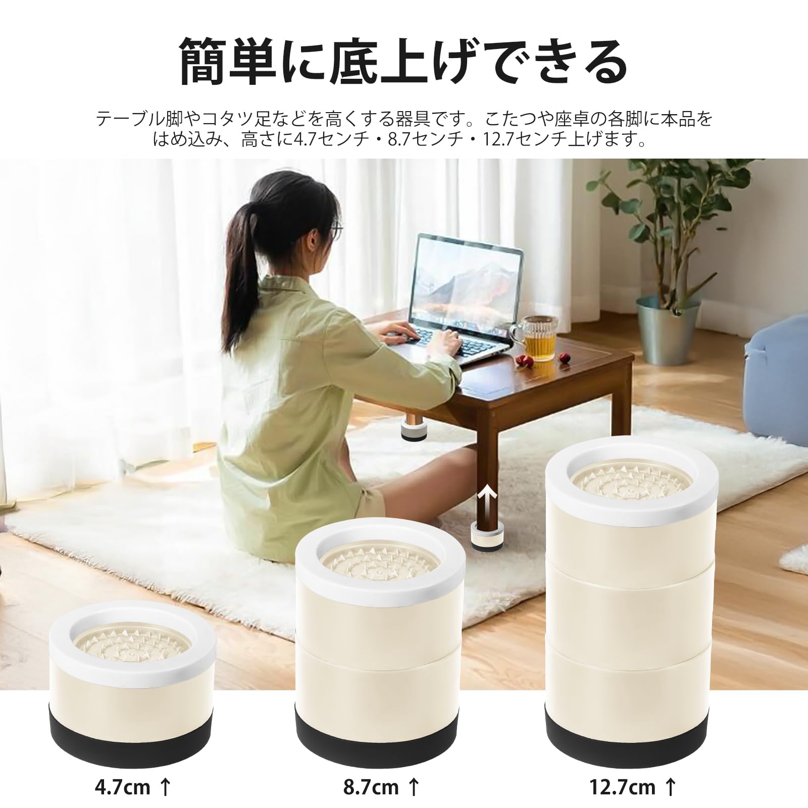 Umelee テーブル 高さ調整 机 4.7cm上げる テーブル 脚 継ぎ足し 2段階式 テーブル高さ調整器具 コタツ 高さ上げ ベッド・ソファー 足上げ こたつの高さを上げる足 家具・家電向け 滑り止め 床に傷防止 耐荷重1000kg 4個入り ベージュ