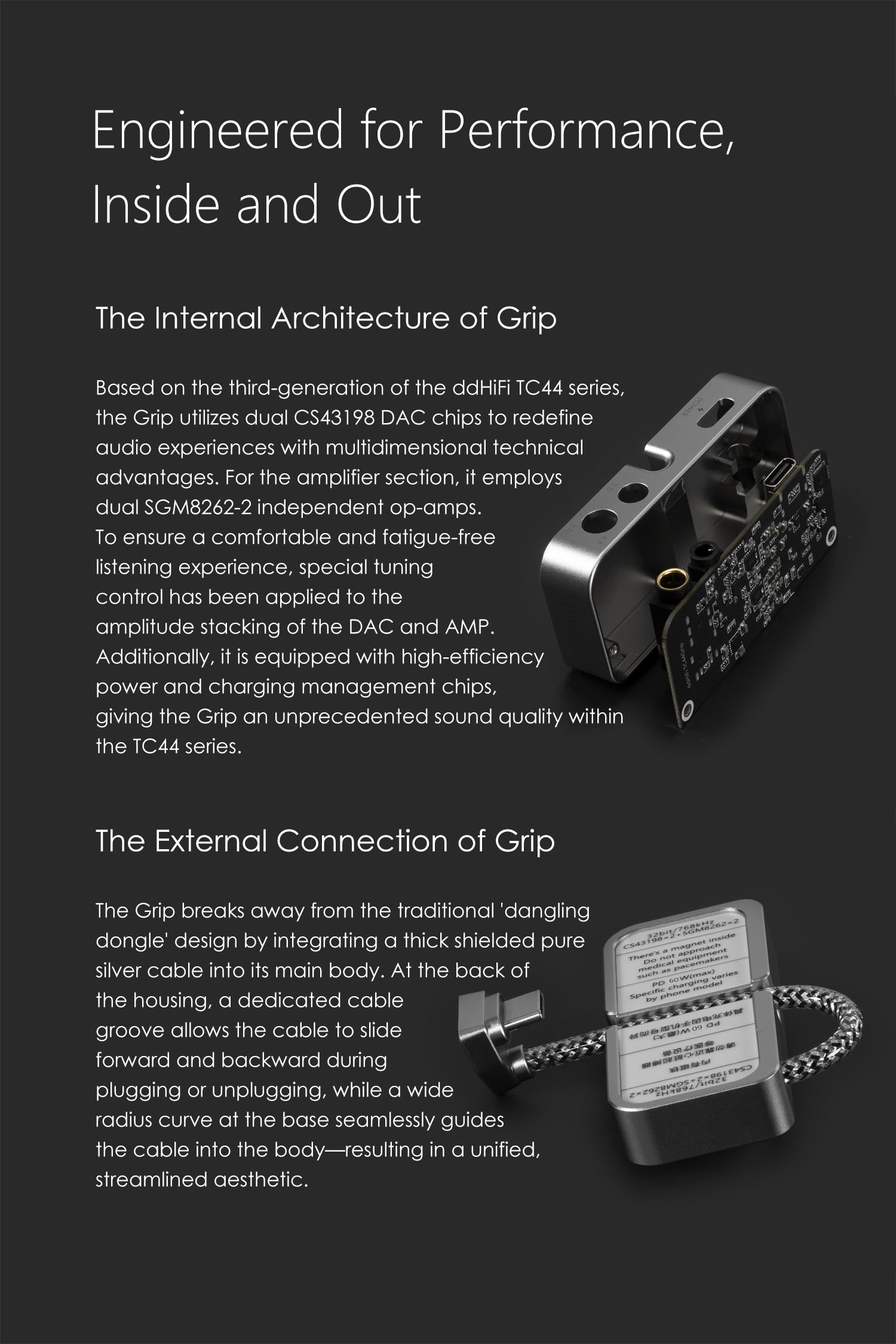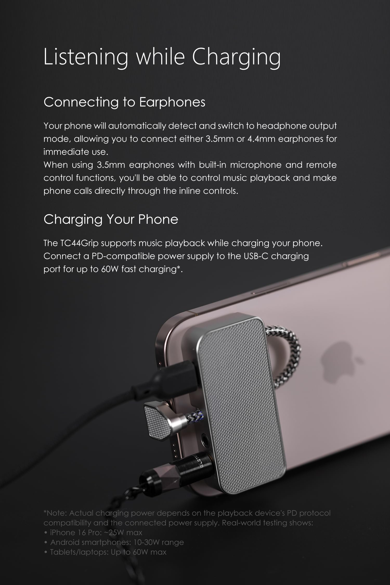 DD ddHiFi TC44Grip ハイレゾ DAC/アンプ デュアル CS43198 と デュアル SGM8262-2 | 32ビット/768kHz & DSD256 | 60W PD 充電 | 3.5mm/4.4mm バランス端子