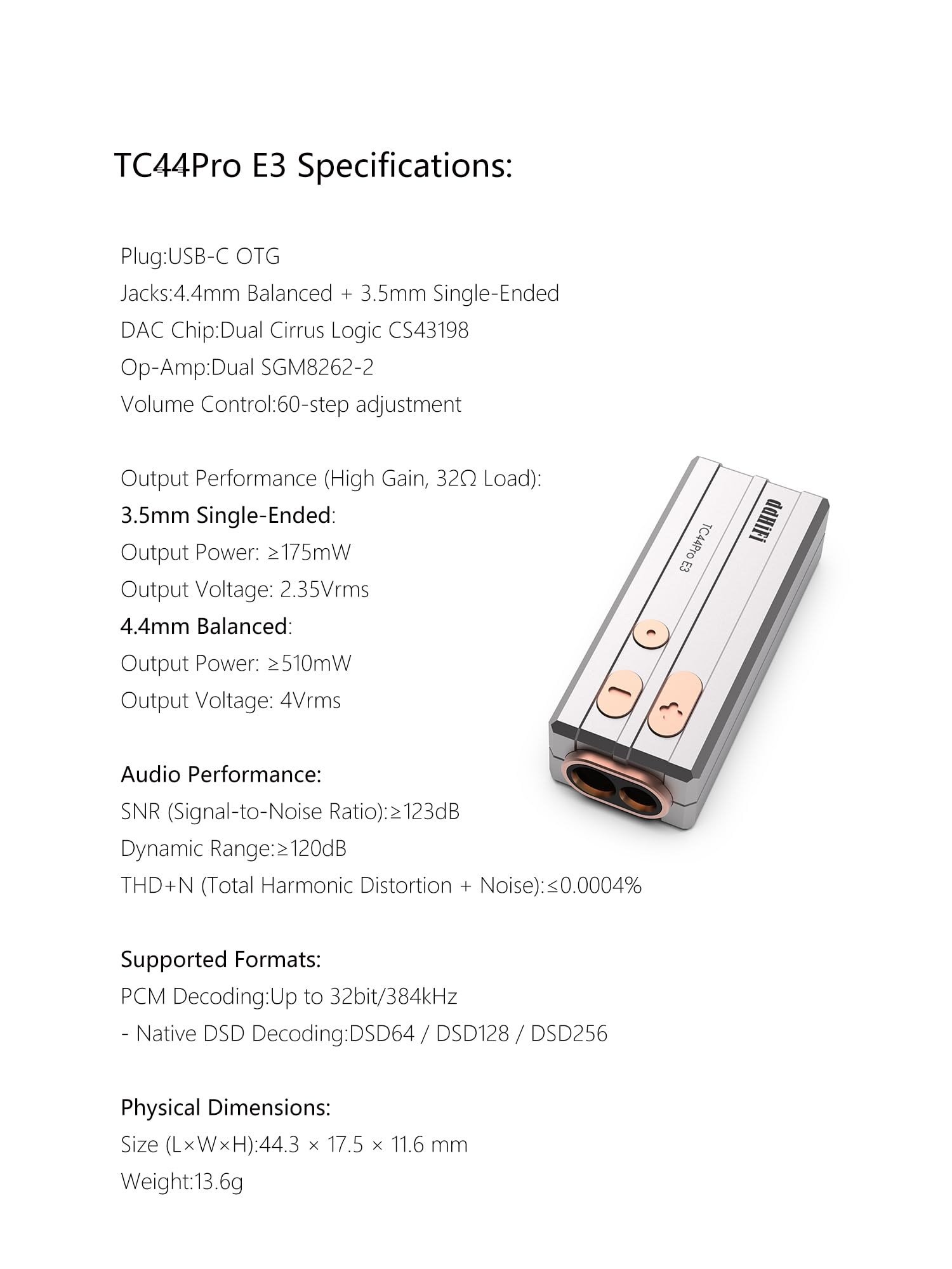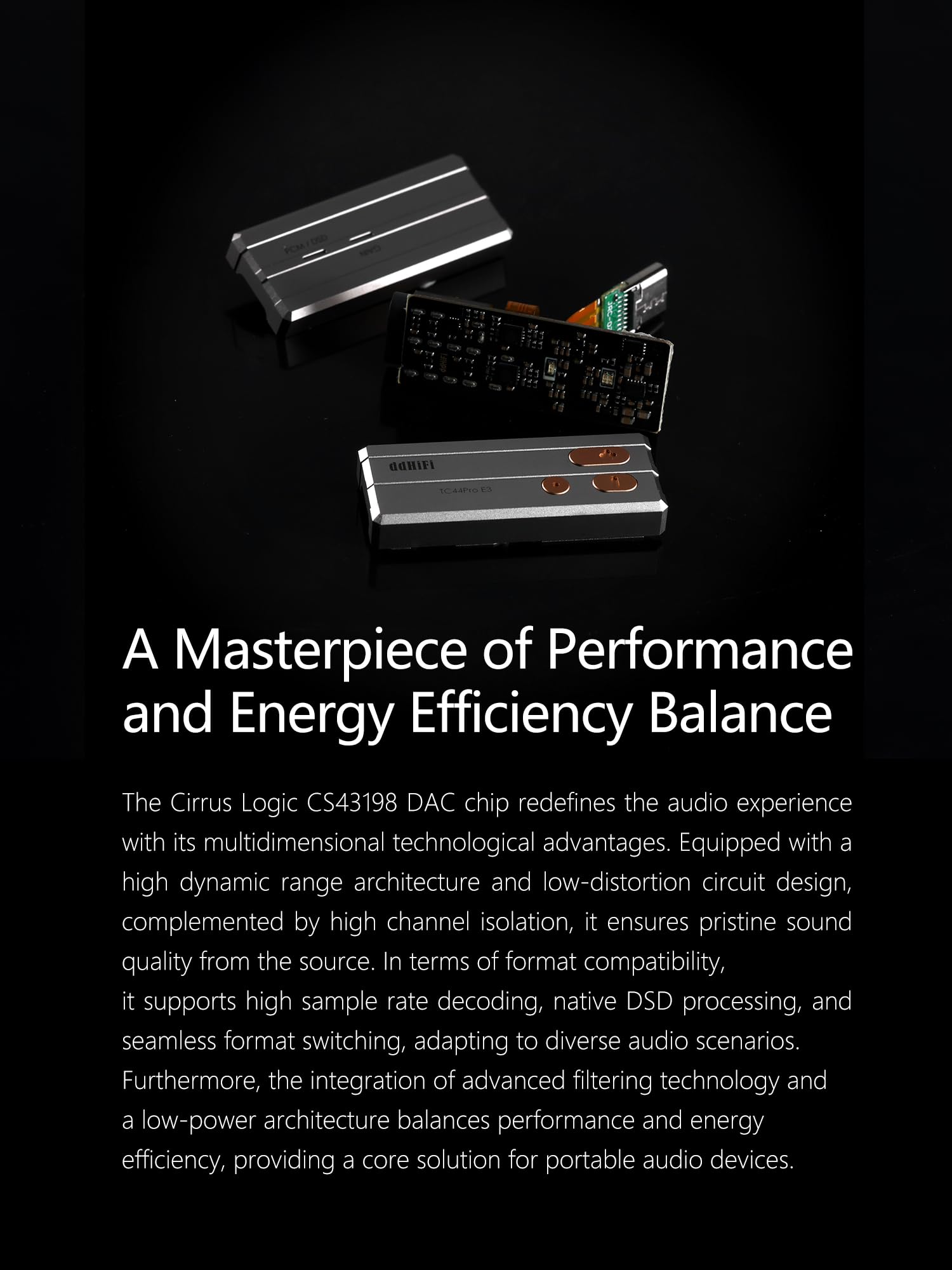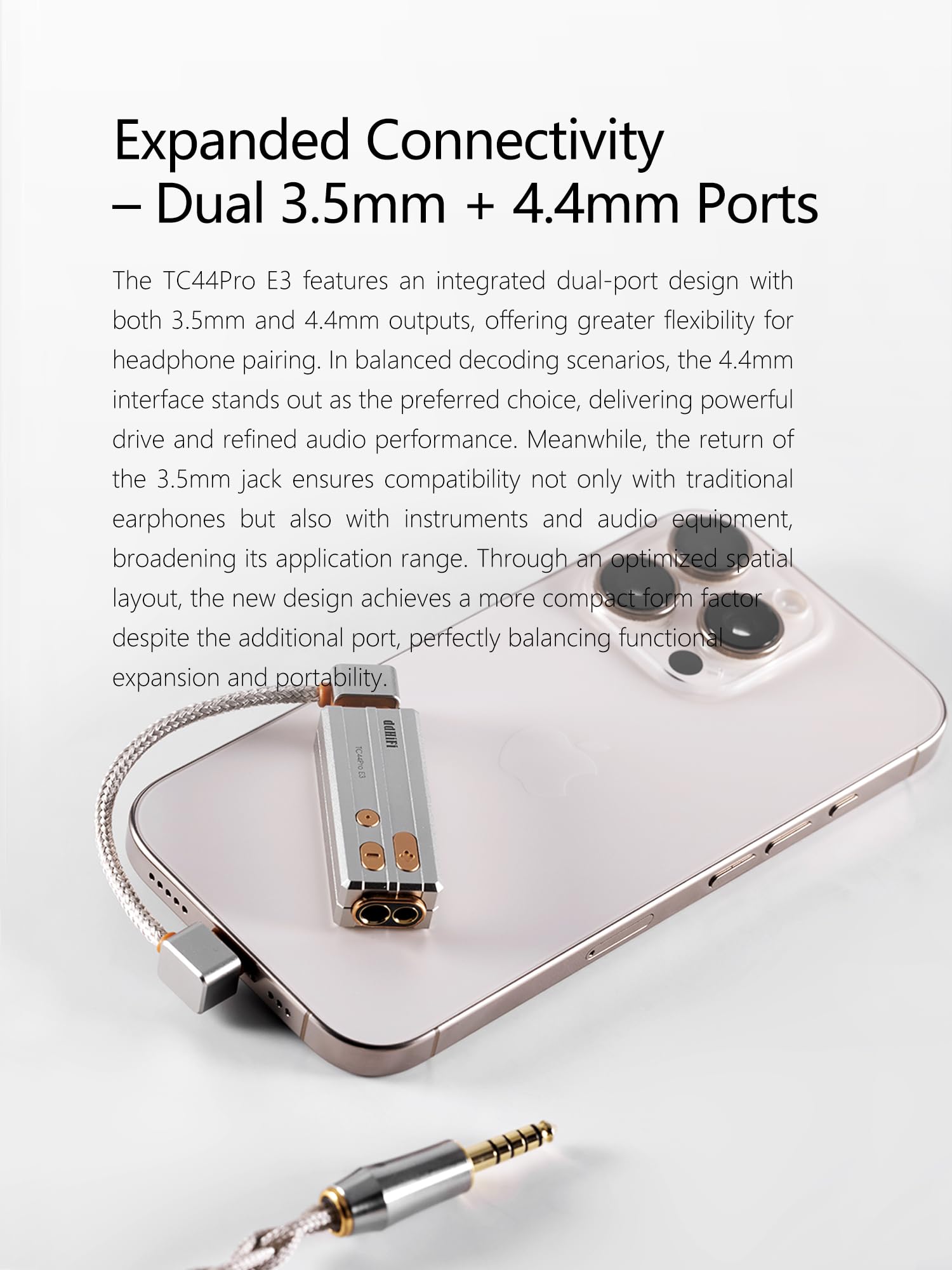 DD ddHiFi TC44Pro E3 ハイレゾDAC/AMPアダプター、デュアルCS43198 DAC、3.5mm&4.4mmバランス出力、電話/PC適用着脱式USB-Cケーブル付き