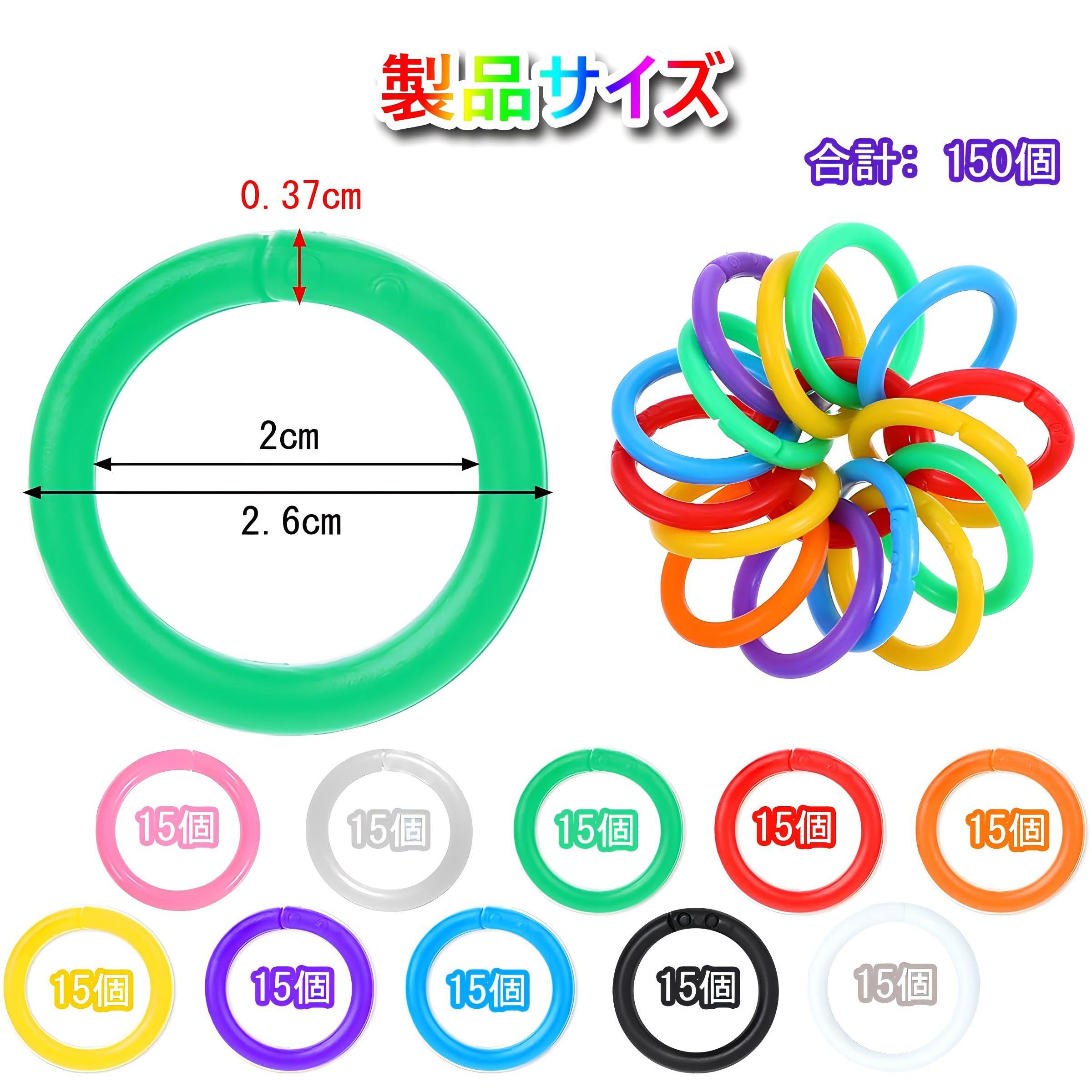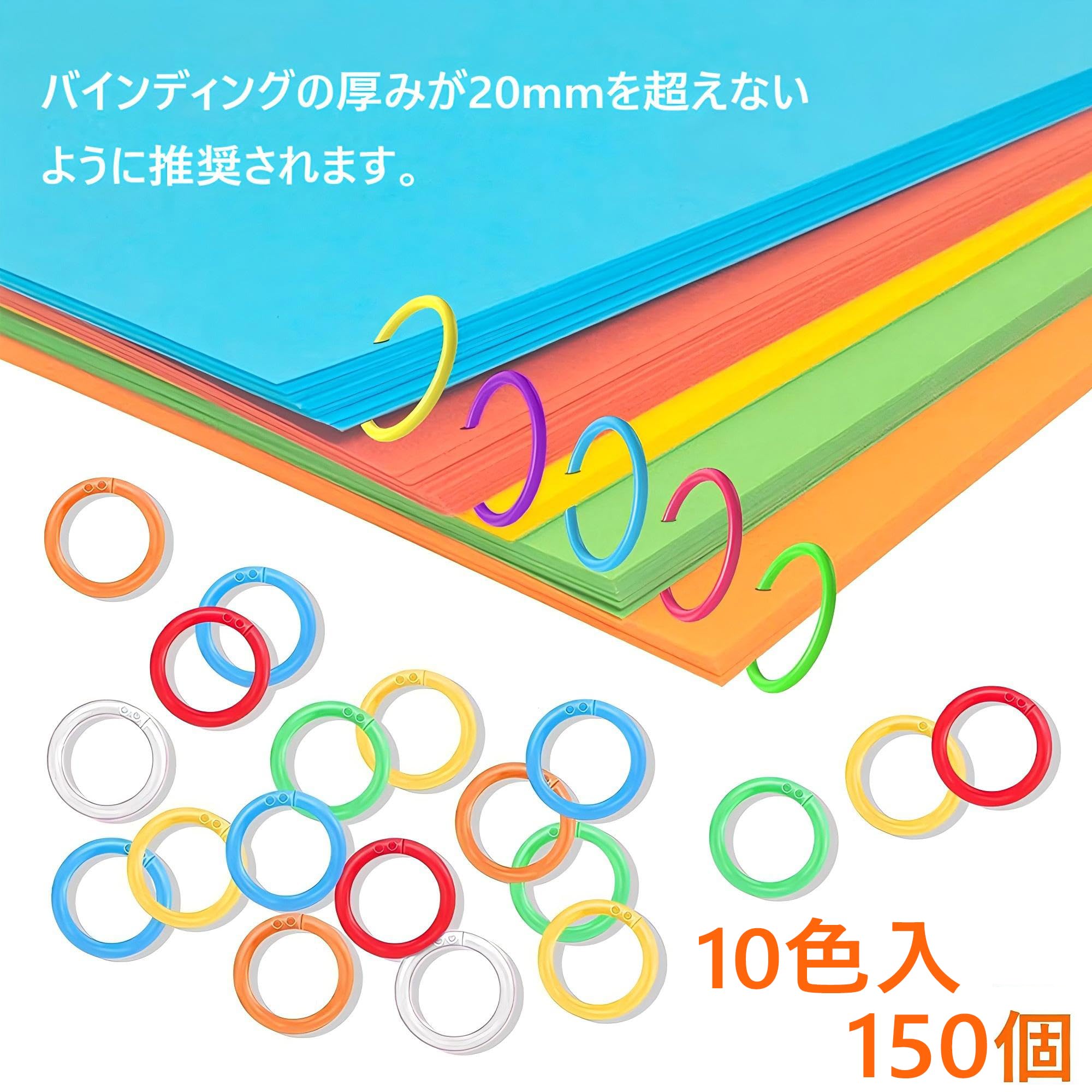Virtarlux カードリング 150個セット プラスチックリング 10色入 手芸 穴径20mm バインダーリング キーリング キーホルダー クリップリング 単語帳 リングカード/手帳/カレンダーアルバム整理に 学校・家庭向け (150本入 10色)