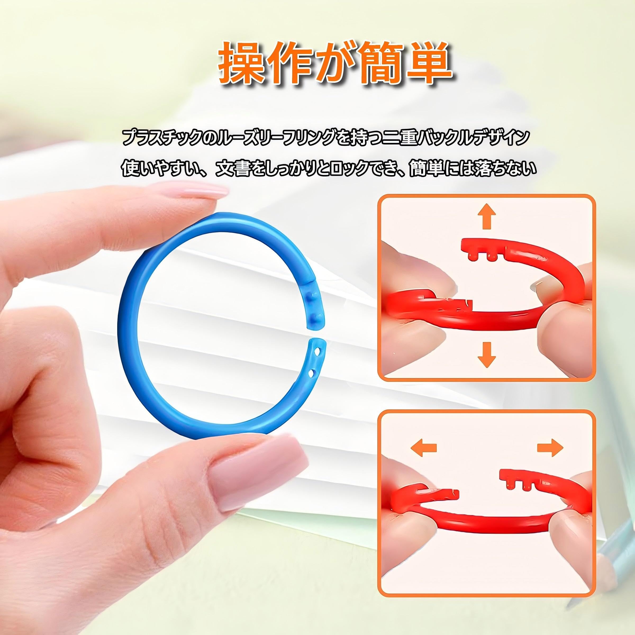 Virtarlux ルーズリーフ リング 32個セット 8色入 バインダーリング 取り外し可能 ファイル A4 A5 B5ルーズリング 製本用とじ具 5穴 外穴径15mm リングリーフ 単語帳 手帳 リングファイル本製作(32本入 8色)