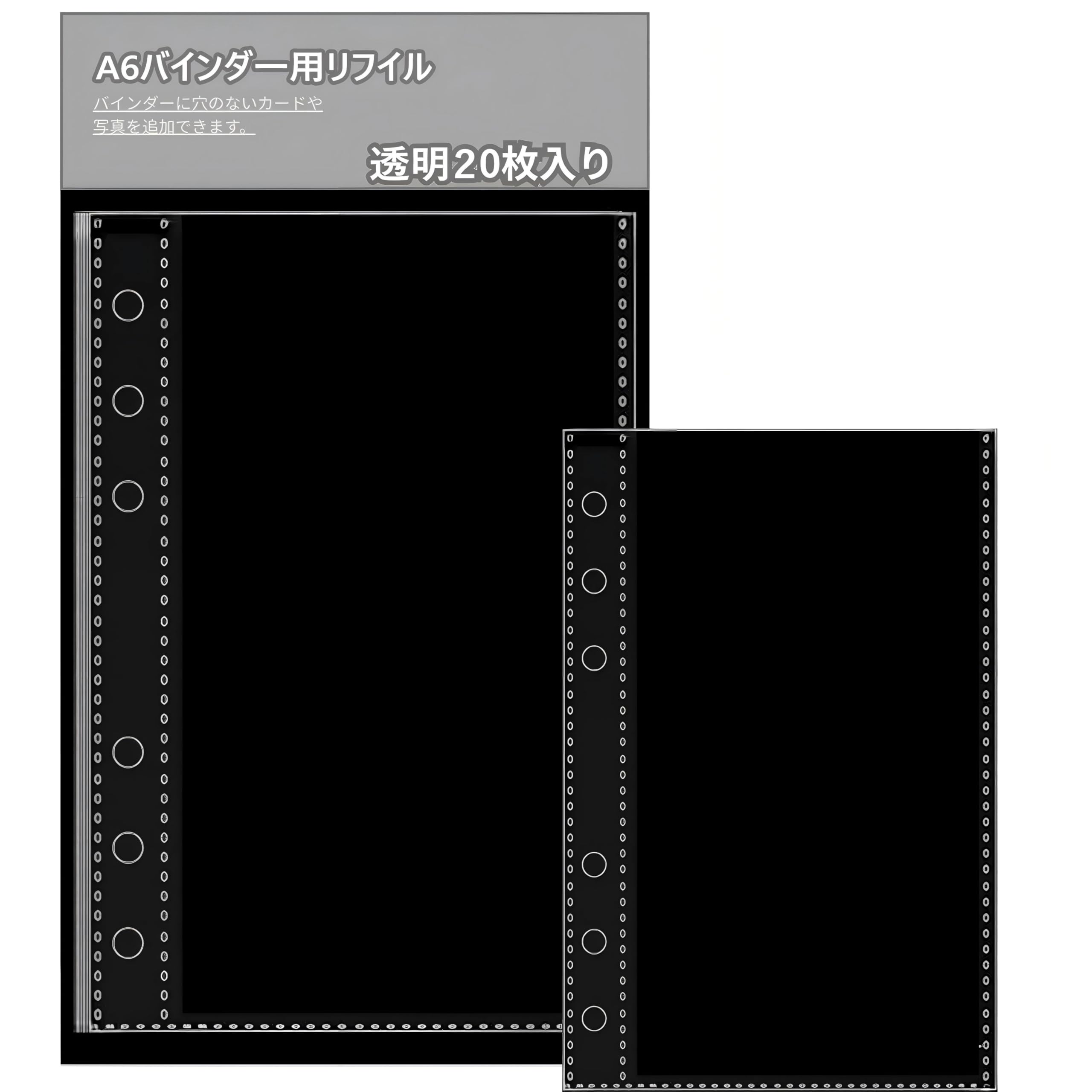 Virtarlux A6 シール帳 台紙 リフィル用 透明 台紙付き 剥離紙付き シール手帳 はがせる 両面ポケット付き (A6リフィル 20枚入)