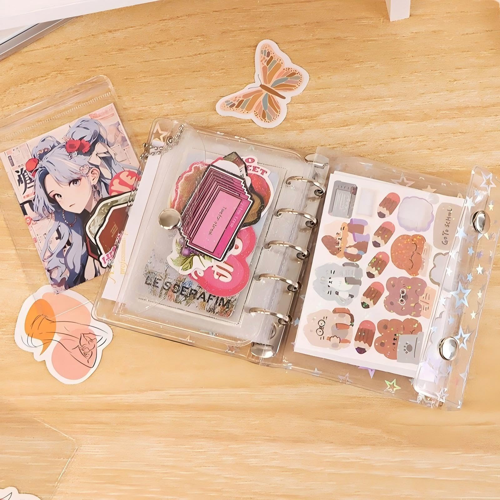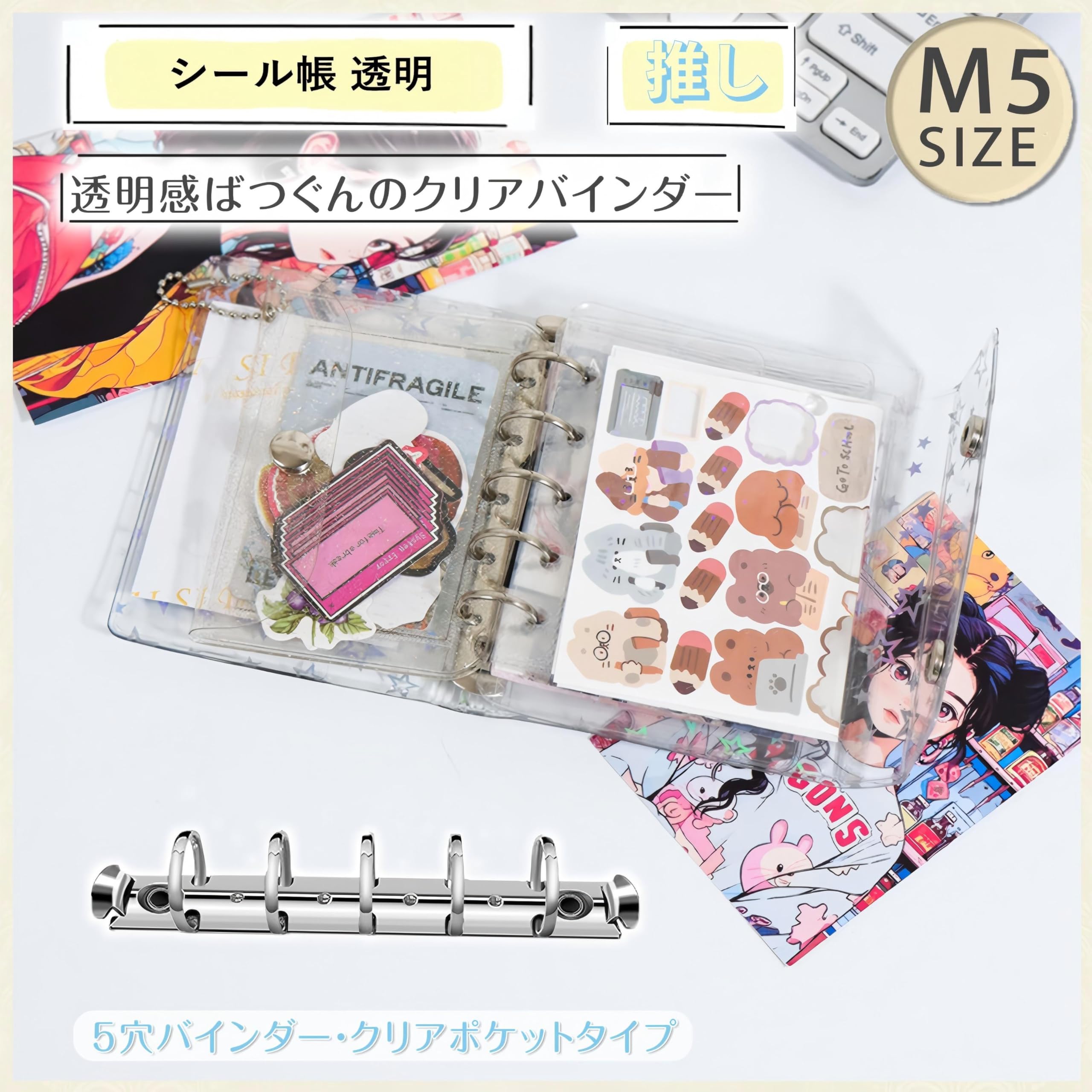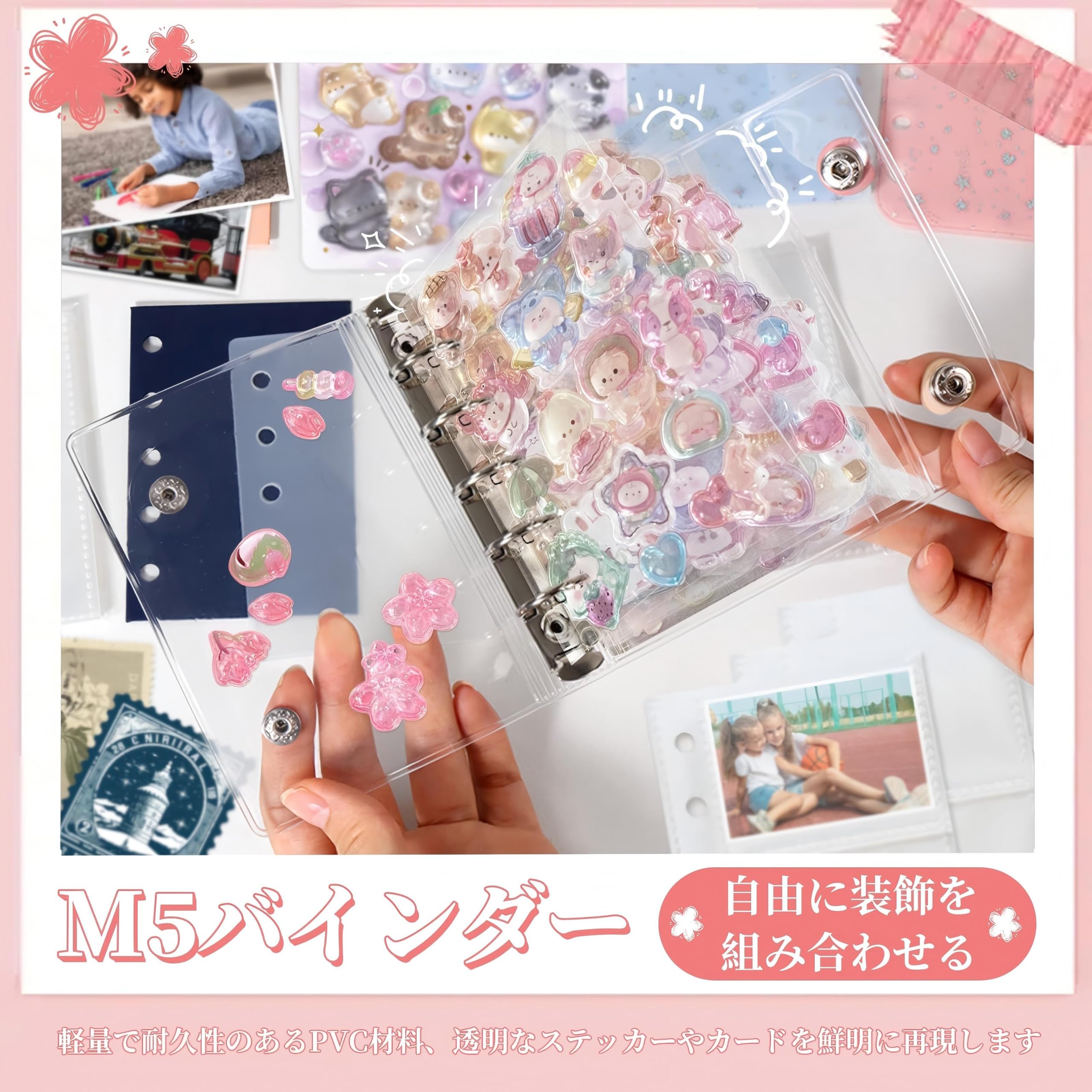 Virtarlux シール帳 透明 女の子 はがせる m5 シールバインダー シール手帳 クリアバインダー 5穴 マイクロ5 シール収納 詰め替え可能20枚内页付き 推し活グッズ (ホログラム星柄入り)