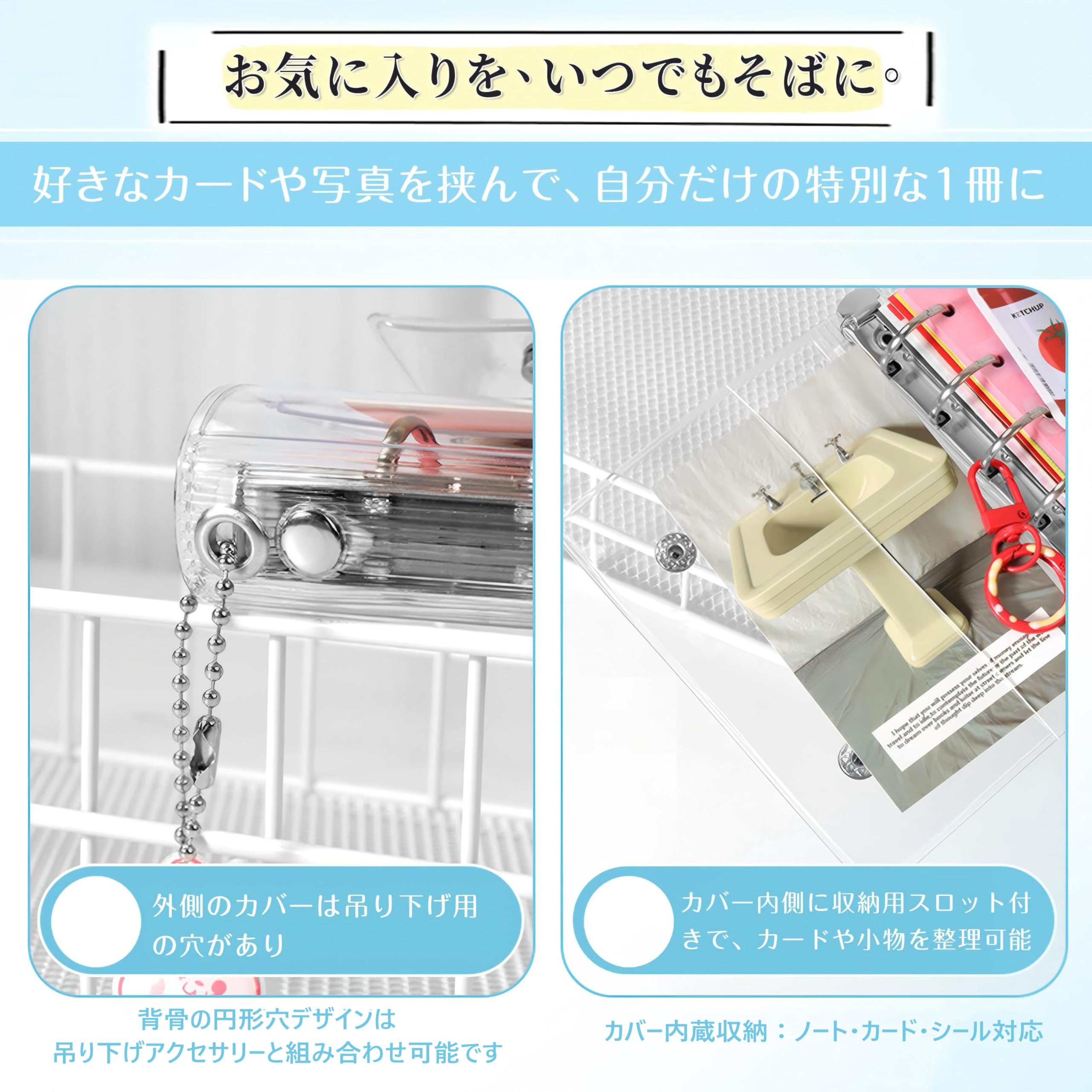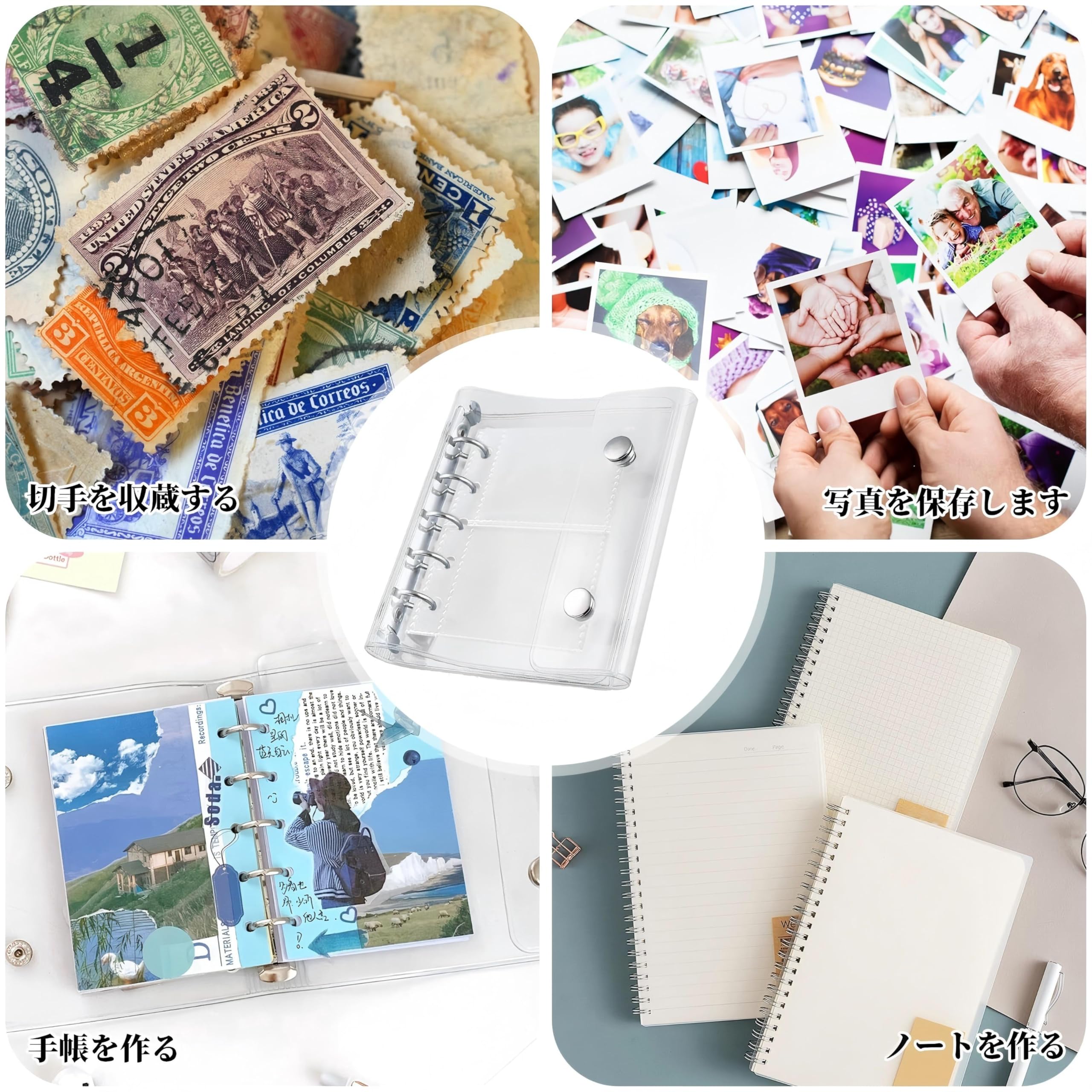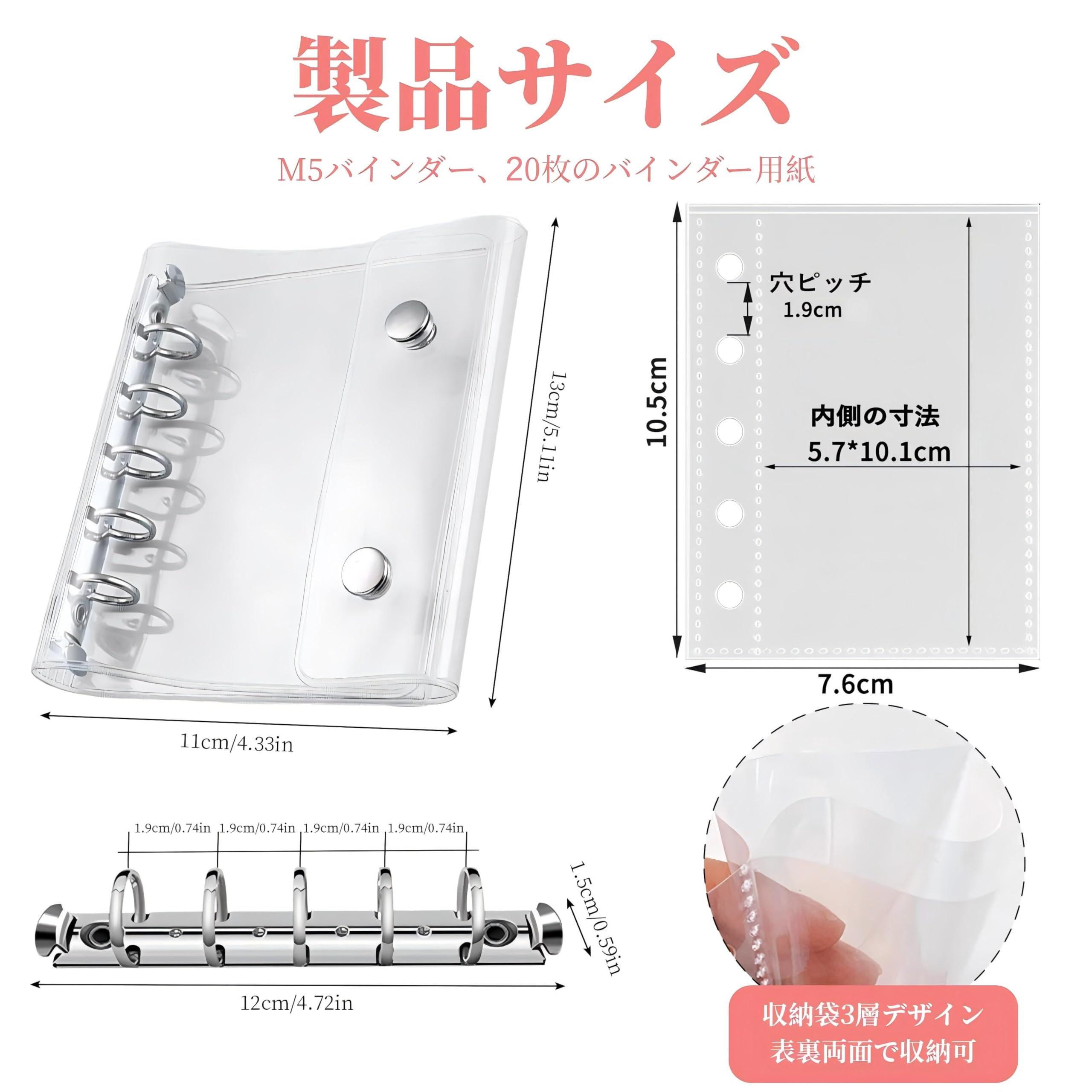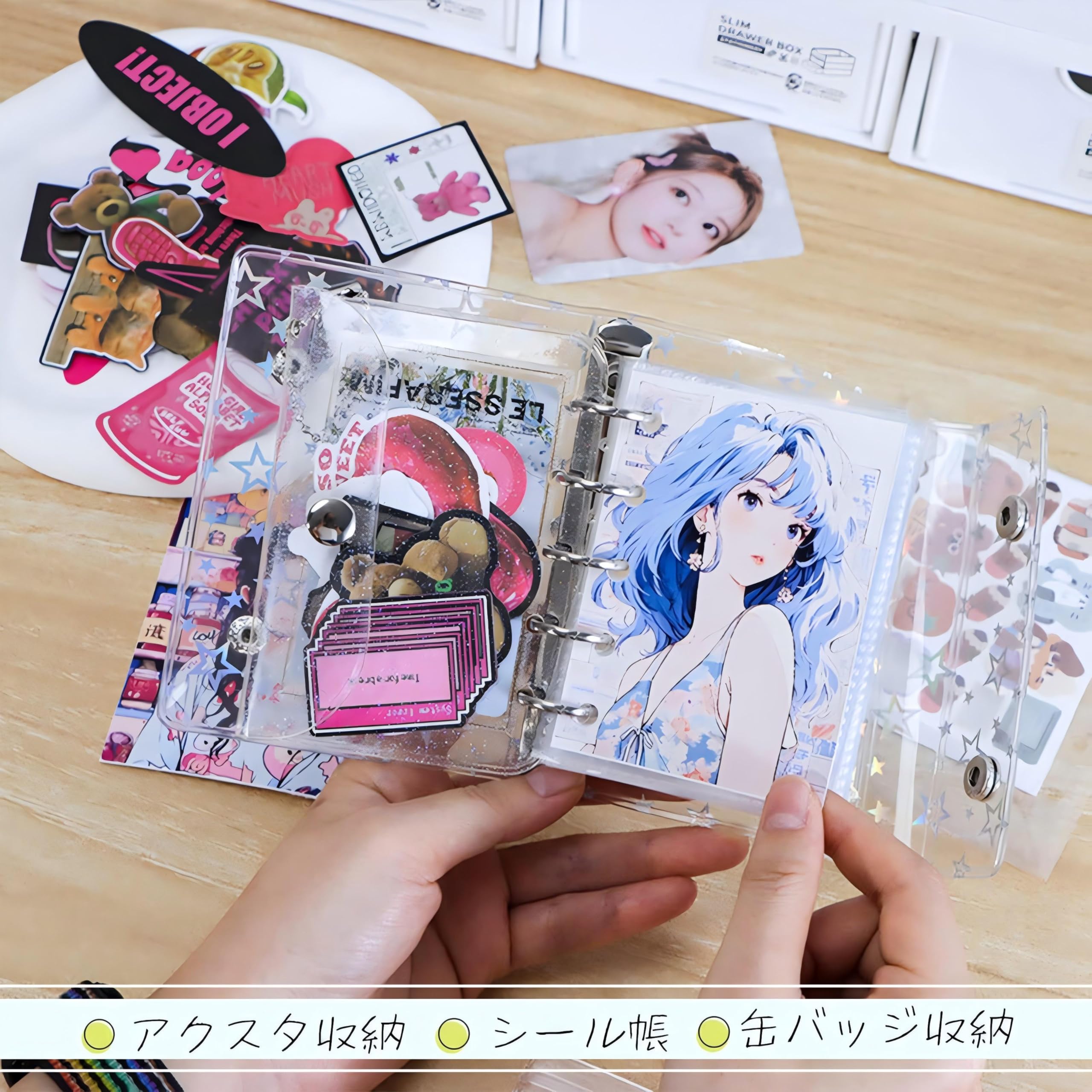 Virtarlux シール帳 透明 女の子 はがせる m5 シールバインダー シール手帳 クリアバインダー 5穴 マイクロ5 シール収納 詰め替え可能20枚内页付き 推し活グッズ (ホログラム星柄入り)