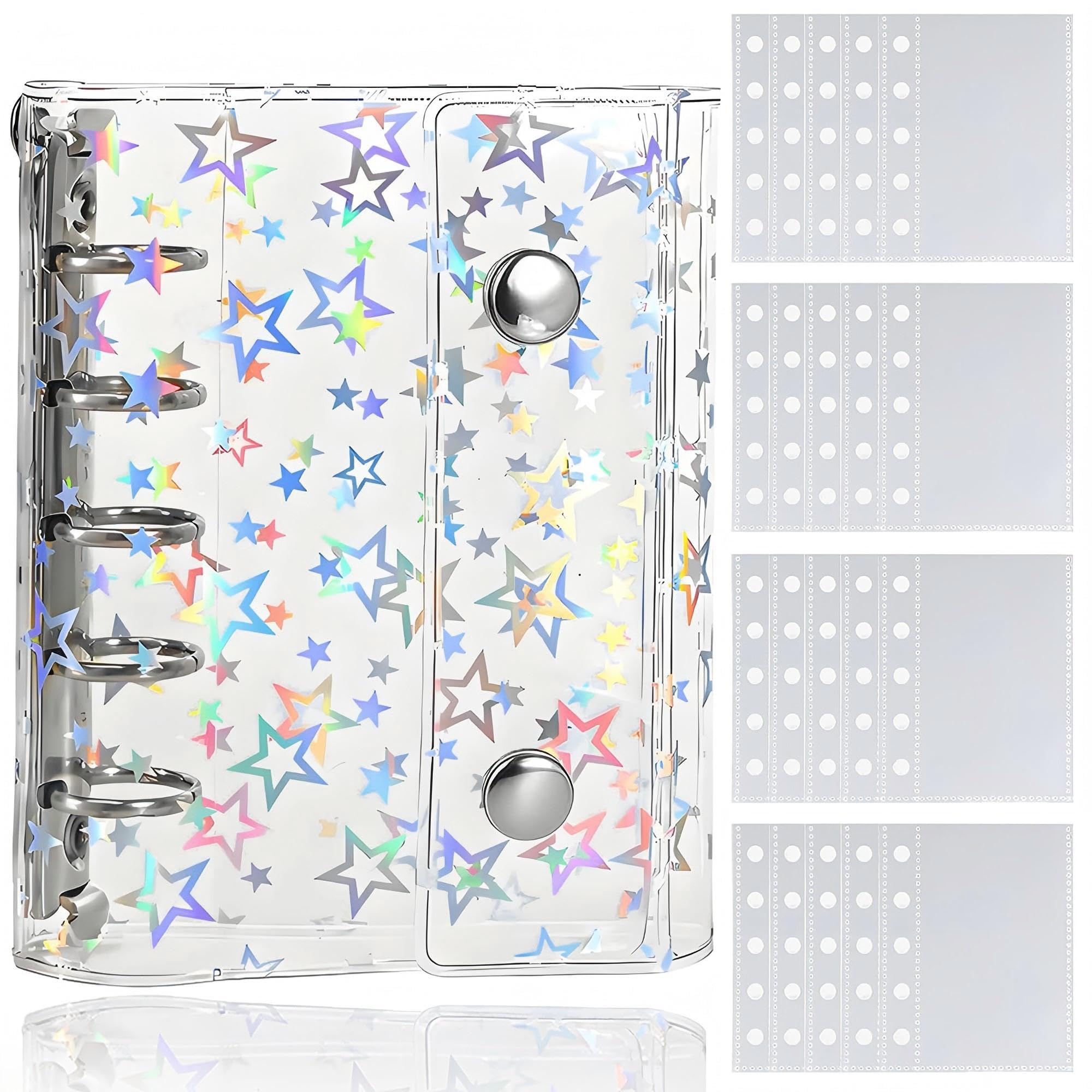 Virtarlux シール帳 透明 女の子 はがせる M5 シールバインダー シール手帳 クリアバインダー 5穴 マイクロ5 シール収納 詰め替え可能 20枚リフィル入り 推し活グッズ (ホログラム星柄入り)