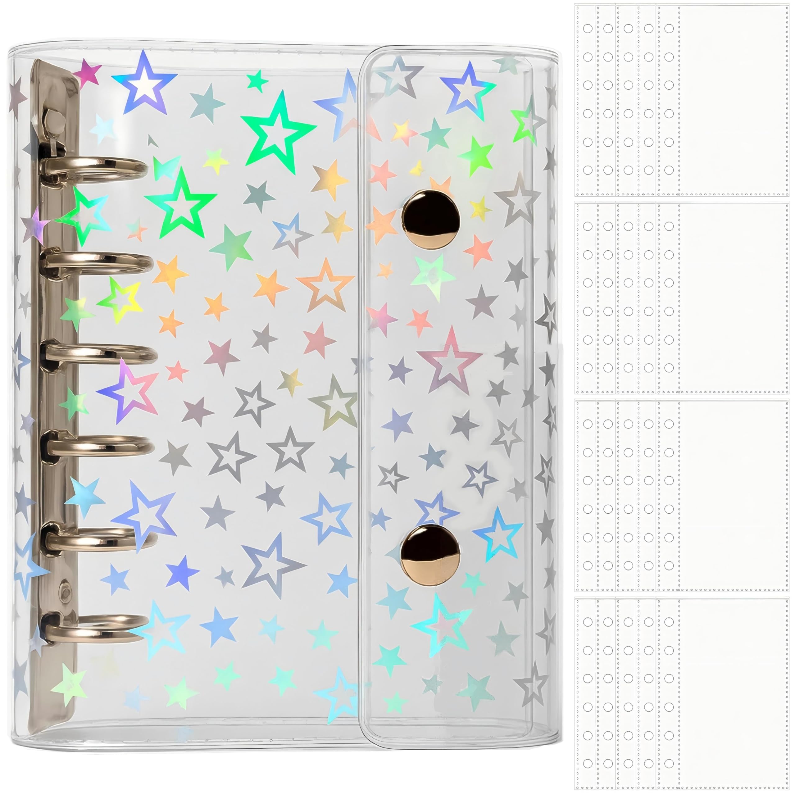 Virtarlux シール帳 透明 女の子 はがせる A7 シールバインダー シール手帳 クリアバインダー 6穴 マイクロ6 シール収納 詰め替え可能 20枚リフィル入り 推し活グッズ (A7ホログラム星柄入り)