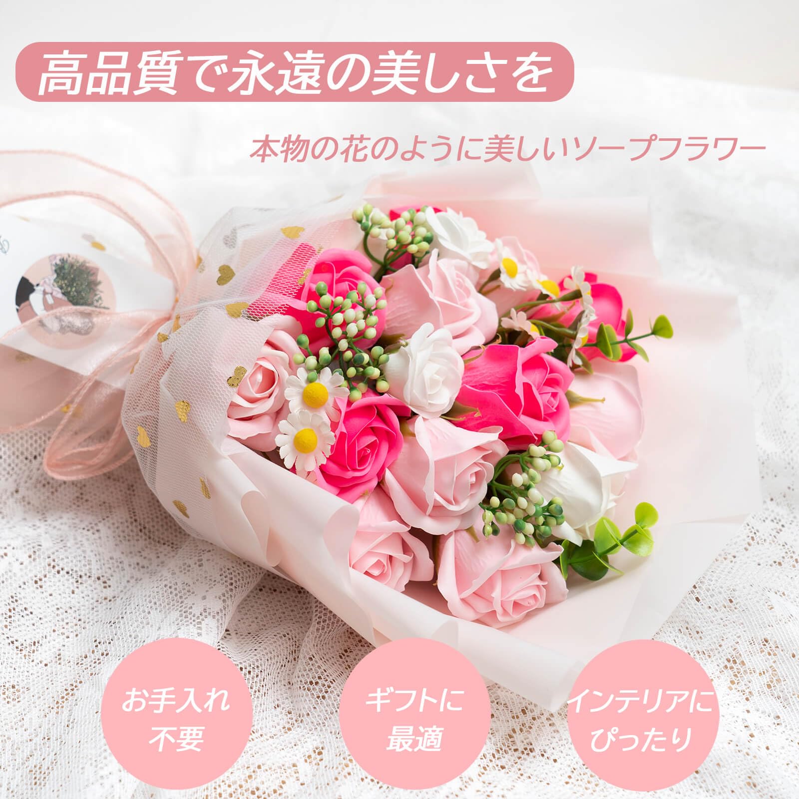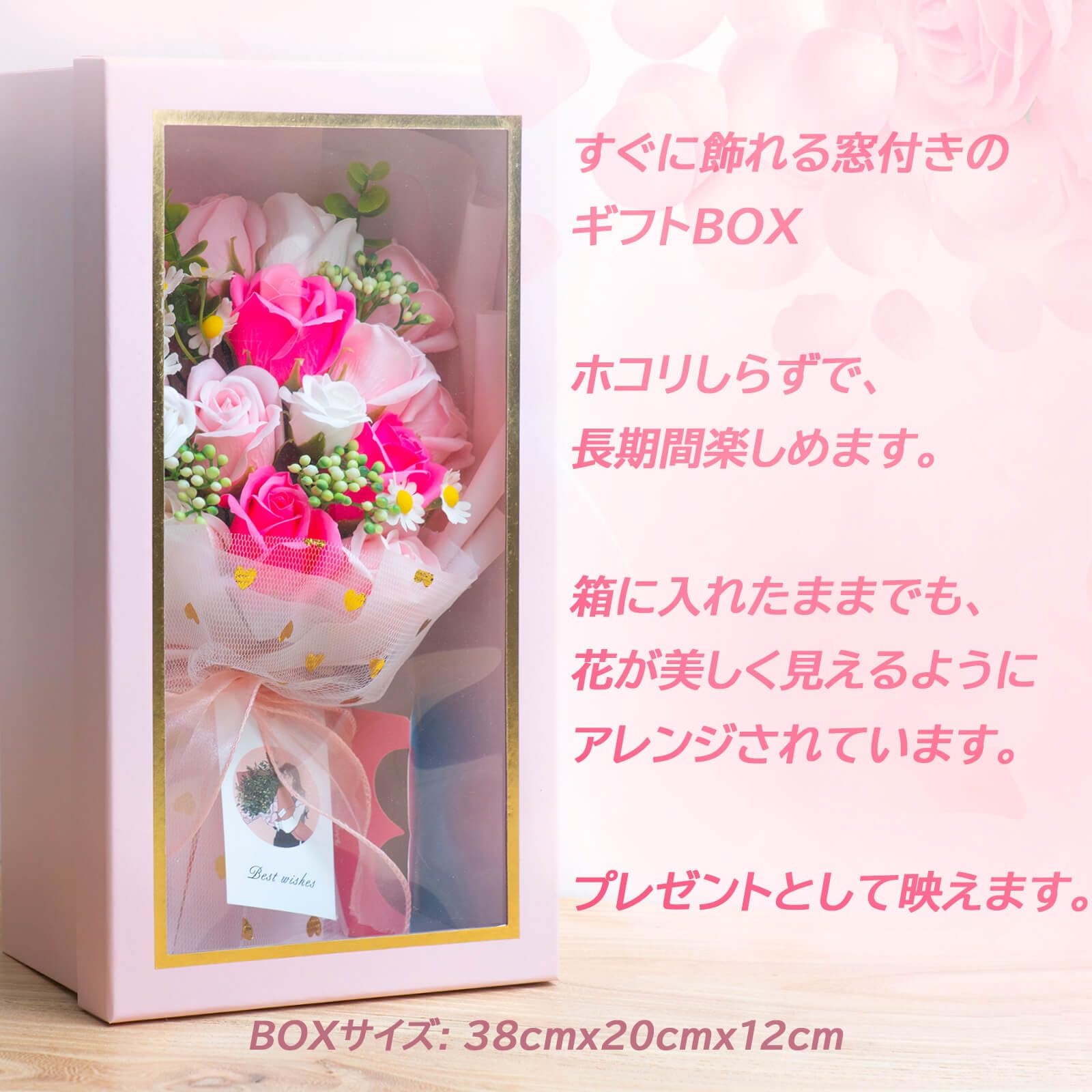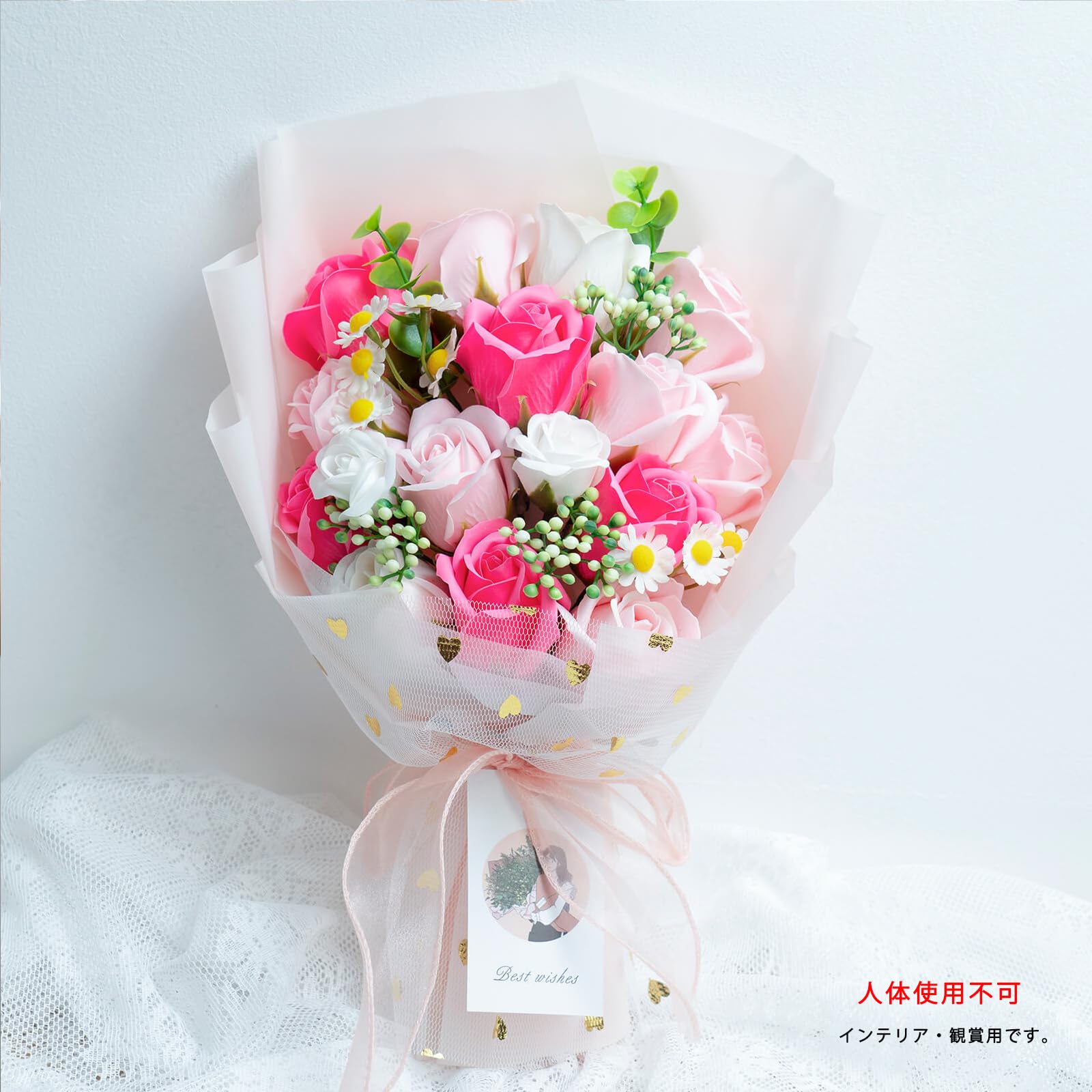 ソープフラワー ギフト 花束 造花プレゼント 石鹸の花 シャボンフラワー インテリア 雑貨 卒業式 開店祝い 母の日 誕生日 結婚祝い 退職祝い 還暦祝い 発表会 ディスプレイ 花 フラワー ローズ 薔薇の花 アレンジ 枯れない そのまま飾れる ピンク