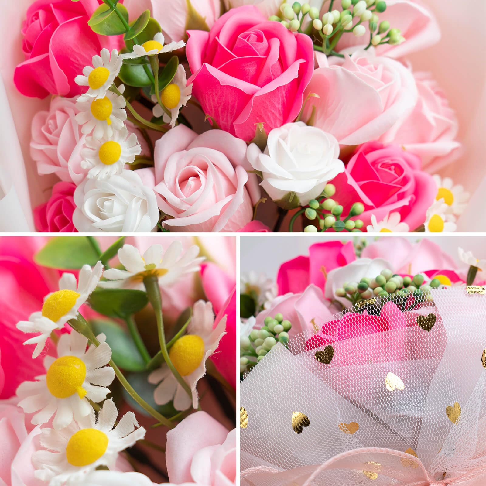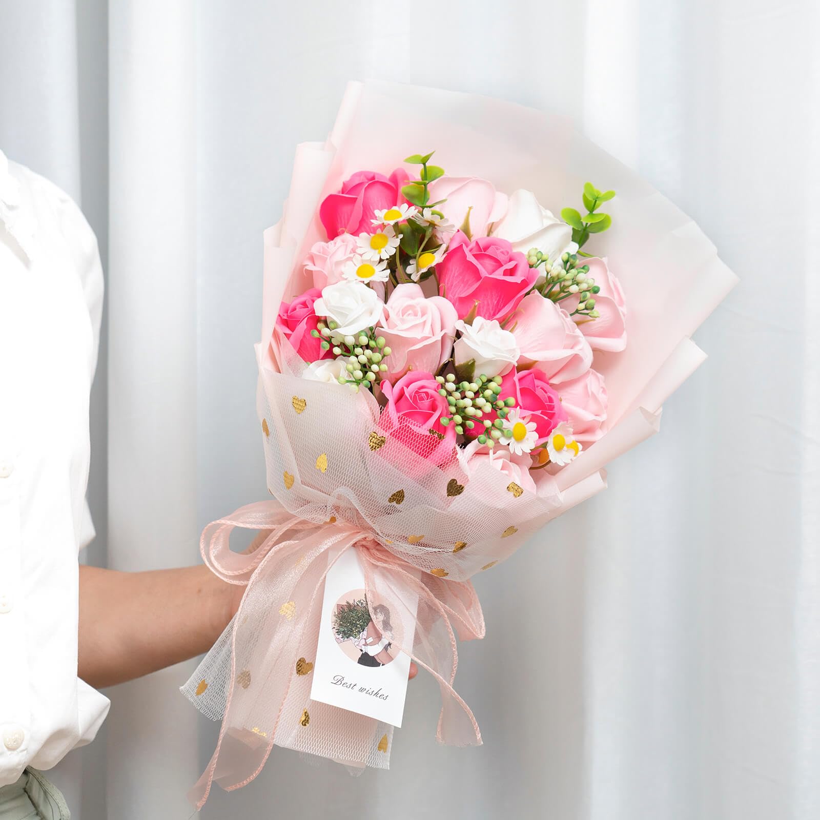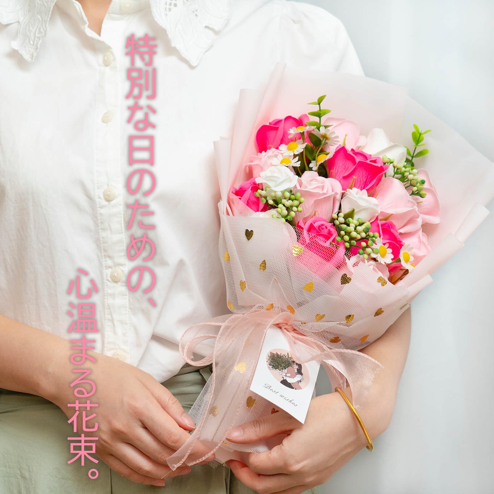 ソープフラワー ギフト 花束 造花プレゼント 石鹸の花 シャボンフラワー インテリア 雑貨 卒業式 開店祝い 母の日 誕生日 結婚祝い 退職祝い 還暦祝い 発表会 ディスプレイ 花 フラワー ローズ 薔薇の花 アレンジ 枯れない そのまま飾れる ピンク