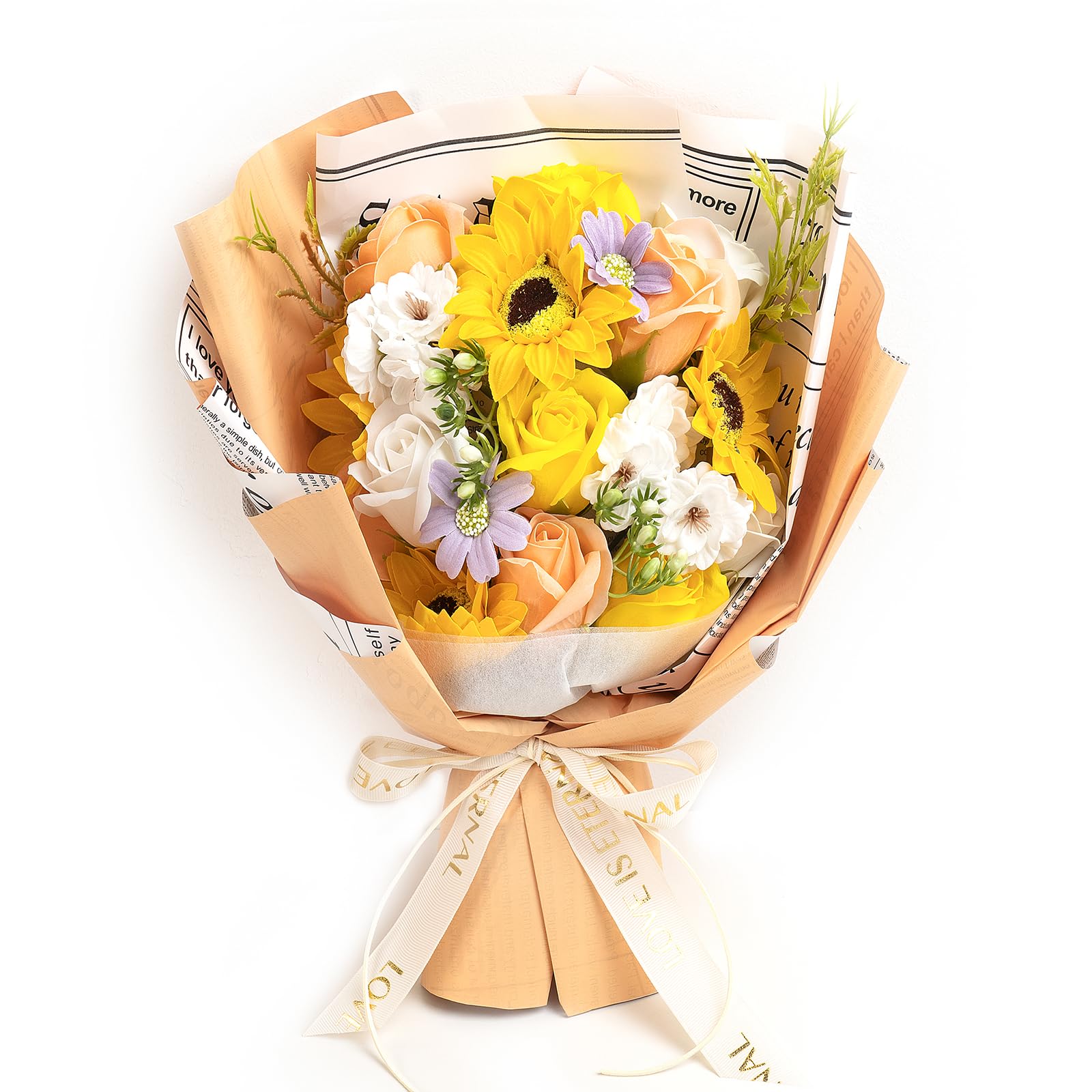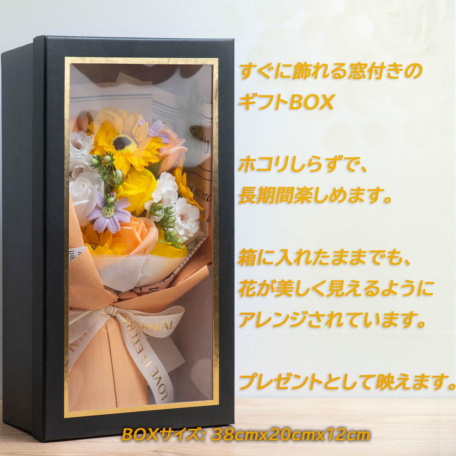 WillingYou ソープフラワー 花束 ギフト ひまわり プレゼント 石鹸の花 シャボンフラワー インテリア 雑貨 卒業式 開店祝い 母の日 誕生日 結婚祝い 退職祝い 還暦祝い 発表会 ディスプレイ 花 フラワー イエロー ローズ 薔薇の花 桜 アレンジ 枯れない そのまま飾れる