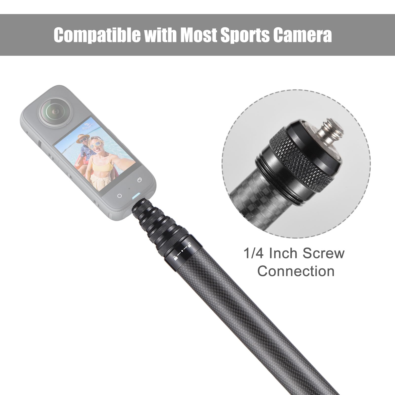 この5メートルの超ロング自撮り棒は、Insta360カメラをはじめ、GoPro、OSMO等の様々なアクションカメラに対応した多目的アクセサリーです。カーボンファイバー素材を採用し、軽量かつ高い剛性を実現。伸縮式設計により、撮影シーンに応じて長さを自由に調整可能です。Insta360 X5、X4、X3、ONE X2、ONE、EVO、ONE Rシリーズはもちろん、OSMO 360、Action 5 Pro、Action 4、OSMO POCKET 3/2など幅広い機種に対応しています。特殊な設計により、360度カメラでの撮影時に自撮り棒が映り込みにくく、まるで空中から撮影したような迫力ある映像を実現できます。アウトドアやスポーツ、旅行など、様々なシーンで活躍する信頼性の高いカメラアクセサリーです。