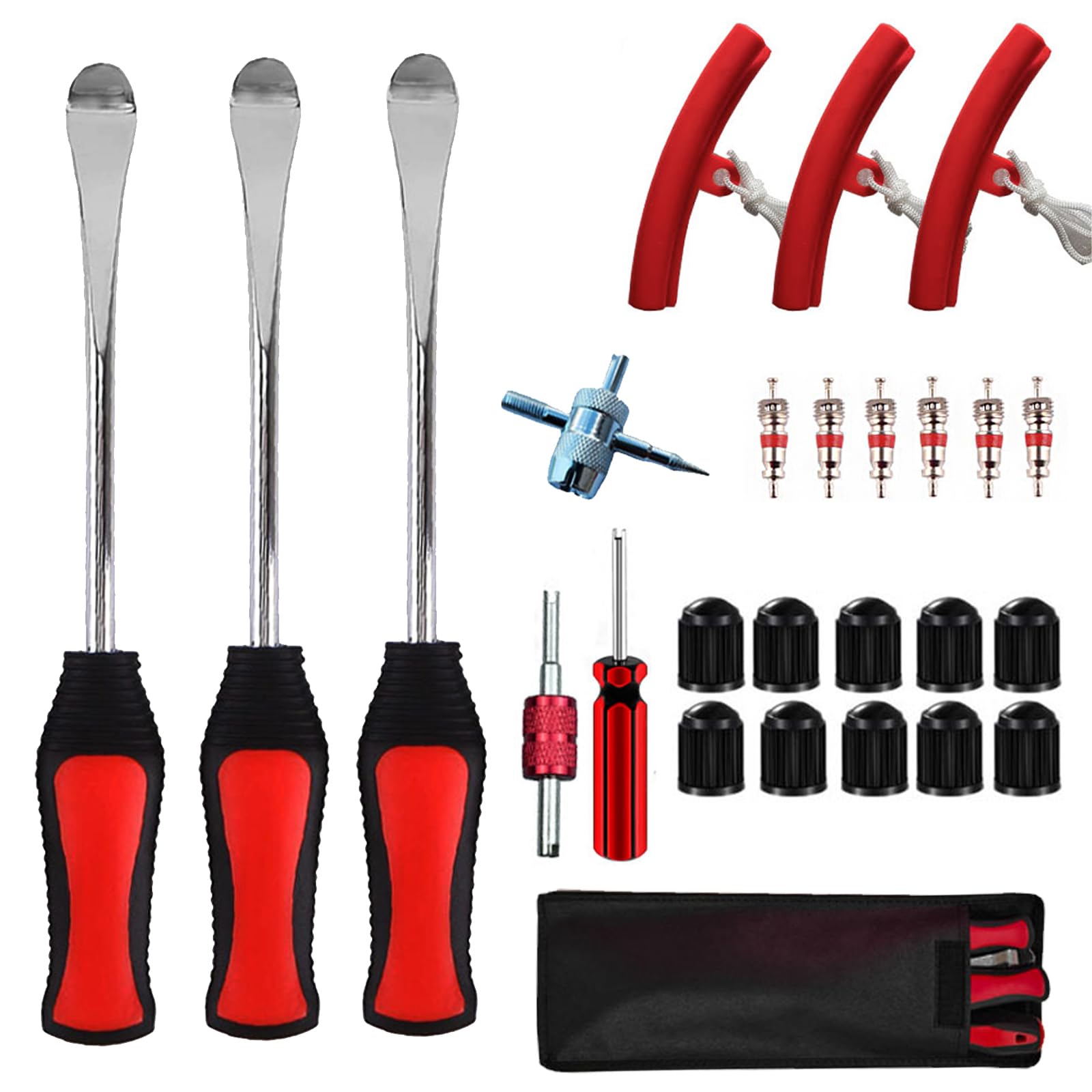 タイヤレバー 23点セット バイク 自転車 タイヤ ホイール 交換 脱着 専用工具 ステンレス製 収納袋付き 車修理ツールキット