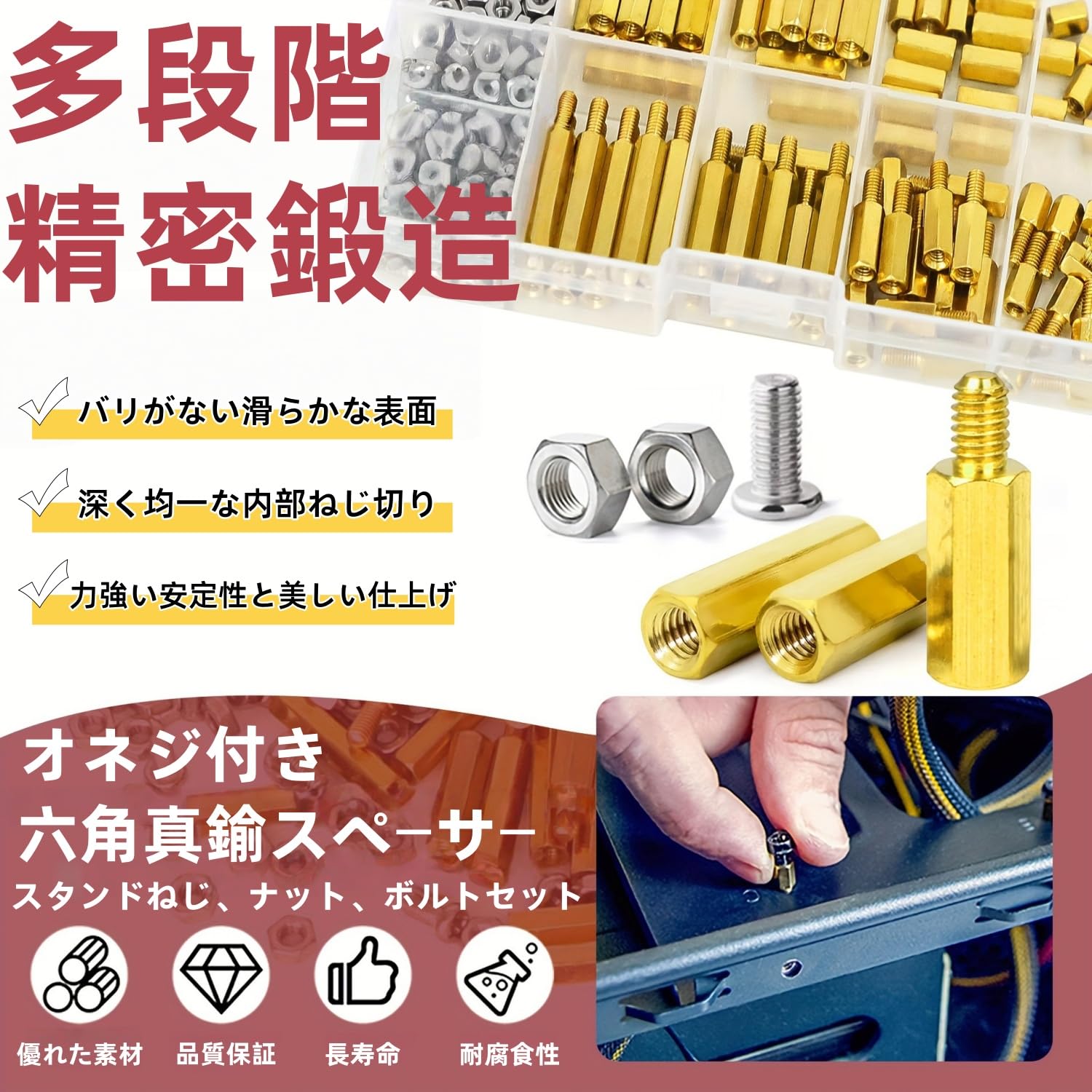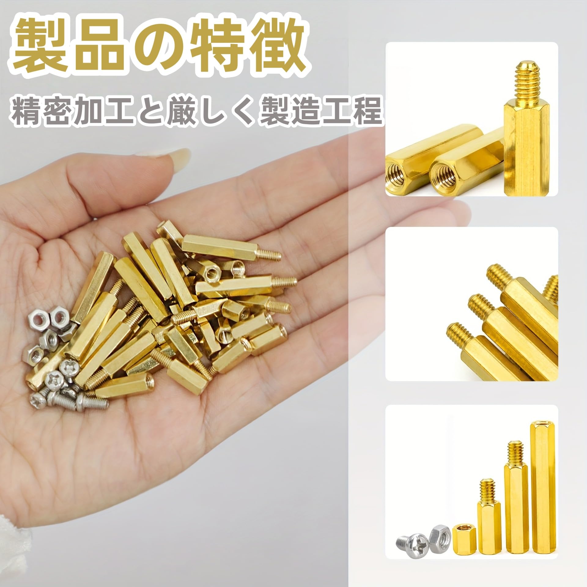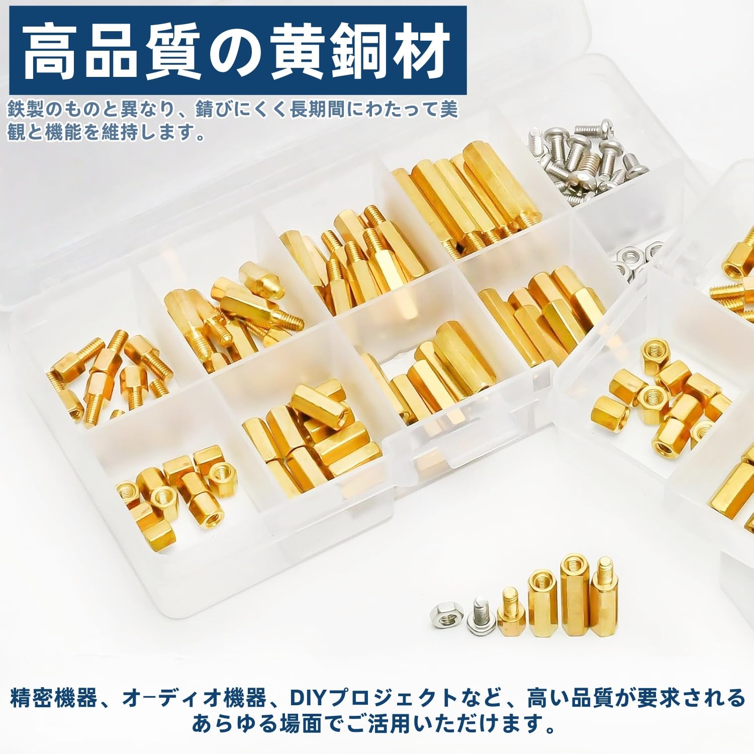 黄銅 真鍮 六角スペーサー M2 六角ねじ 320個セット ケース付き 六角ねじ 六角柱 真鍮 ボルト ナット 機械 修理 基板の固定に向け