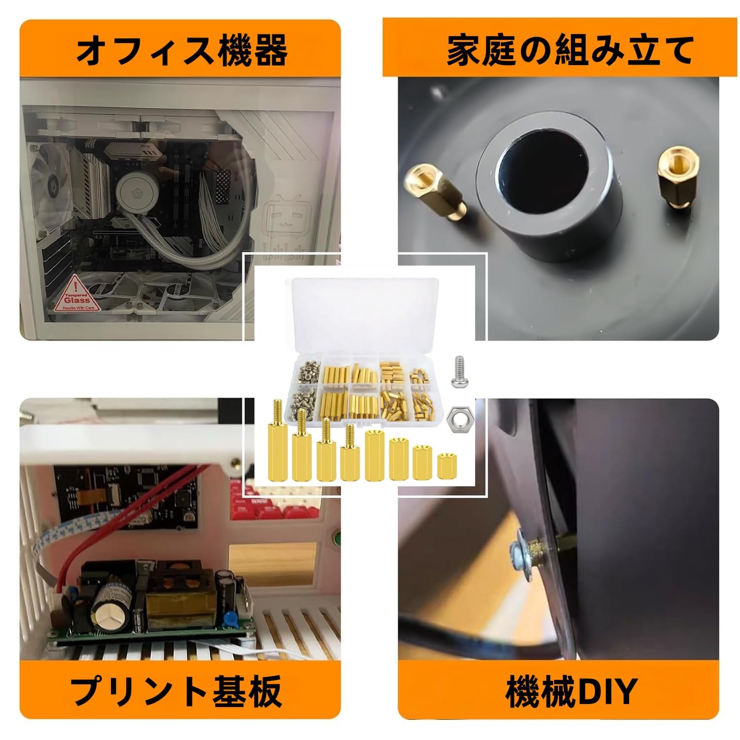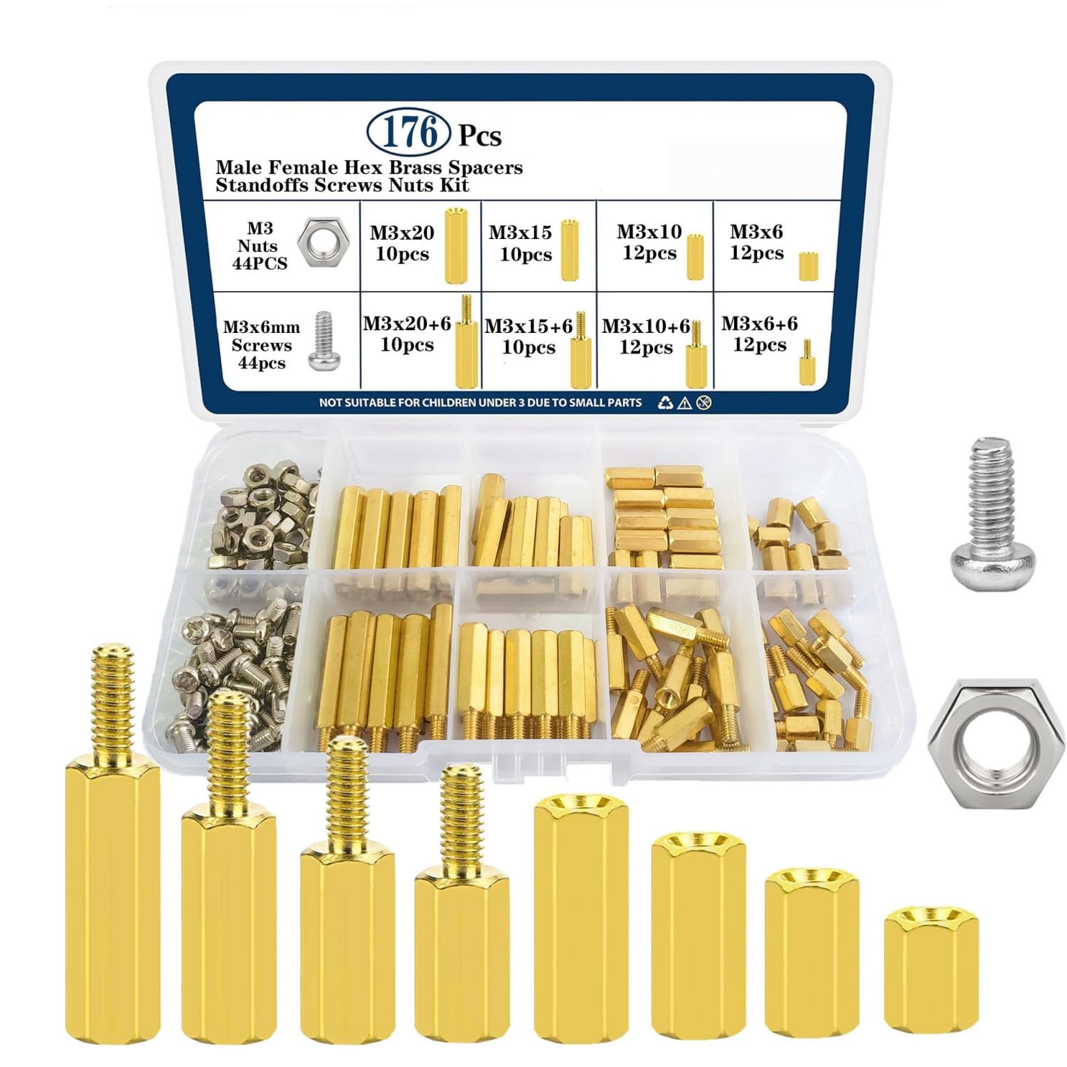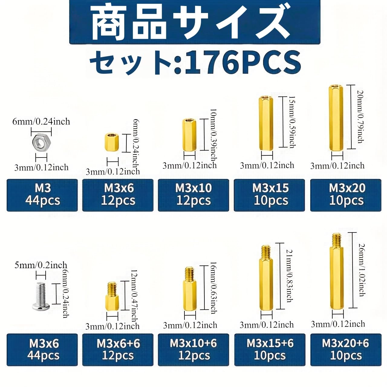 六角スペーサー 六角柱 M3ねじ 176個セット ナット ボルト 六角真鍮スペーサー スタンドオフ ナット ネジ 基板固定/機械/修理/精密機械に 収納ケース付き