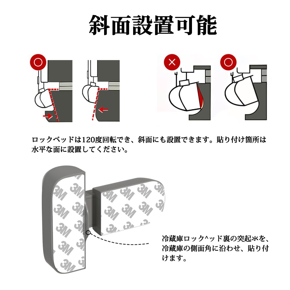 冷蔵庫 ロック 「常時オートロック・常時ノーマルオープン切り替え可能」 「段差・斜面設置可能 」 チャイルドロック 粘着力が強い 簡単取り付け 認知症介護用品 地震対策 (グレー 2個入)