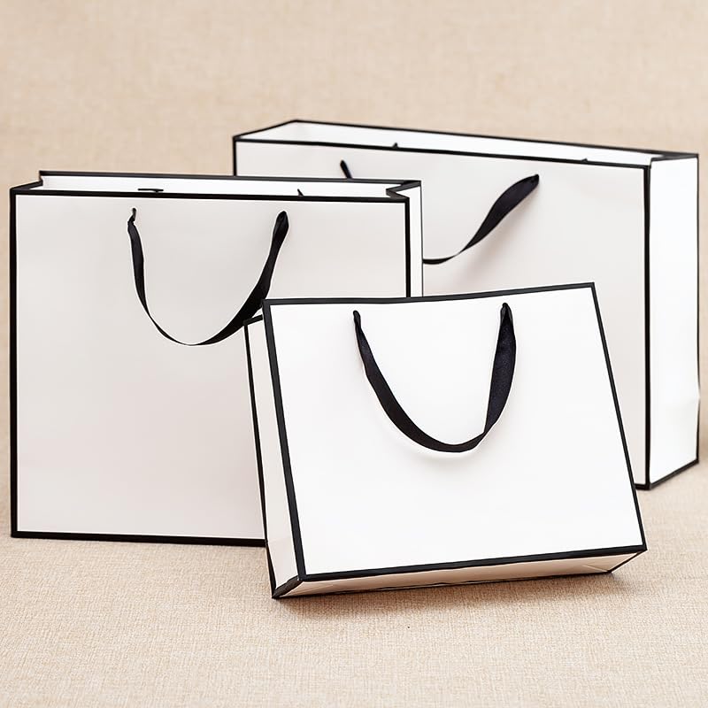紙袋 手提げ プレゼント 袋 ギフトバッグ 大 引き出物袋 縦型 おしゃれ 厚手タイプ 丈夫で耐久性があり 再利用可能 クラフト紙袋 結婚式 包装 パーティー 誕生日 ホワイトデー 贈り物 お土産 クリスマス用ギフトバッグ(25*13*32cm・3枚セット・ホワイト&ブラック)