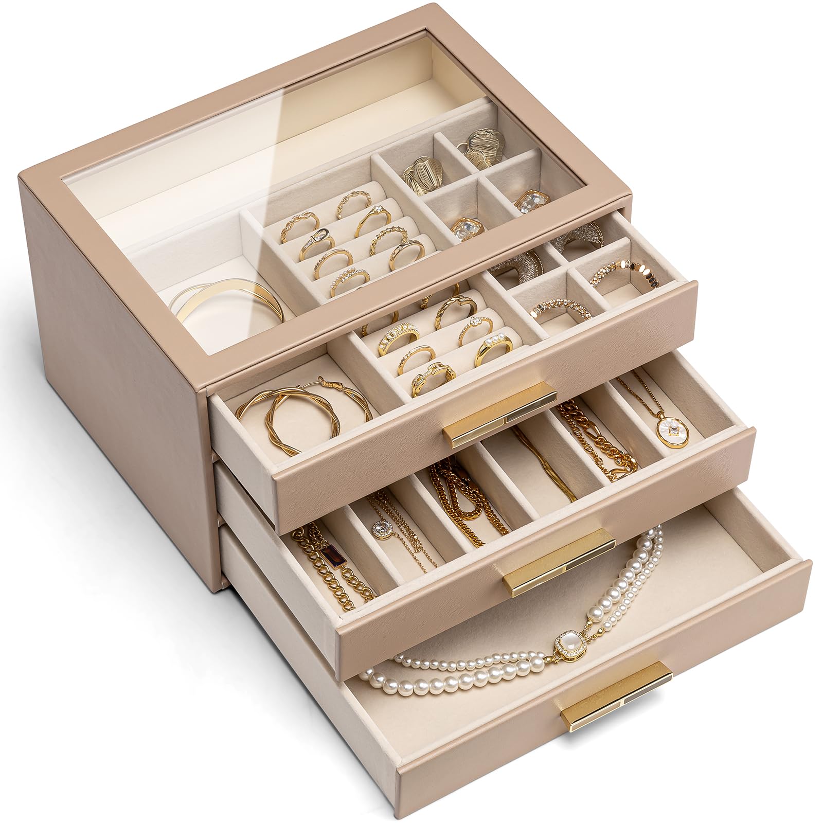 Vlando ジュエリーボックス 大容量 3段 アクセサリーケース ジュエリー 収納 ピアス リング ネックレス イヤリング 小物入れ 引き出し女性 誕生日 記念日(茶色)