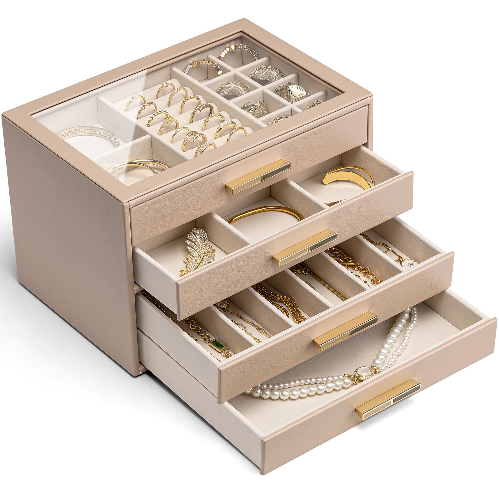 Vlando ガラス蓋 6段引き出し ジュエリーボックス 女性用ジュエリーボックス ネックレス 指輪 イヤリング ブレスレット アクセサリー収納用 オーガナイザー