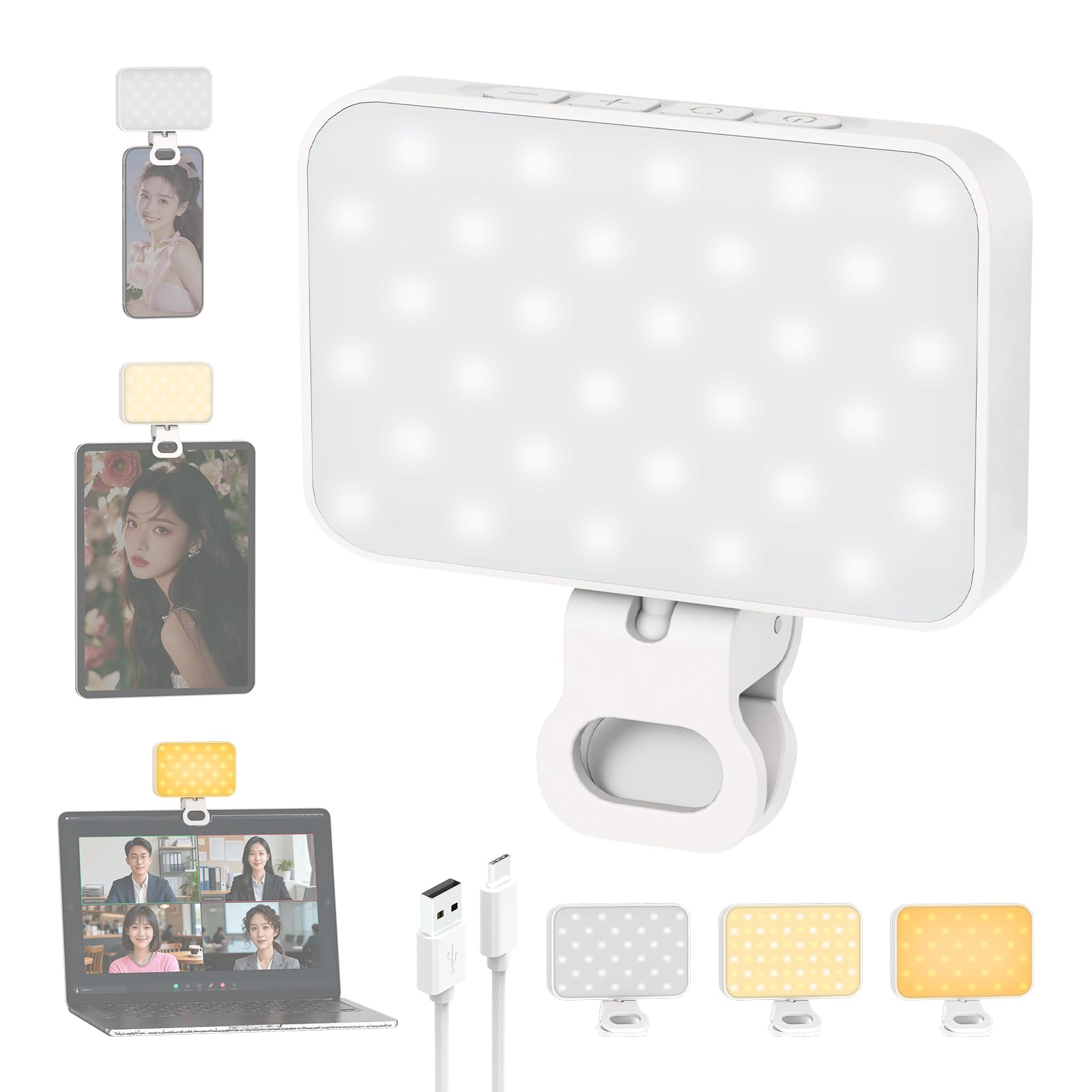 K&F CONCEPT 撮影用ライト 照明 持ち運び ライト 自撮りライト iphone対応 クリップ式 スマホライト 使用時間10H以上 USB充電式 女優ライト 配信用ライト youtube撮影用ライト コンパクト ビデオライト Type-C 高輝度 高演色 2000mAh 3色モード スマホ/パソコン/ノートpc用 夜間撮影/オンライン会議/zoom/在宅勤務/リモートワーク用
