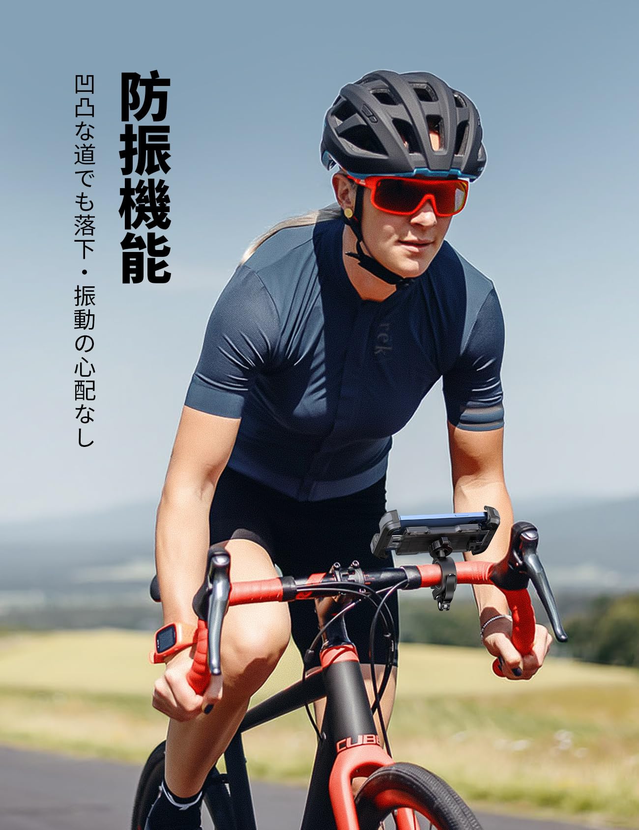 スマホホルダー 自転車 スマホホルダー 携帯スタンド バイク すまほほるだー スマートフォンホルダー 角度調整360度回転 ロードバイク クロス スマホ固定用 防振 脱落防止 自転車 携帯ホルダ ワンタッチ固定式ロードバイク携帯電話スタンド3.5インチ-6.8インチのスマホ 多機種対応