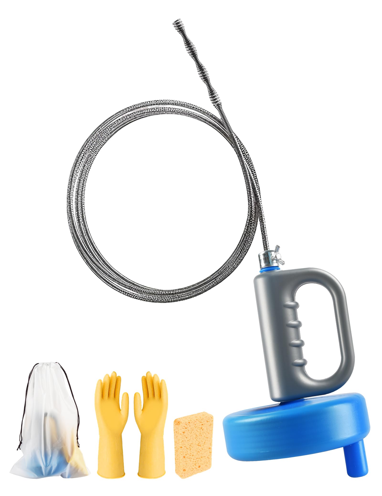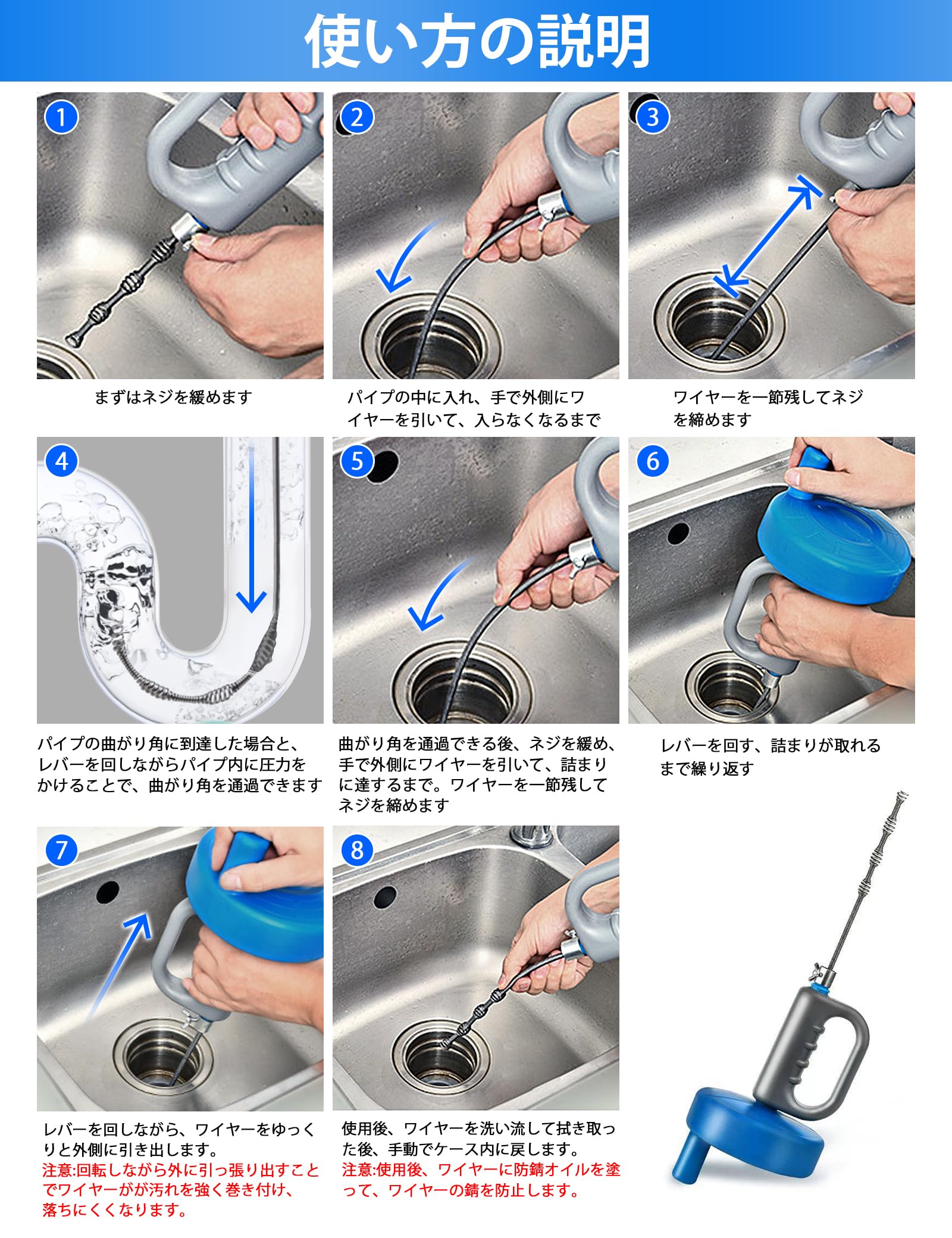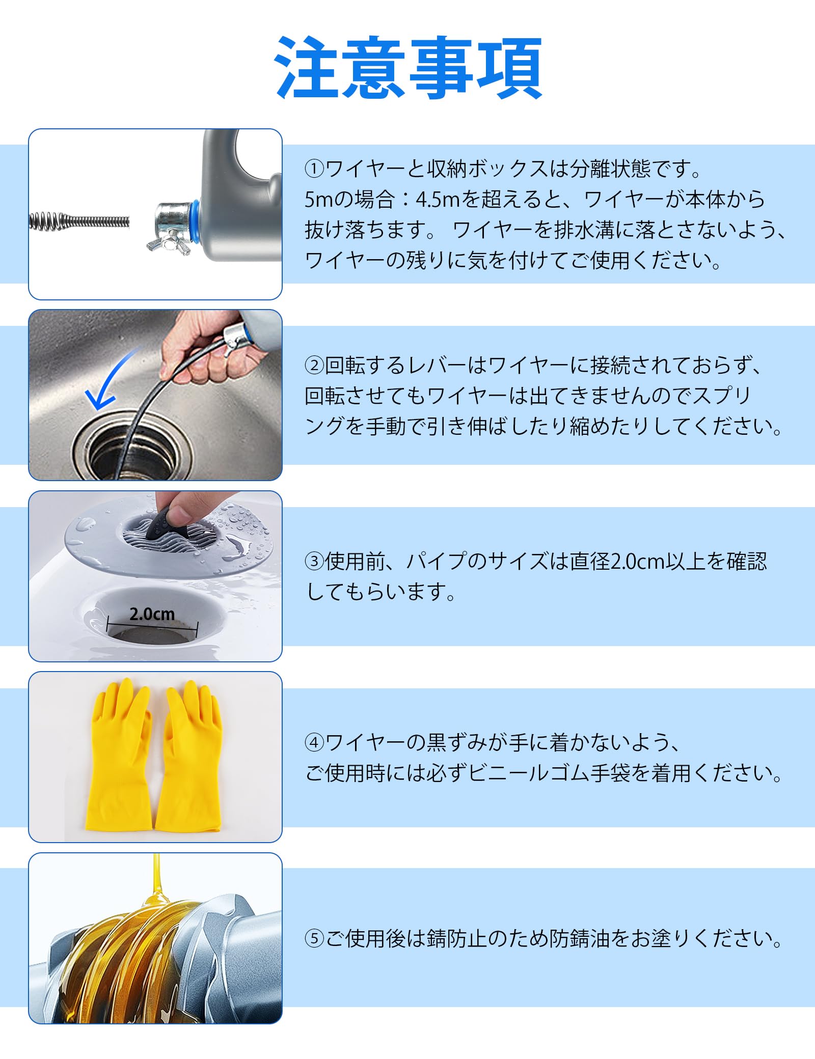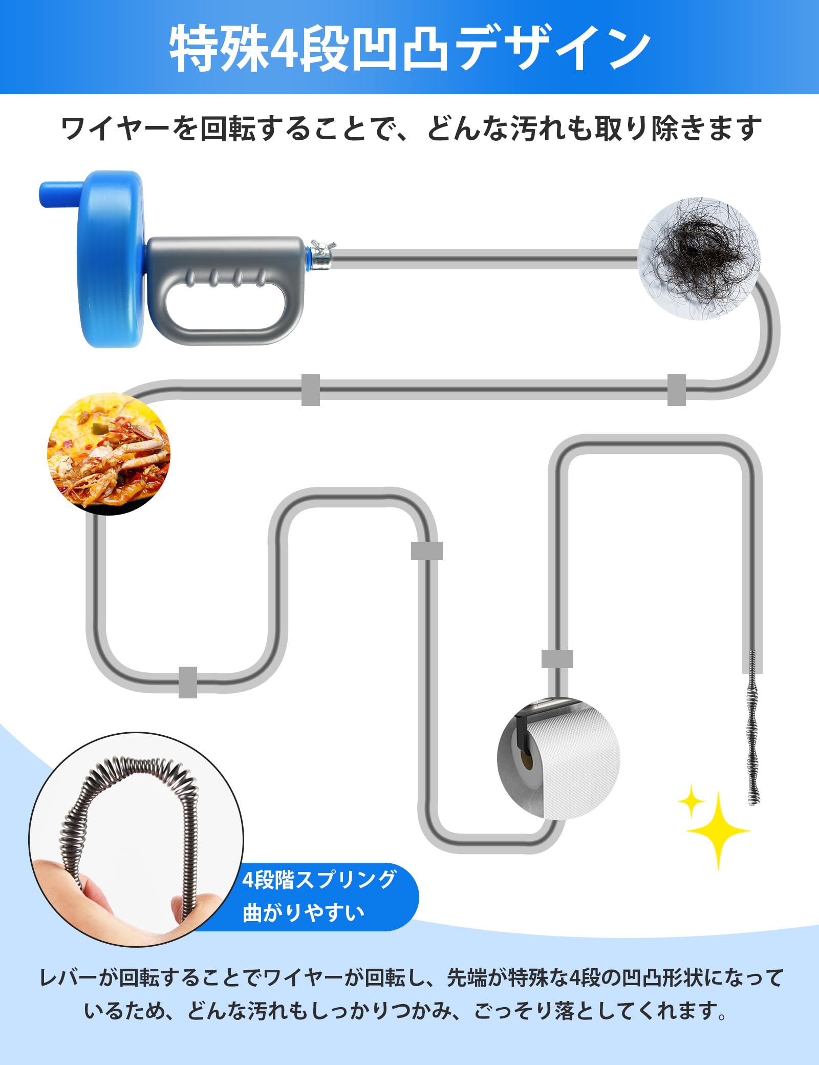 パイプクリーナー ワイヤー 排水管 掃除 ワイヤーブラシ 回転式 排水溝 つまり 解消 パイプブラシ手袋 保管袋 スポンジ付き パイプ疏通ツール 下水/排水口/キッチン/お風呂/トイレ/洗面所 修理(5m)