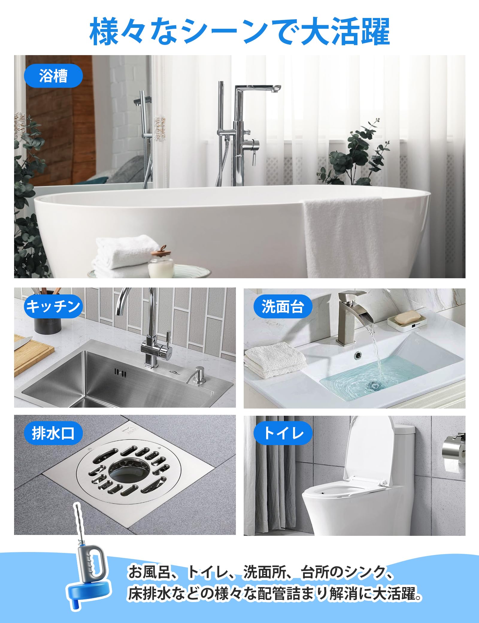 BAOSHISHAN 電動式トイレつまり解消道具 充電式パイプクリーナー 詰まり解消ツール トイレクリーナー バッテリー内蔵 加圧式真空式詰まり除去 3種類のヘッド付き 洋式トイレ/和式トイレ/洗面台/流し台強力 家庭用 水道屋さん業務用