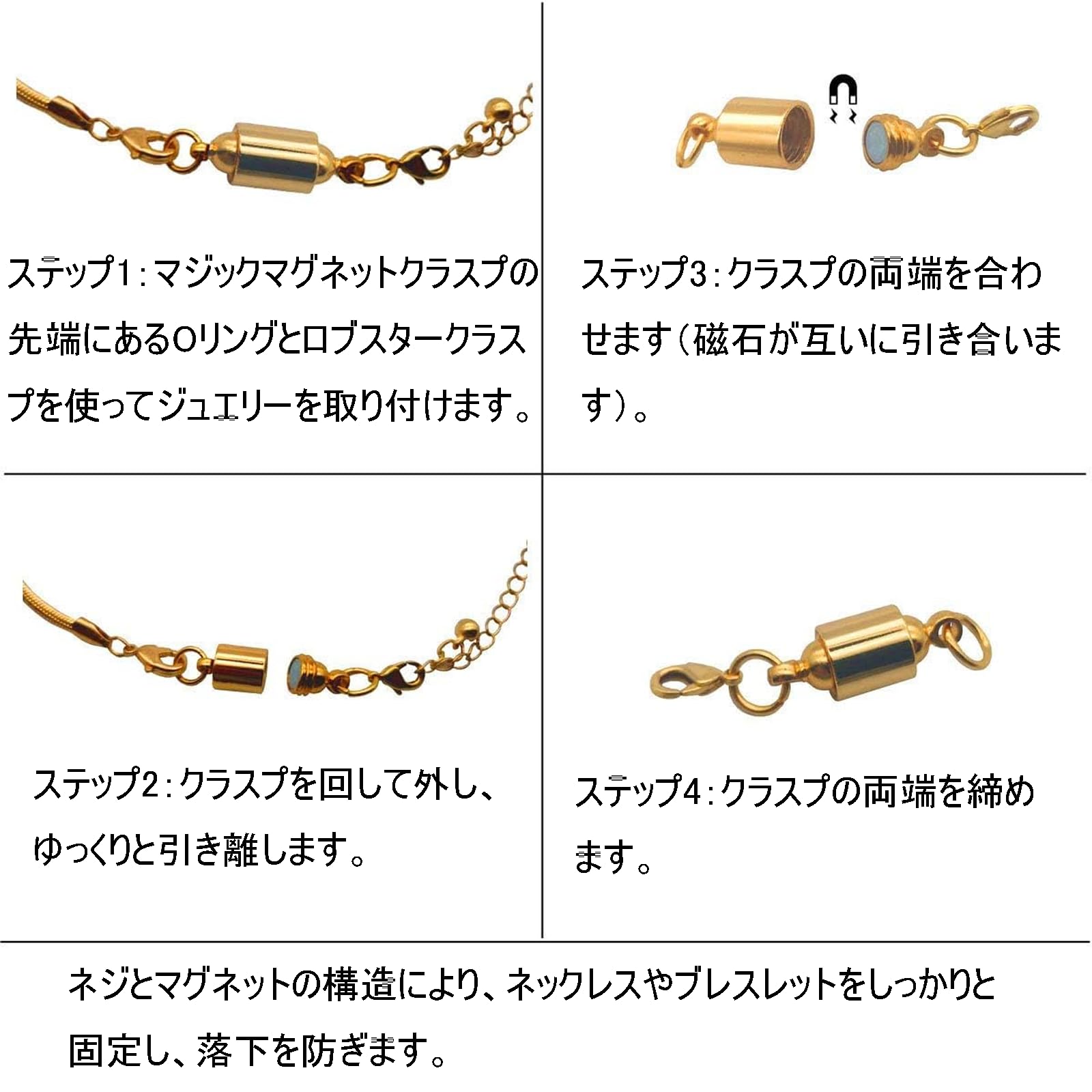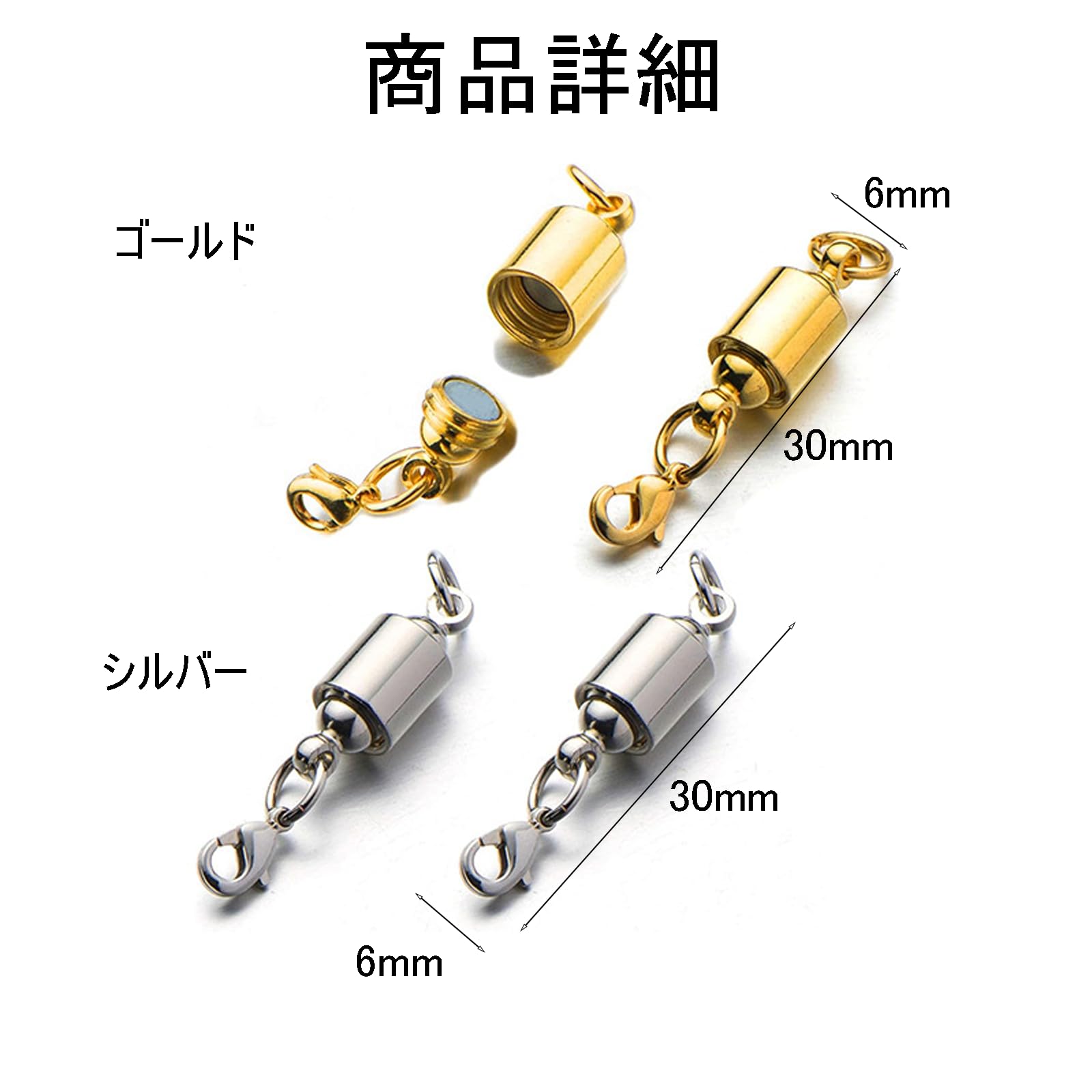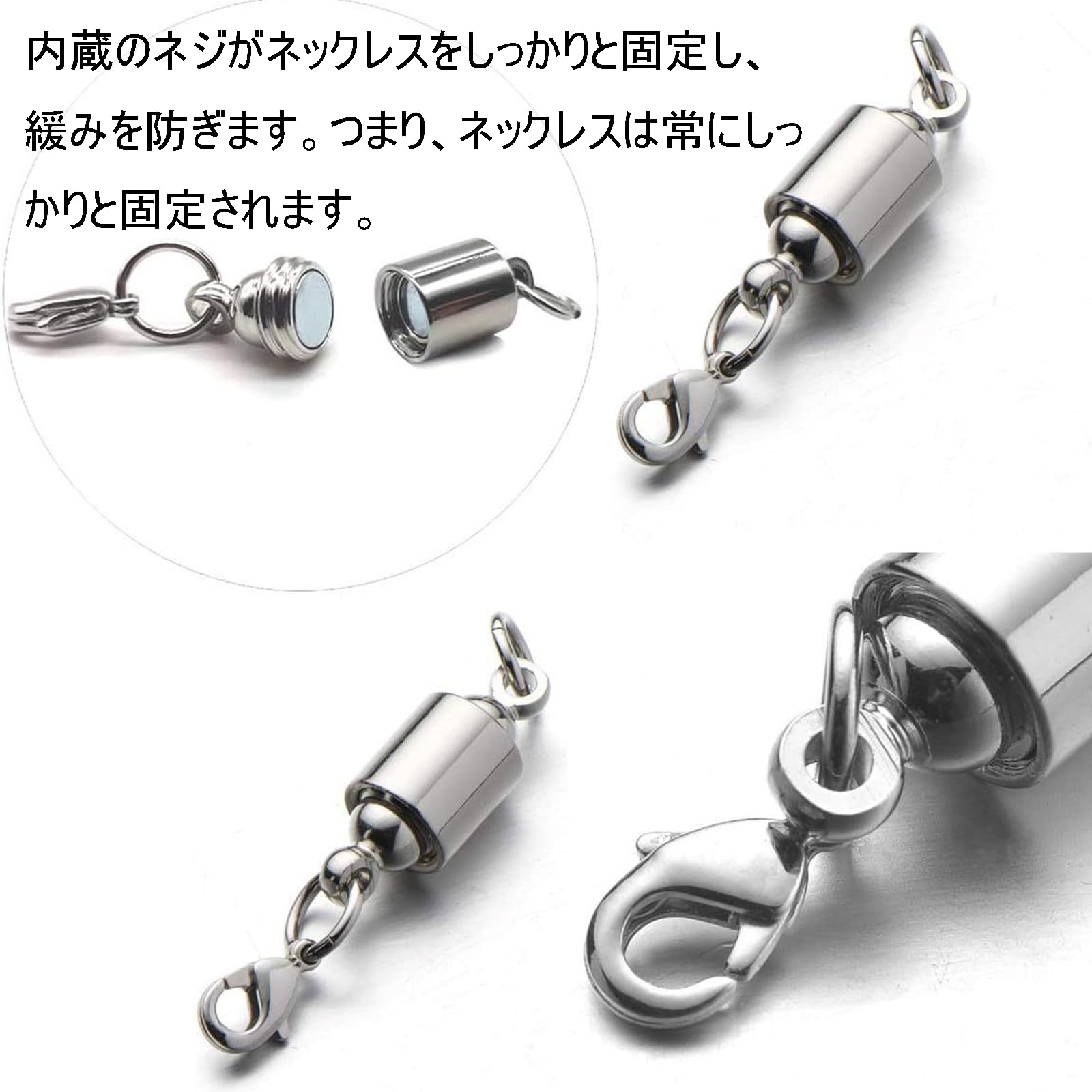 BaraRose ネックレス 留め具 ネックレス マグネット 留め具 マグネットクラスプ 磁気クラスプ アクセサリーパーツ チェーン止め 差し込み式 外れない 取付簡単 ステンレス製 ネックレス 金属アレルギー対応 マグネットクラスプ 強力 着脱式