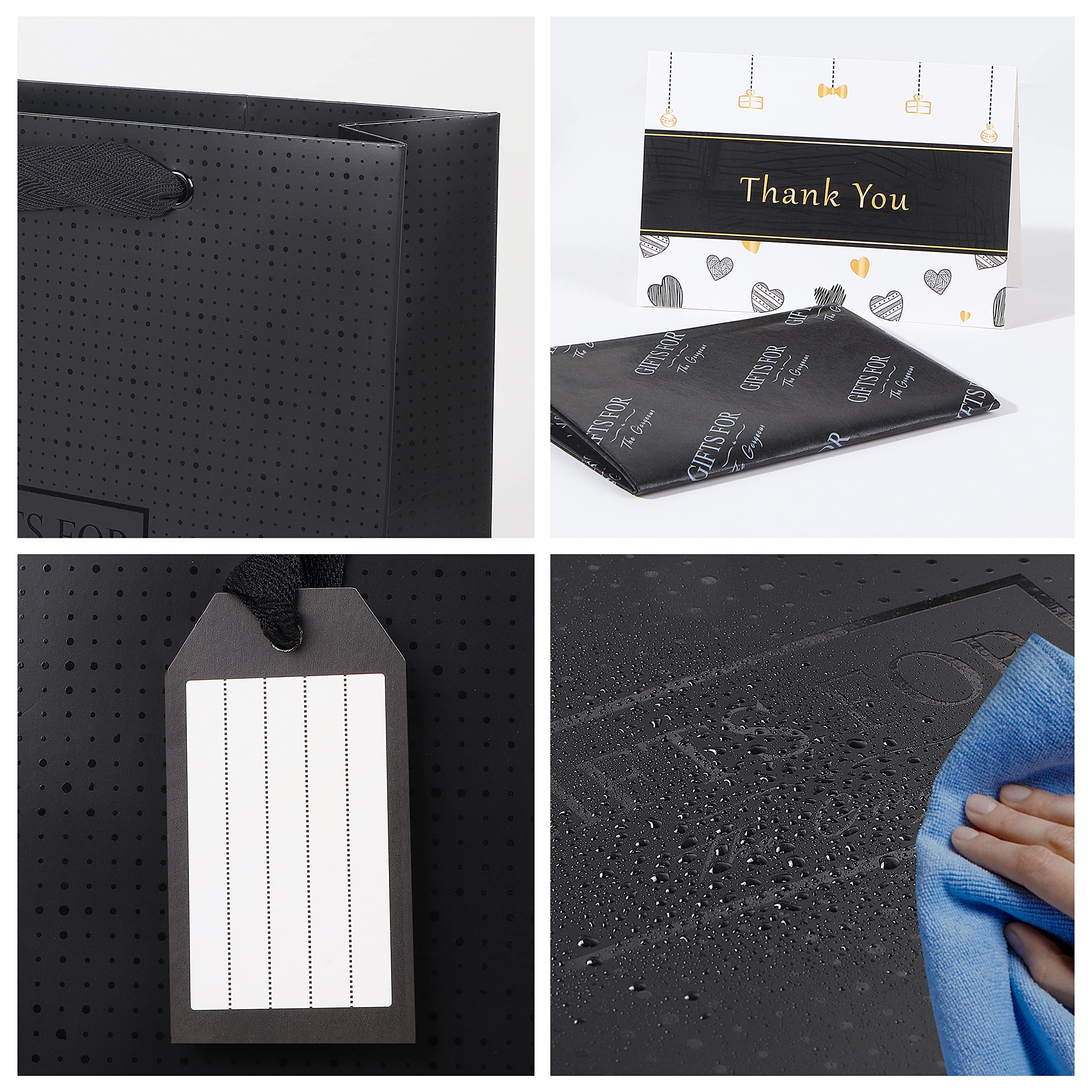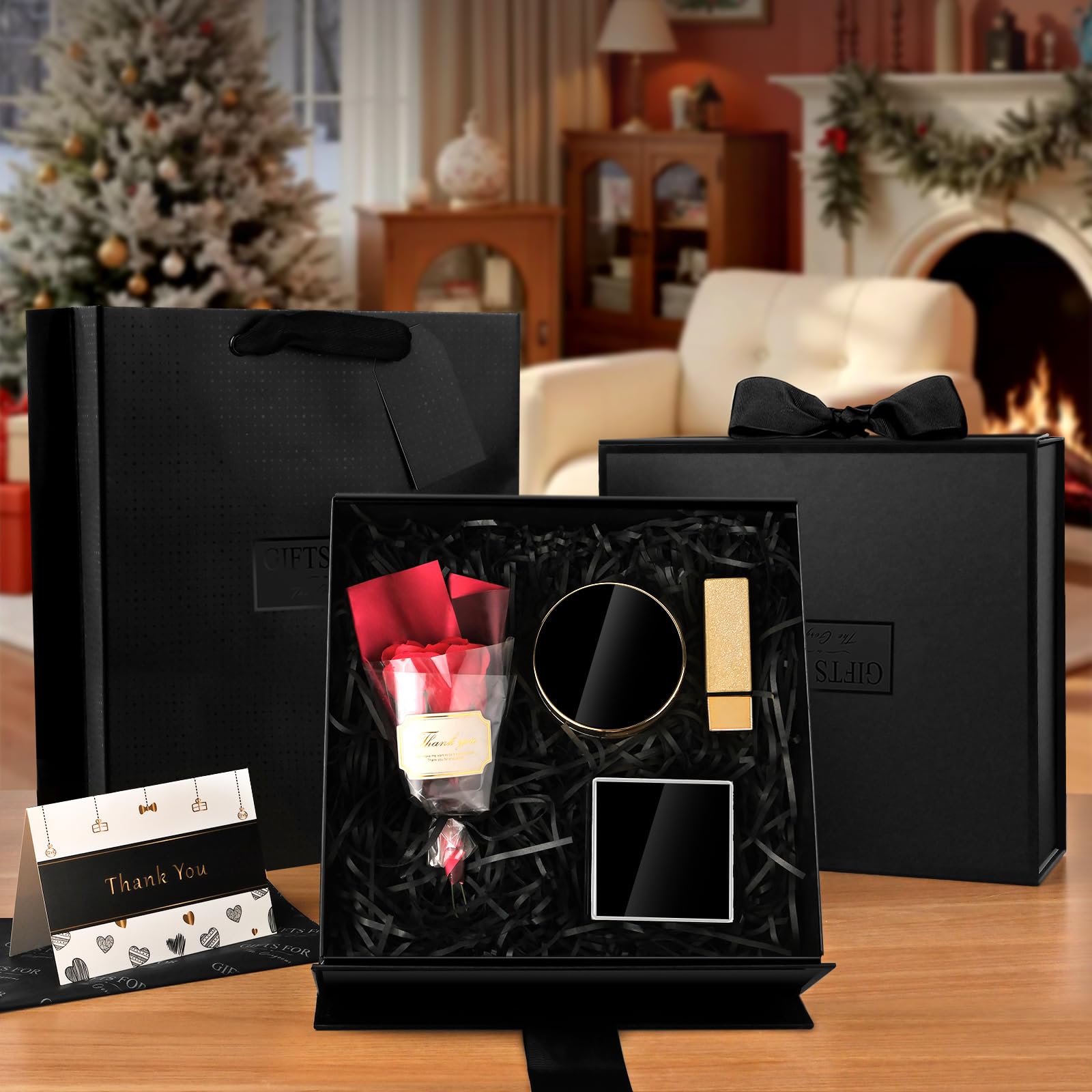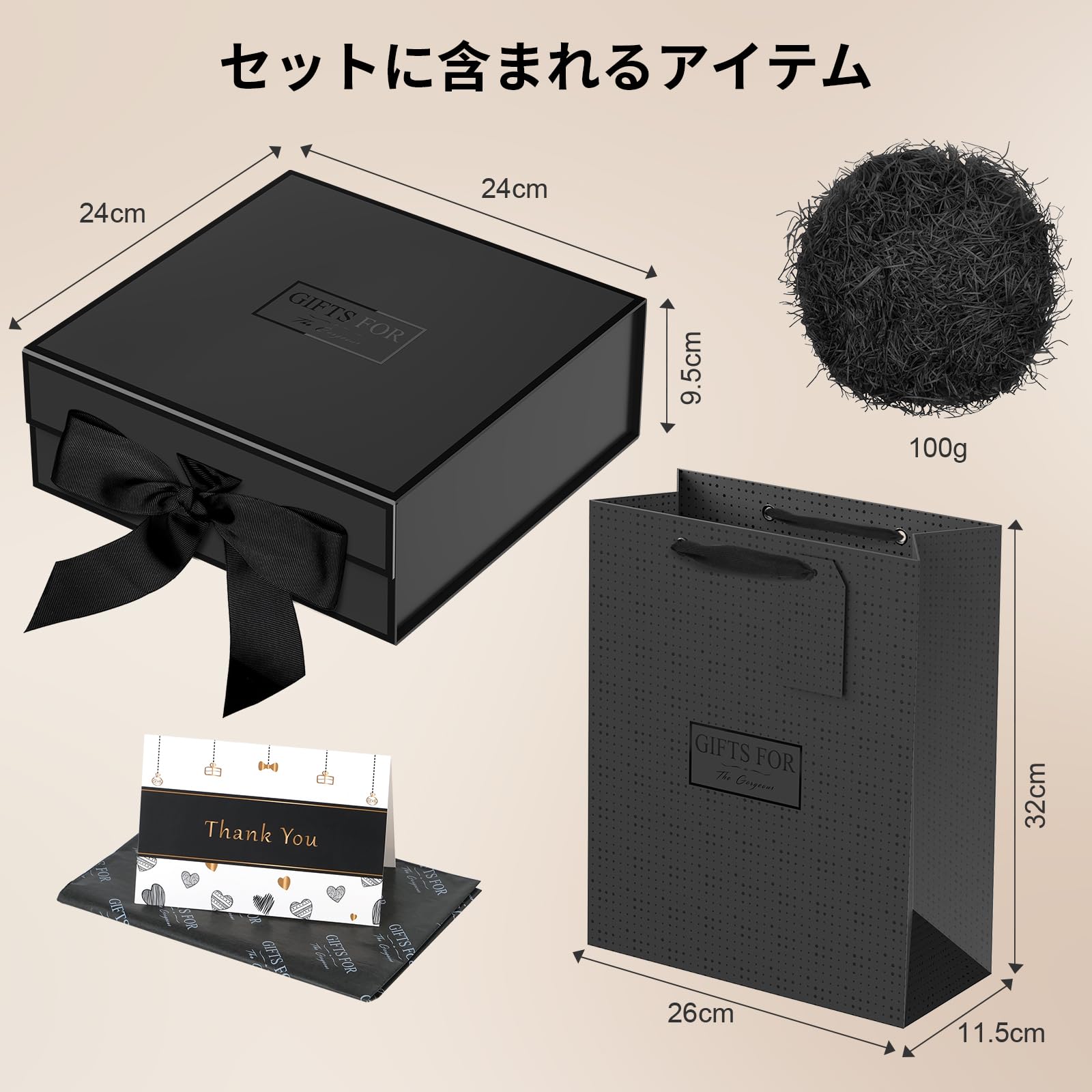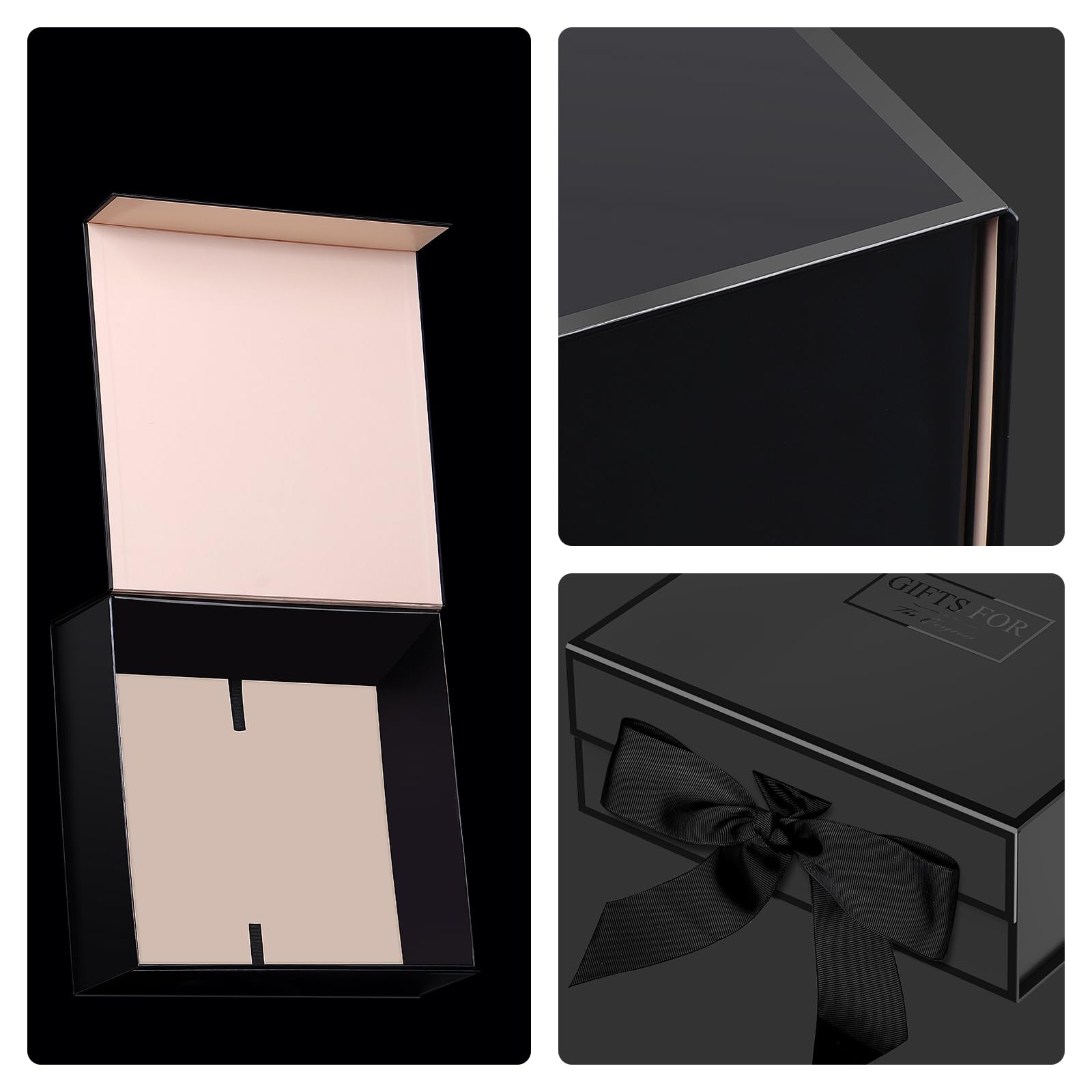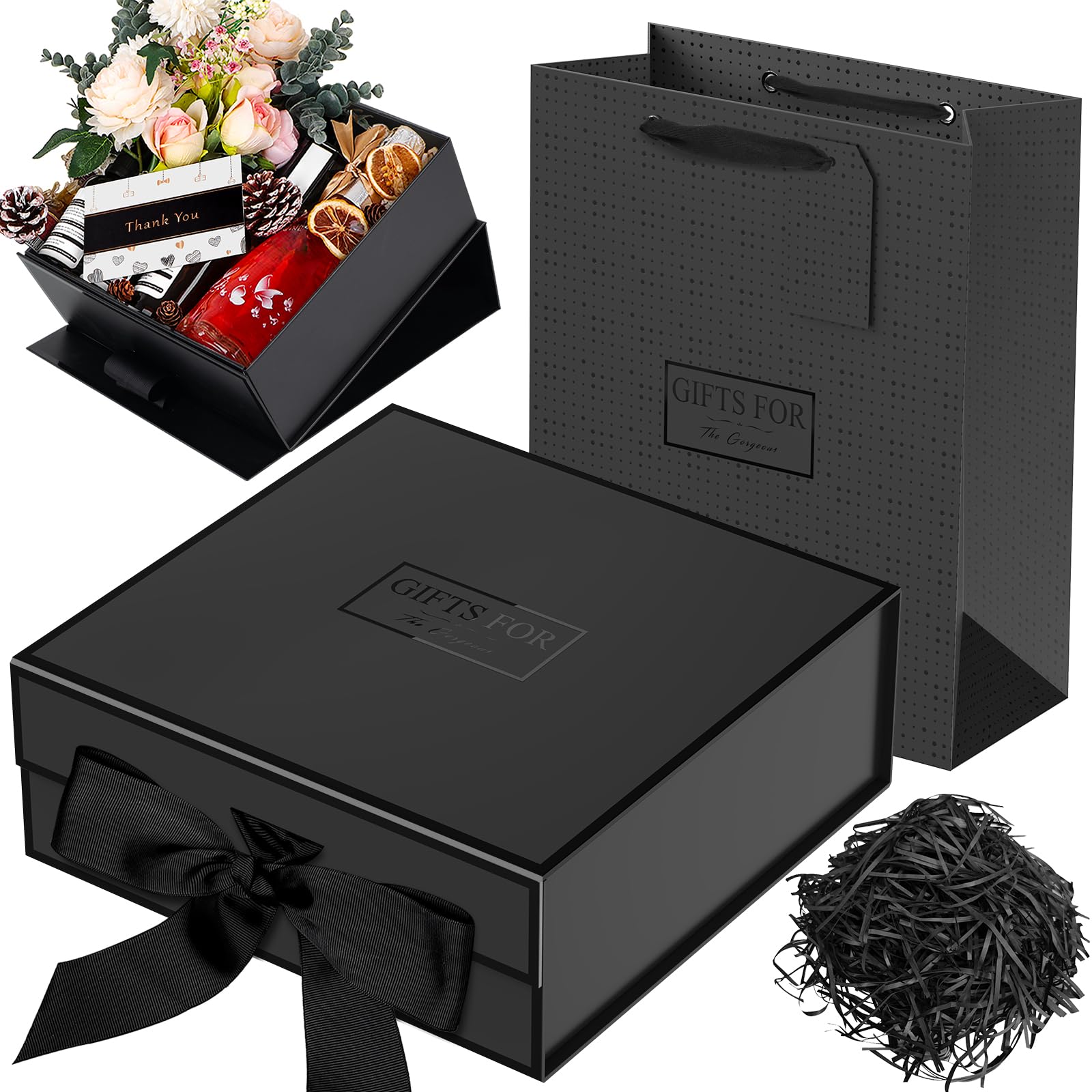 JiaWei ギフトボックス 蓋付き 磁気,ギフトバッグリボン パッケージボックスセット,付き手提げ用,細断紙グリーティング 24 x 24 x 9.5cm, 高級プレゼントぼっくす 箱, 蝶結び 贈り物, プレゼントボックス, 結婚式, 花嫁介添人, パーティー (ブラック)