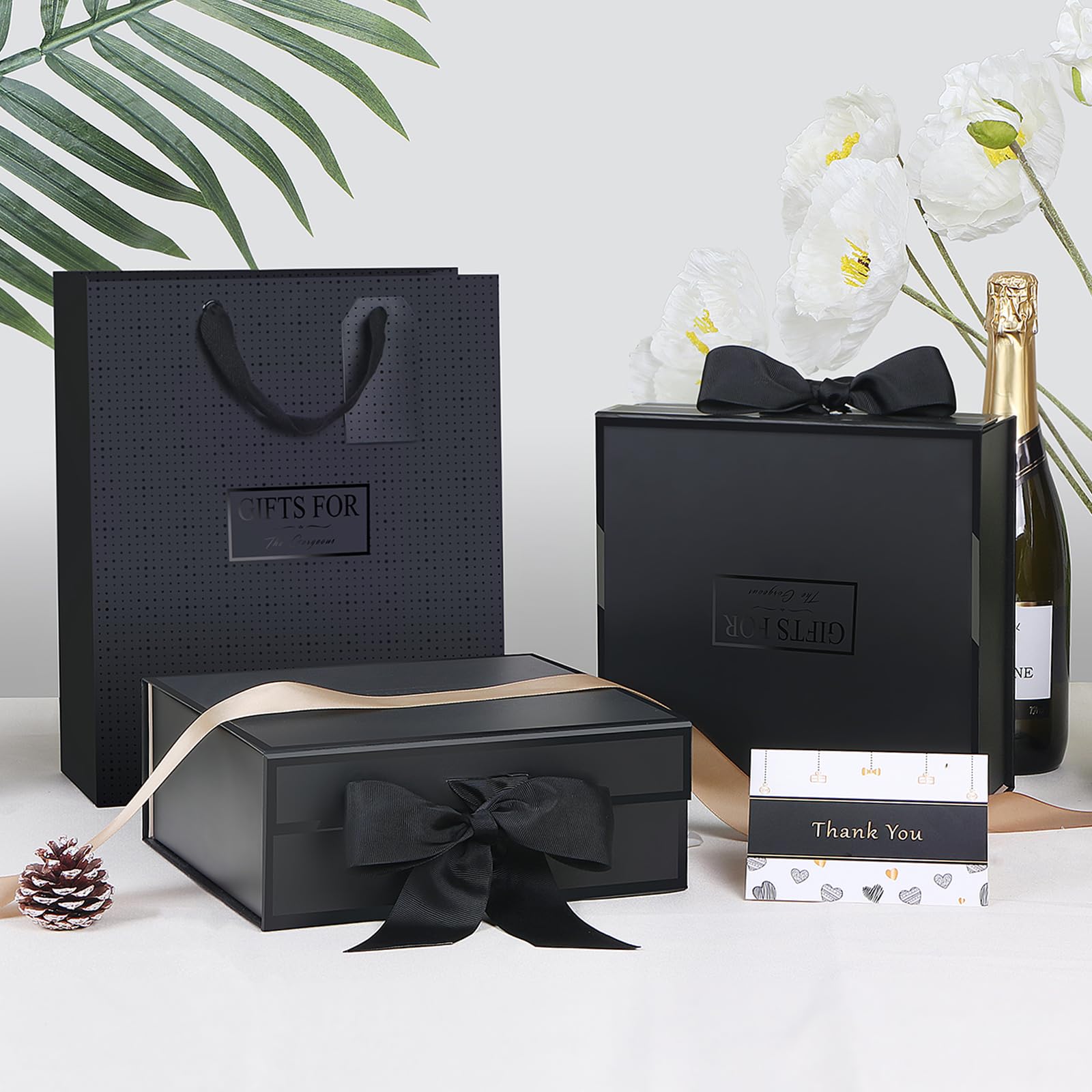 JiaWei ギフトボックス 24 x 24 x 9.5cm, プレゼントぼっくす 箱リボン付き, 高級 ギフトボックス, プレゼントボックス, ふた付きマグネットプレゼントぼっくす, 結婚式, 花嫁介添人, パーティー、誕生日クリスマス箱、お祭り, シンプルなハイエンドラッピング 箱