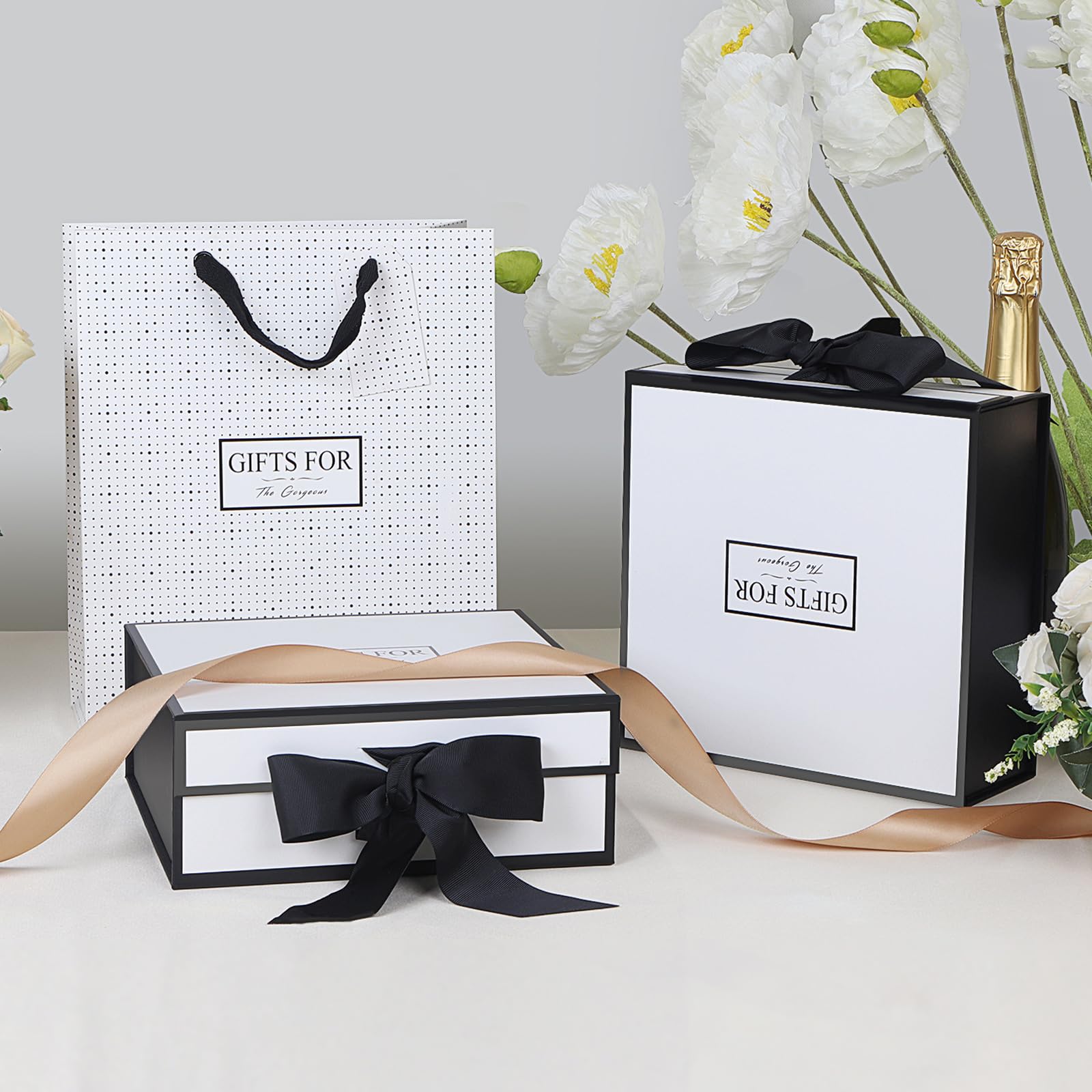 JiaWei ギフトボックス 24 x 24 x 9.5cm, プレゼントぼっくす 箱リボン付き, 高級 ギフトボックス, プレゼントボックス, ふた付きマグネットプレゼントぼっくす, 結婚式, 花嫁介添人, パーティー=