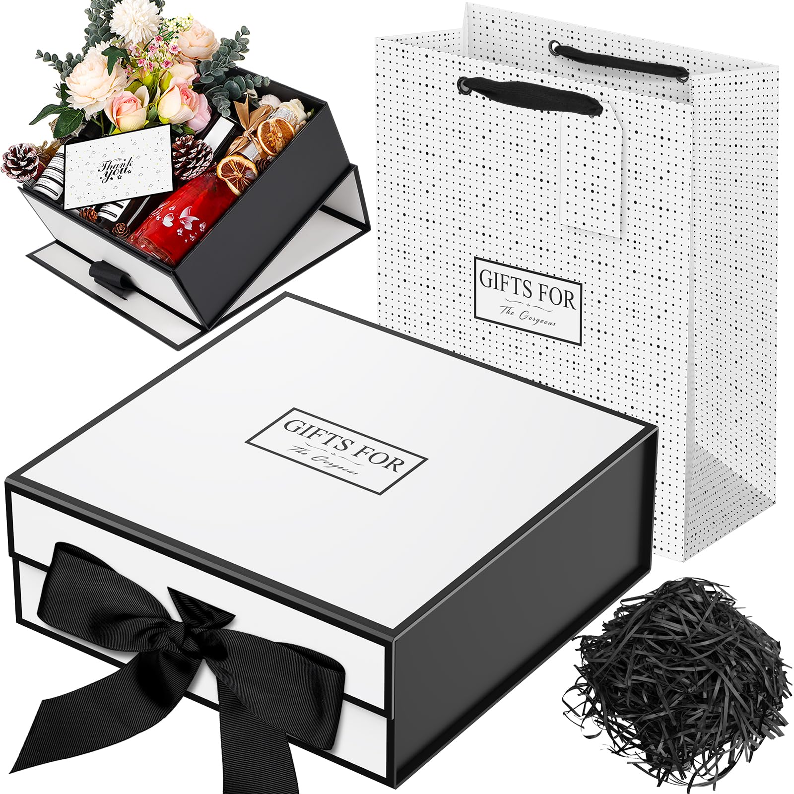 JiaWei ギフトボックス 蓋付き 磁気,ギフトバッグリボン パッケージボックスセット,付き手提げ用,細断紙グリーティング 24 x 24 x 9.5cm, 高級プレゼントぼっくす 箱, 蝶結び 贈り物, プレゼントボックス, 結婚式, 花嫁介添人, パーティー (ホワイト)