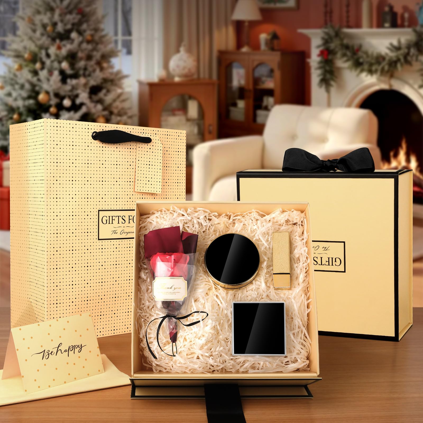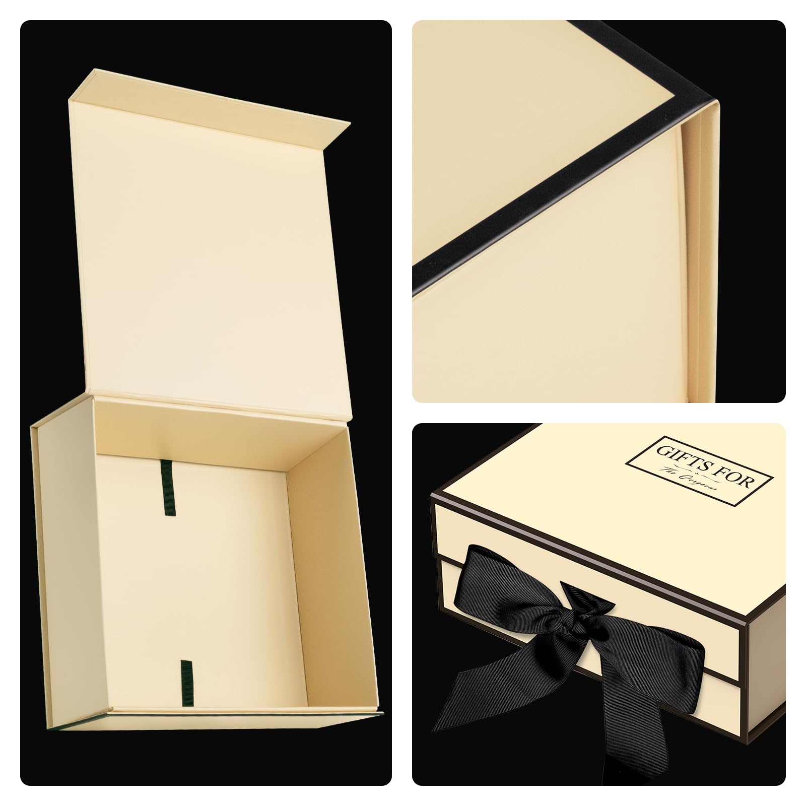 JiaWeiギフトボックス、23×22.5×9 cm ブラックギフトボックス、リボンボックス、結婚式、パーティー、誕生日、クリスマス、祝日のためのシール付きギフトボックス