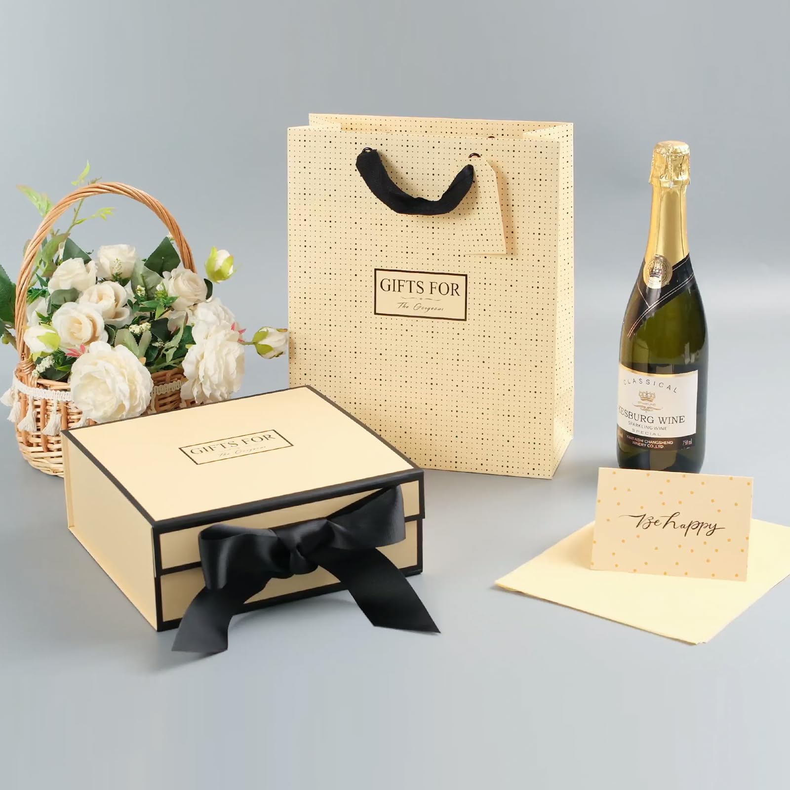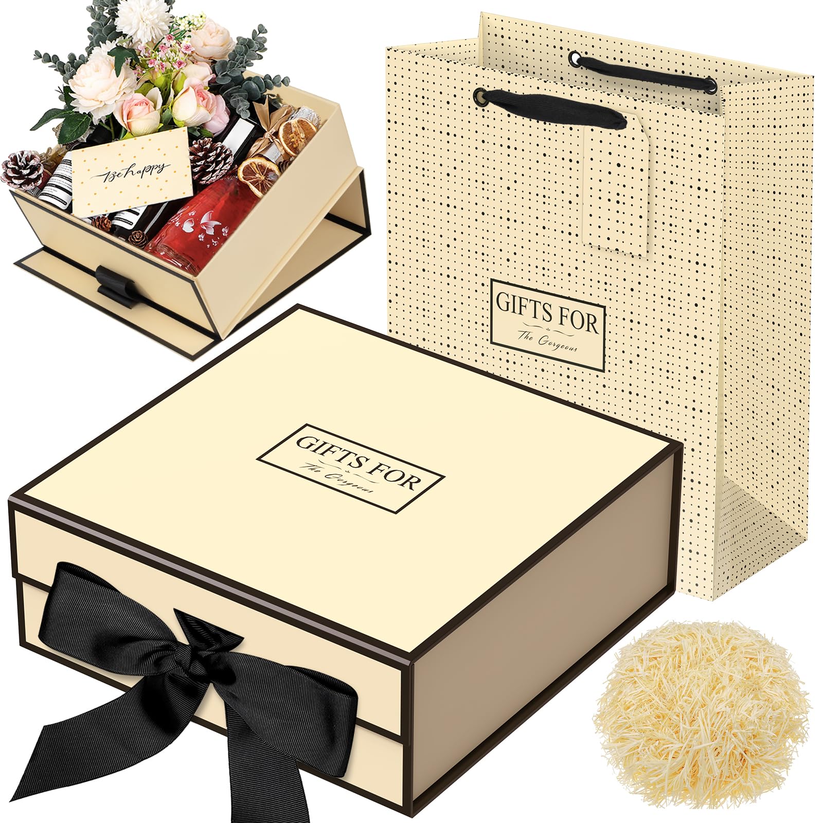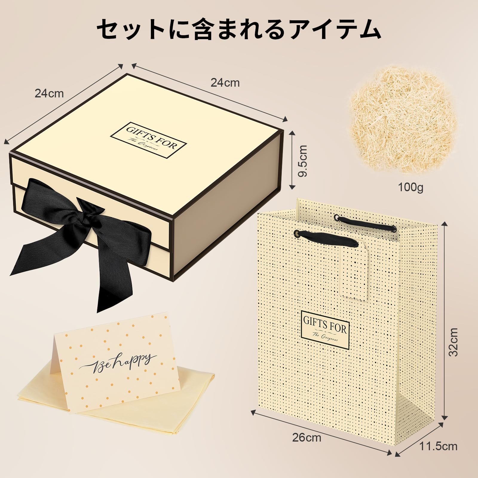 JiaWei ギフトボックス 蓋付き 磁気,ギフトバッグリボン パッケージボックスセット,付き手提げ用,細断紙グリーティング 24 x 24 x 9.5cm, 高級プレゼントぼっくす 箱, 蝶結び 贈り物, プレゼントボックス, 結婚式, 花嫁介添人, パーティー (クリーム)