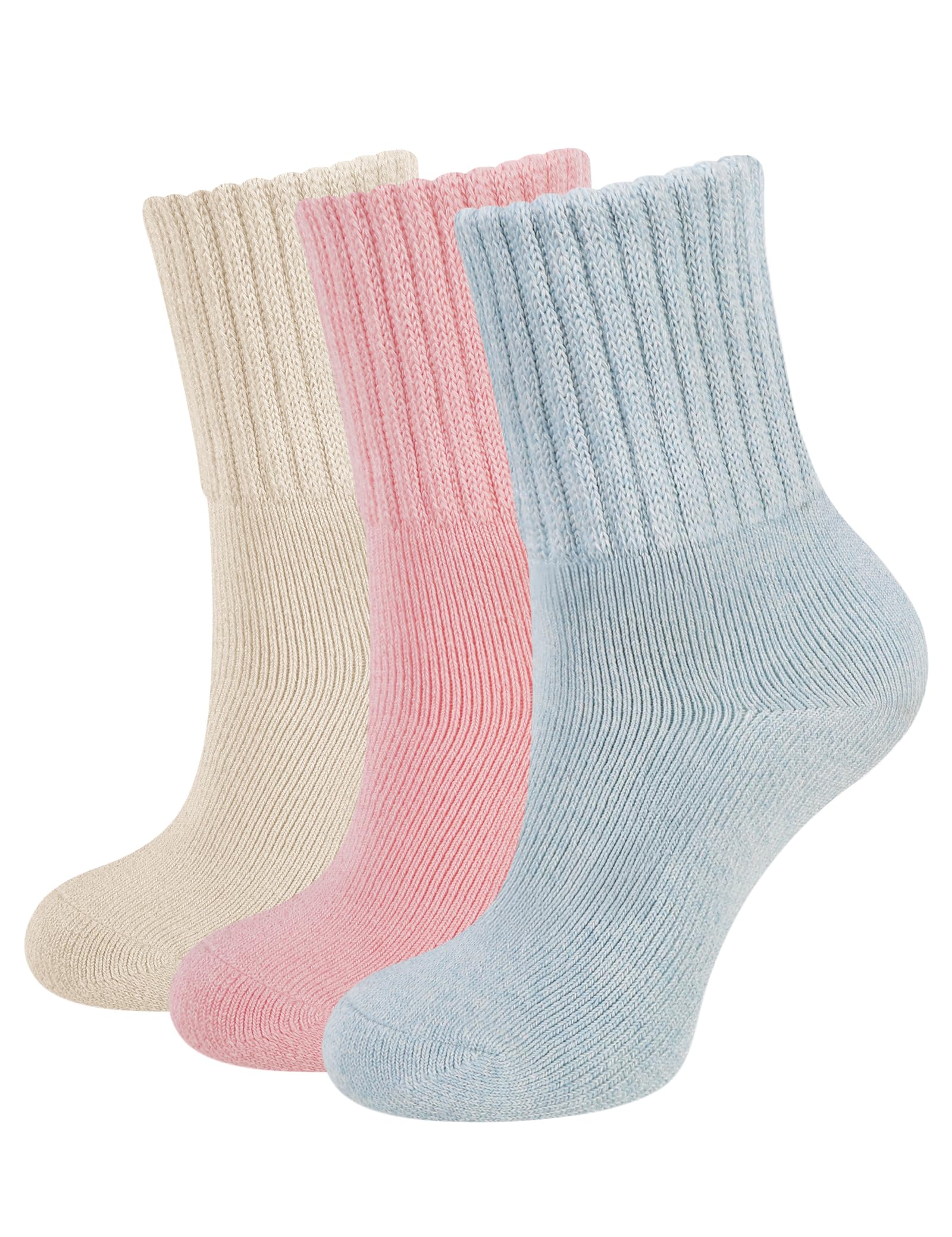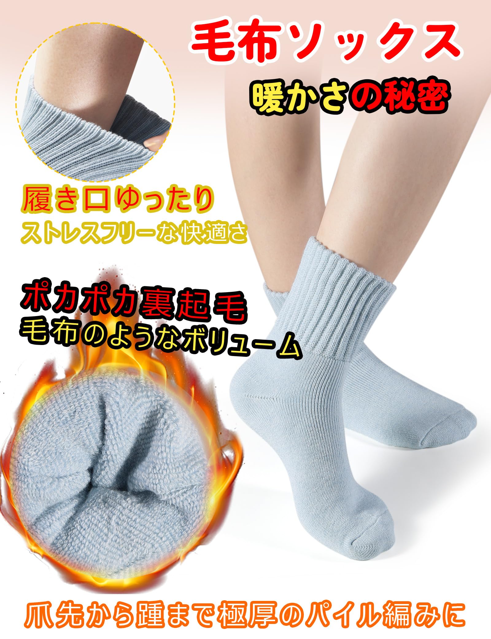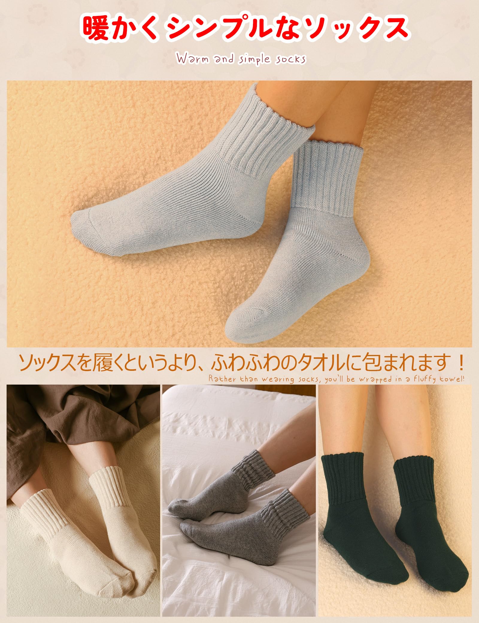 [CLOSEMATE] 靴下 レディース クルーソックス 厚手 裏パイル 暖かい 通気防臭 口ゴムゆったり ルームソックス 冷え対策 あったかい 吸汗速乾 蒸れない 無地 通勤通学 スクール 23-25cm 3足入り 秋冬
