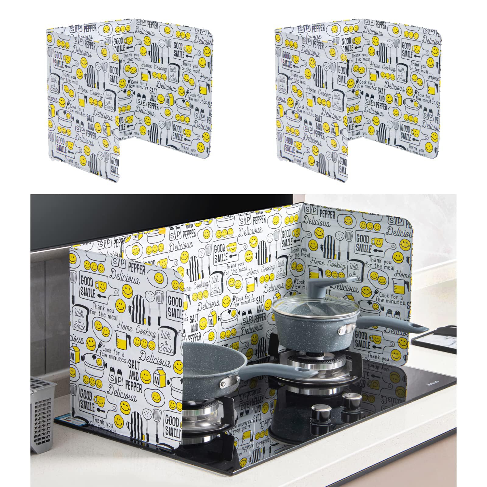 allbeschoi 油はねガード レンジガード 油はねガード 折り畳み式 お手入れ簡単 ストーブガード 油はねガード 油汚れ 水洗い 耐熱 アルミニウム 熱シールド レンジガード クックトップ撥油プレート 2個 (笑顔)