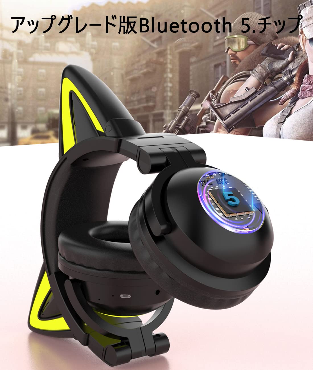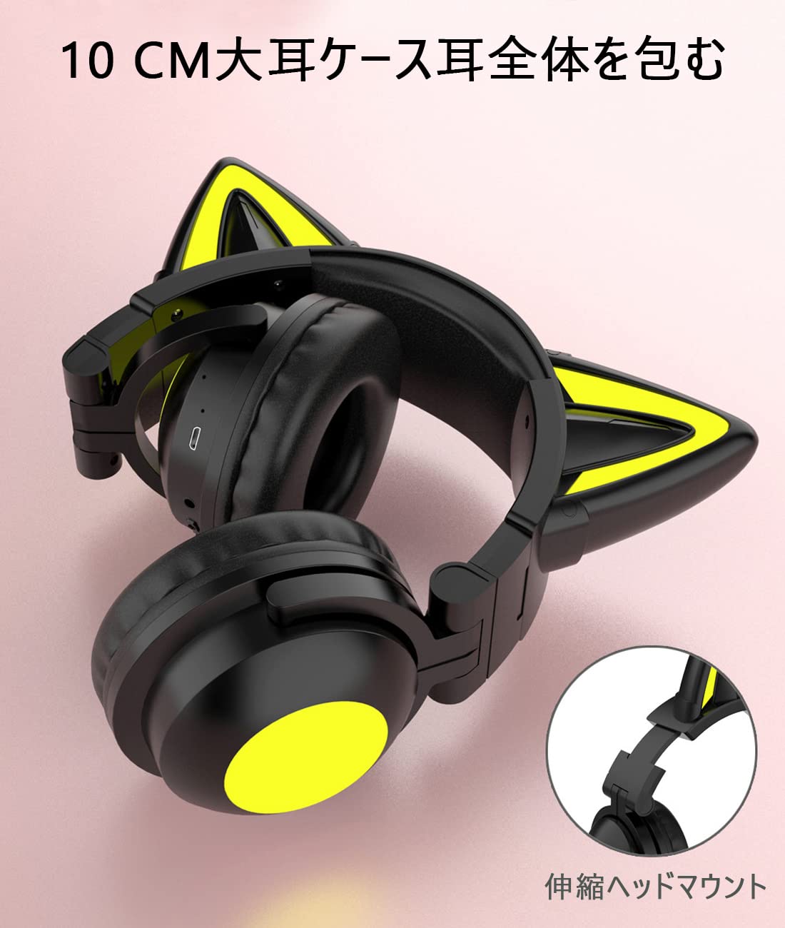 Absdefen ヘッドホン 猫耳イヤホン ヘッドセット 可愛い ゲーミングヘッドセット ネコ耳ヘッドフォン Bluetooth5.0 有線無線両用 3.5mm 伸縮式 折り畳み式 軽量 マイク付き LEDライト 7色自由変換 USBポート搭載 マイク内蔵 PC対応 在宅勤務 オンライン授業 ゲーミングなどに適用 クリスマス 誕生日 入学式 プレゼント 男女兼用 日本語取り扱い書 (ブラック)