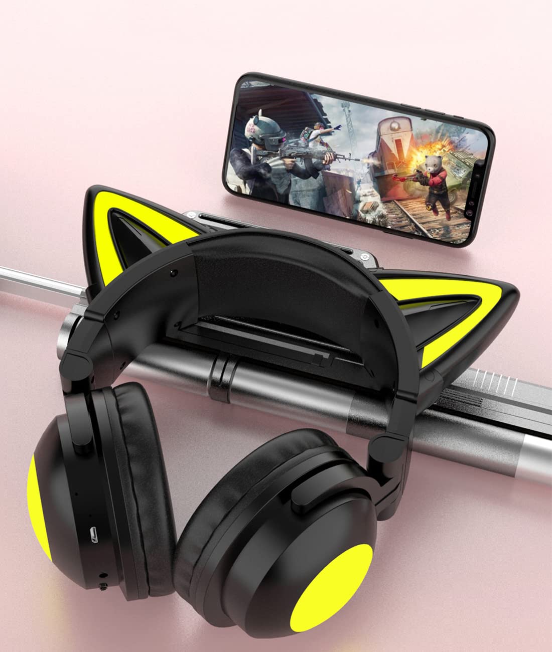 ゲーミングヘッドセット ps4 ヘッドホン ps5 ヘッドセット 猫耳 bluetooth 5.0 有線/無線両用 ピンク マイク付き ゲーミング へっどほん フォートナイト へっどせっと Switch スイッチ ヘッドフォン LED ノイズキャンセリング 軽量 ゲーム用 PS5 /PC/FPS/パソコン 対応 男女兼用 プレゼント PHOINIKAS (ピンク)
