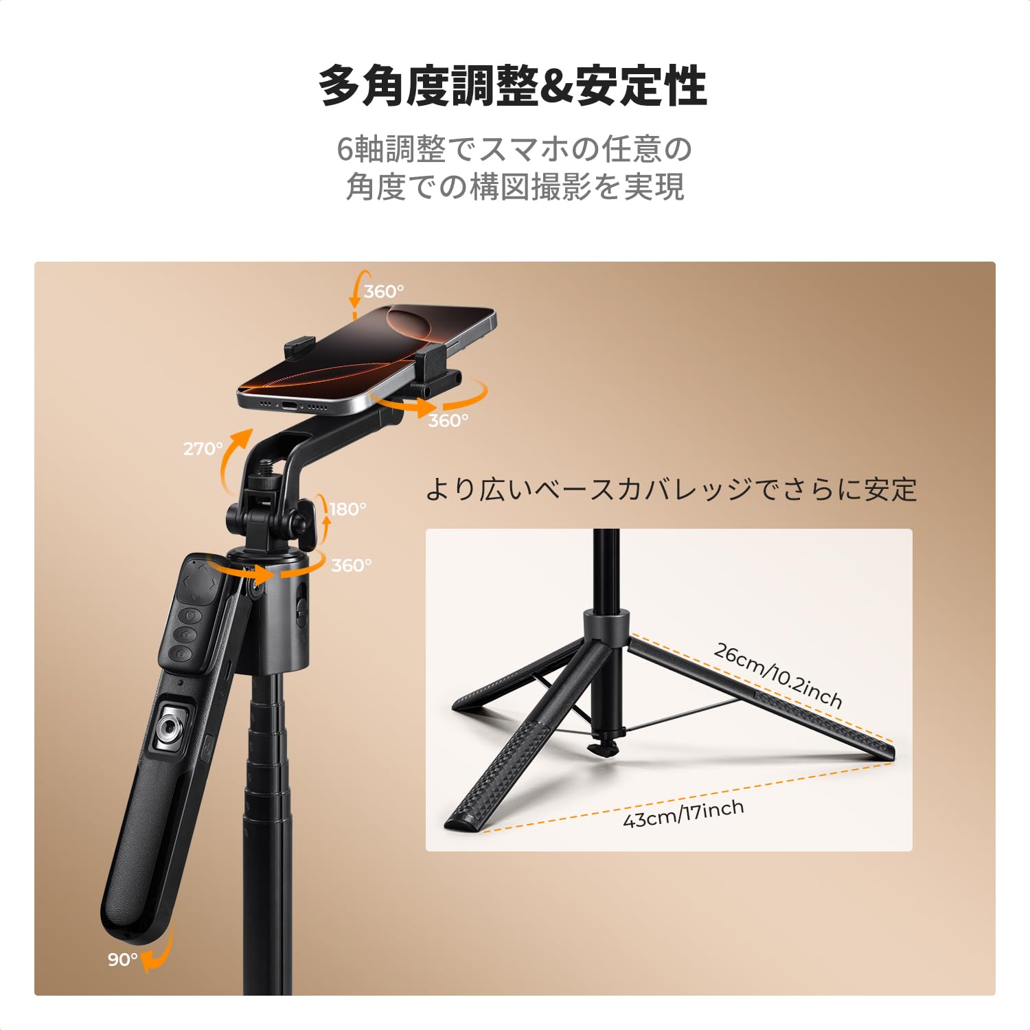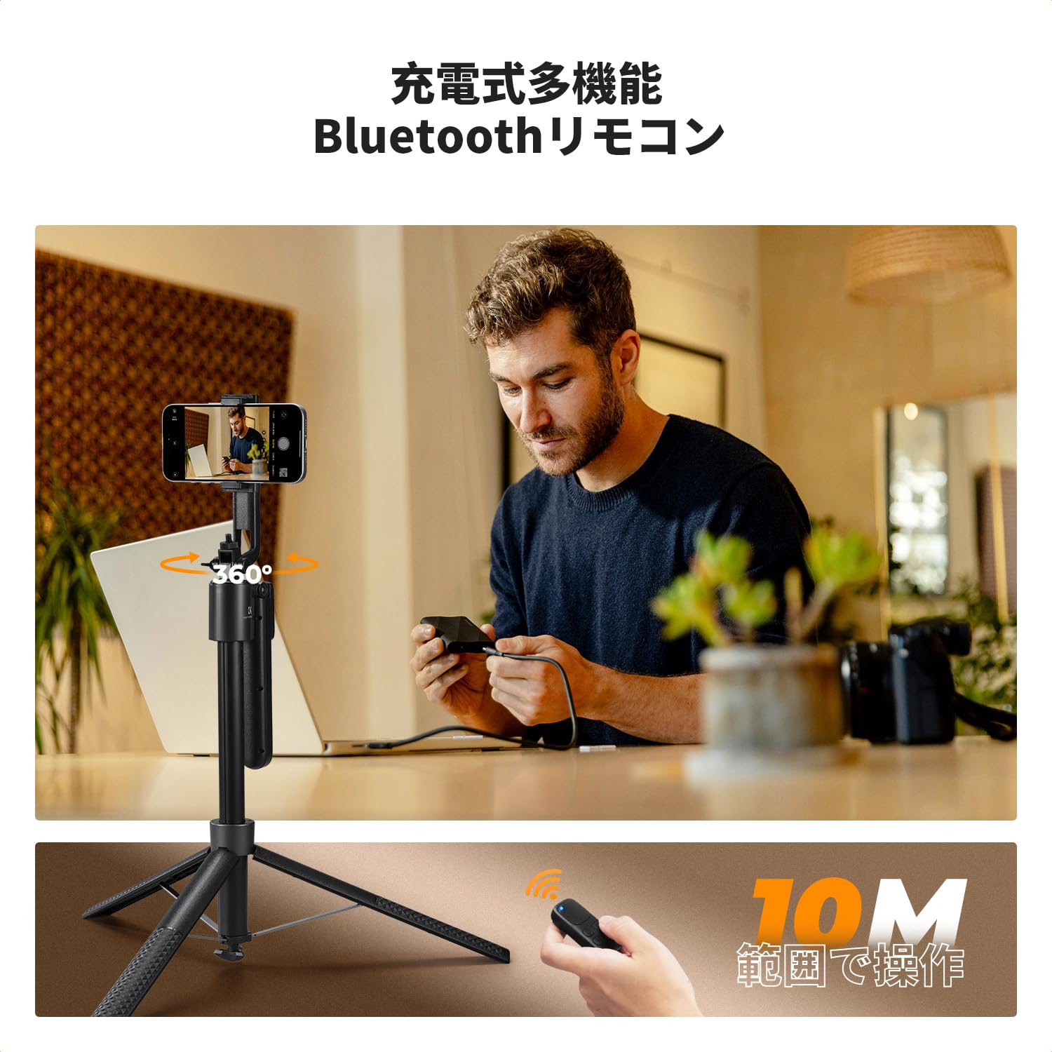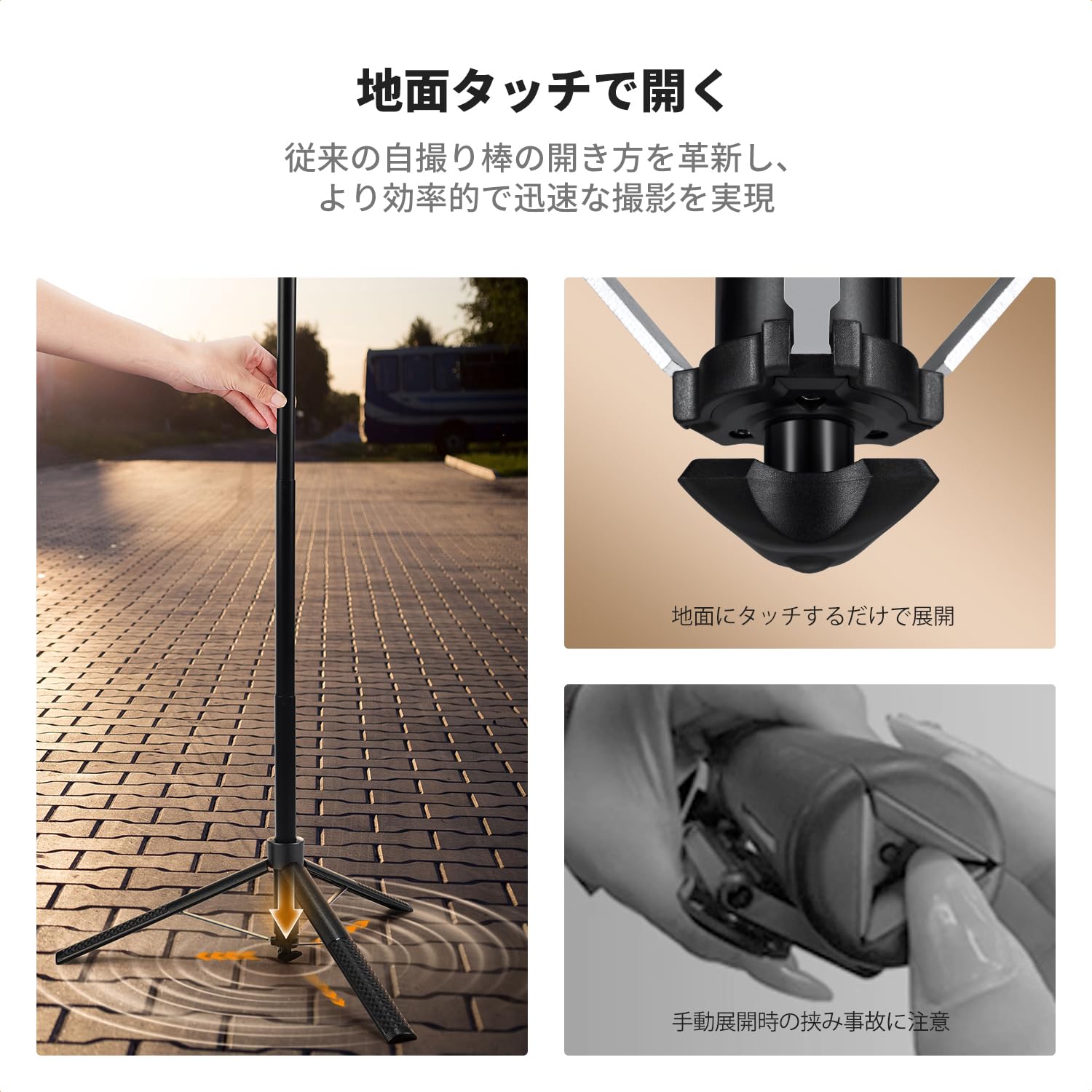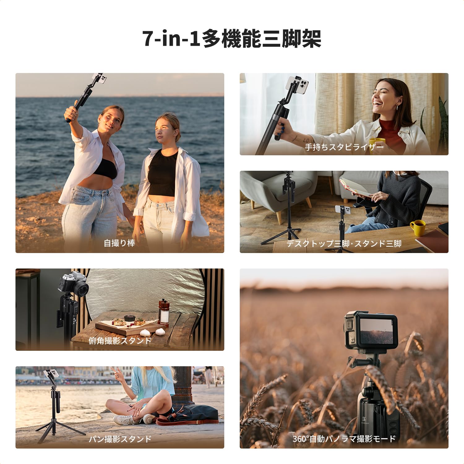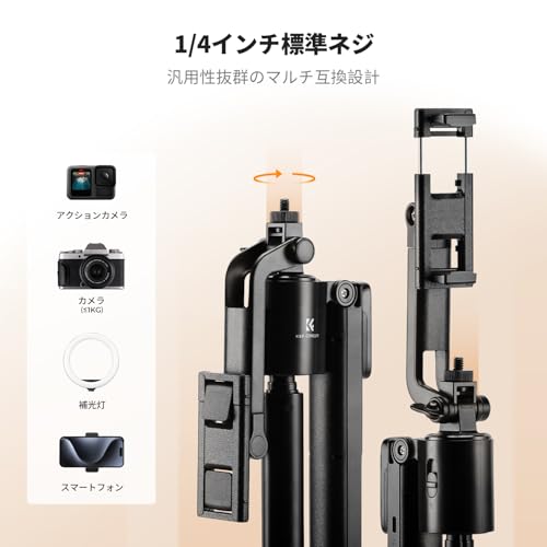 K&F Concept 自撮り棒 セルフィースティック for iPhone 自動開閉スマホ三脚スタンド 360°回転 Bluetoothリモコン付き 伸縮式自動三脚 アルミ合金製