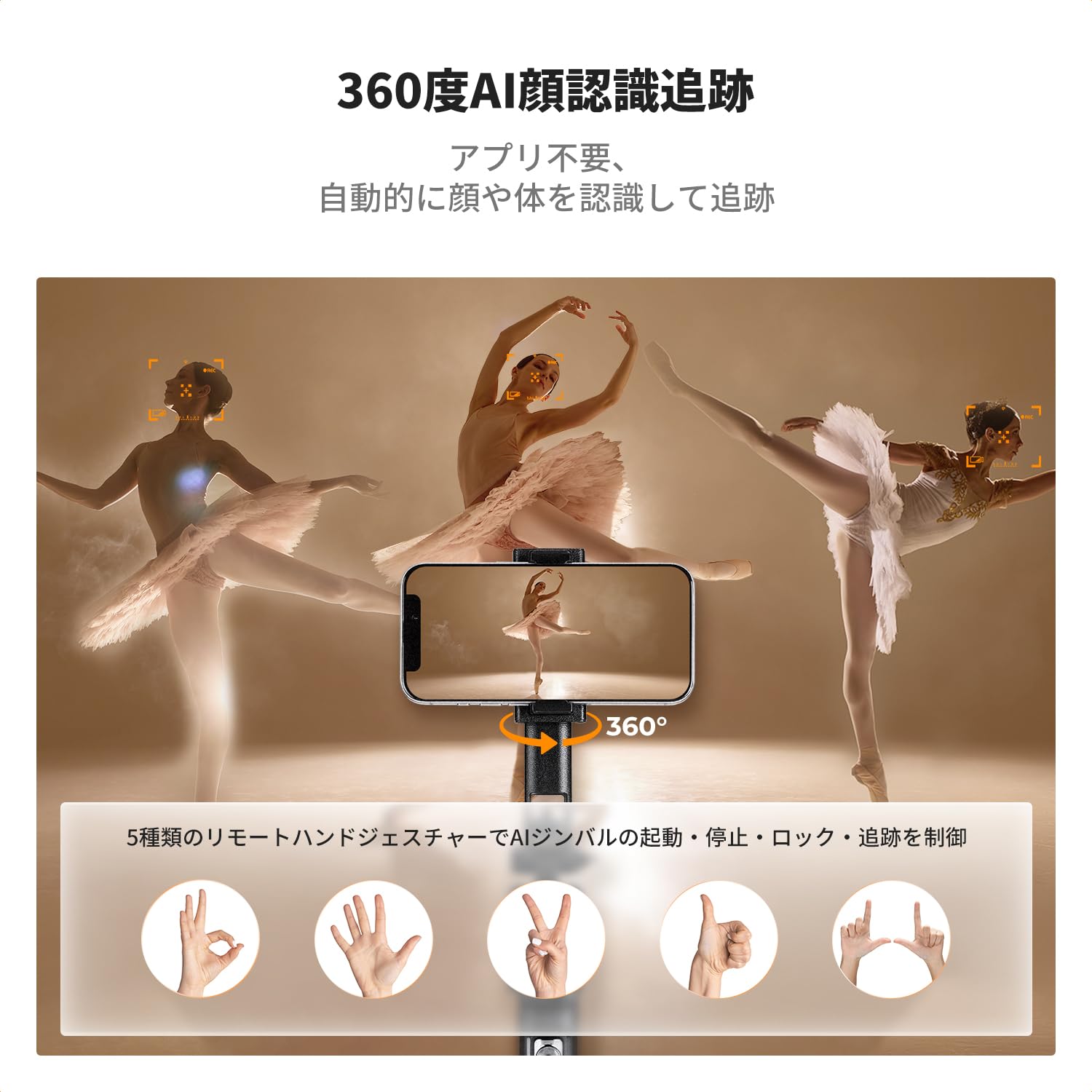 K&F CONCEPT スマホ 三脚 360°AI自動顔追跡 LEDライト付き 自撮り棒 180cm 6段階調節 6軸調整可能 スマホ ジンバル ジェスチャーコントロール 1/4