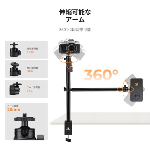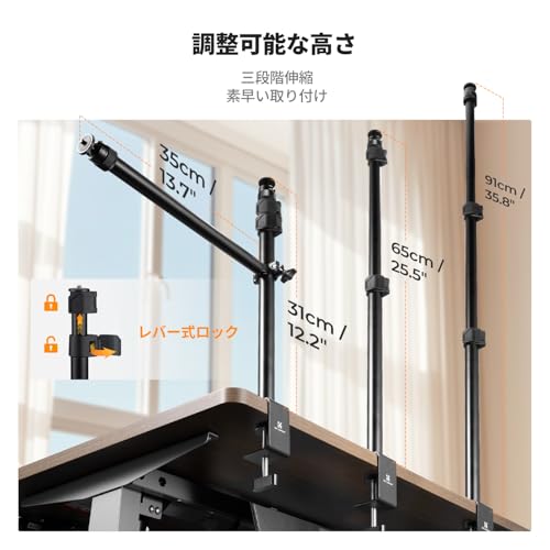 FreeSea ブームアーム 延長アーム 67インチ~22インチ 調節可能 軽量ポータブル Cスタンド/ライトスタンド用 カメラ アクセサリー 1/4 & 3/8インチ ネジ対応
