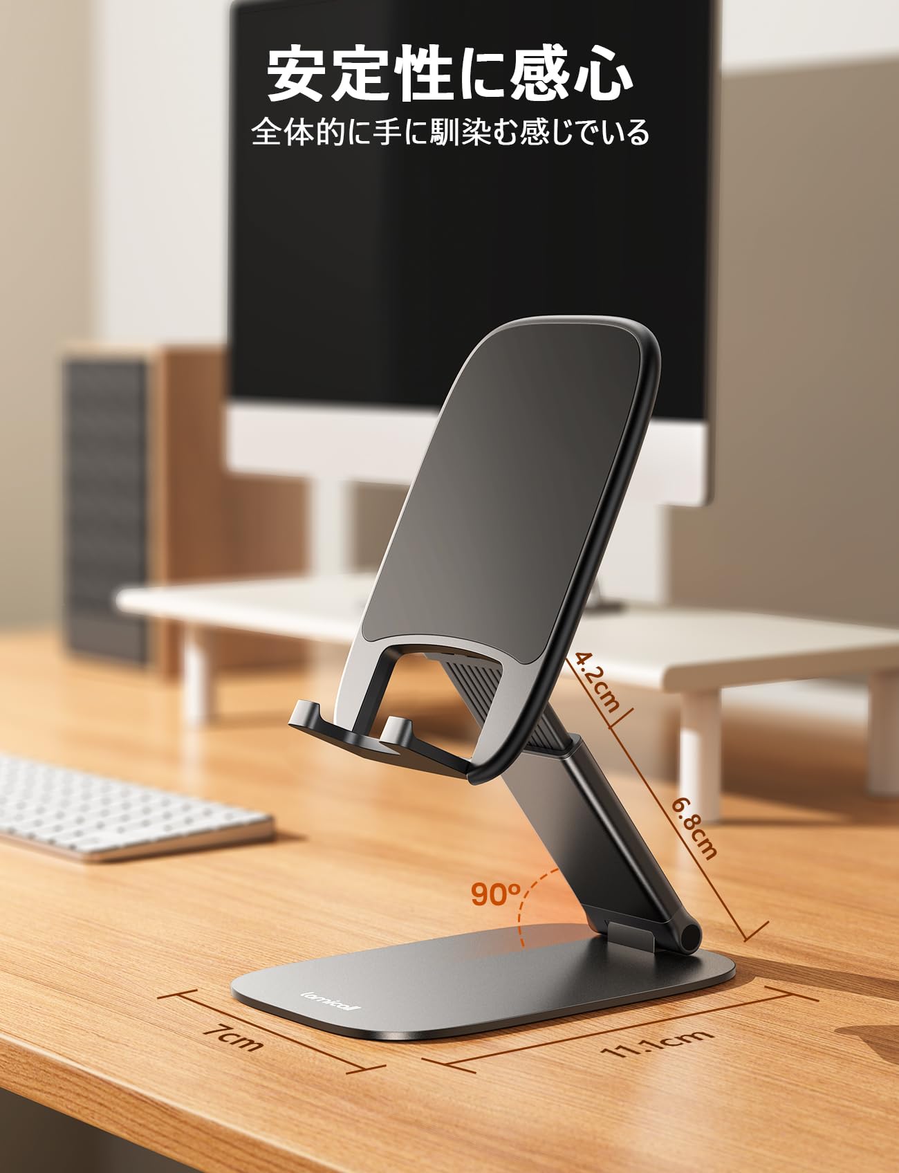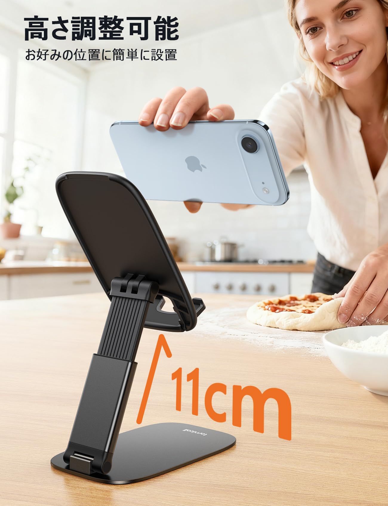 【超コンパクト】 折り畳み 高さ調整 スマホスタンド アルミ Lamicall : 卓上 小型 軽量 伸縮 角度 折りたたみ 携帯 置き アイホン 立て すまほ 台 スマホ 机 つくえ デスク 縦 横 滑り止め アイフォン スマフォ アンドロイド iPhone 17 Air 16e 16 15 14 plus pro promax 13 mini 12 プロ マックス se Huawei Xperia android に対応 黒 ブラック