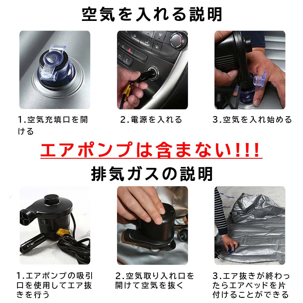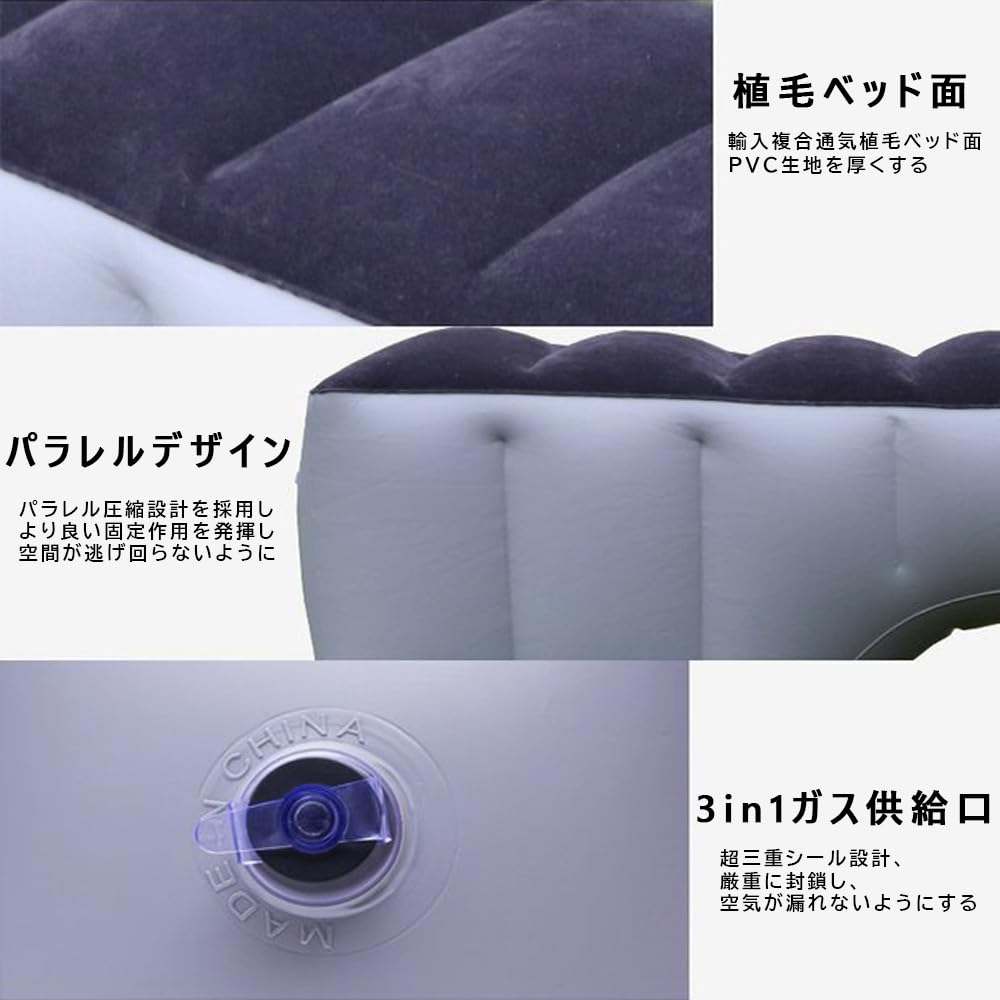 車中泊 ベッド 車載 エアーマット 独立クッション 収納袋付き車載電動ポンプ 折畳み式 旅行用 屋外用 ブ (灰) (グレーのひも付き)