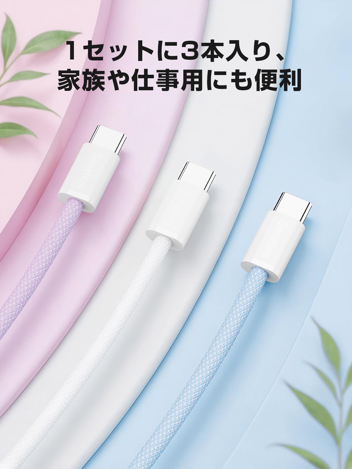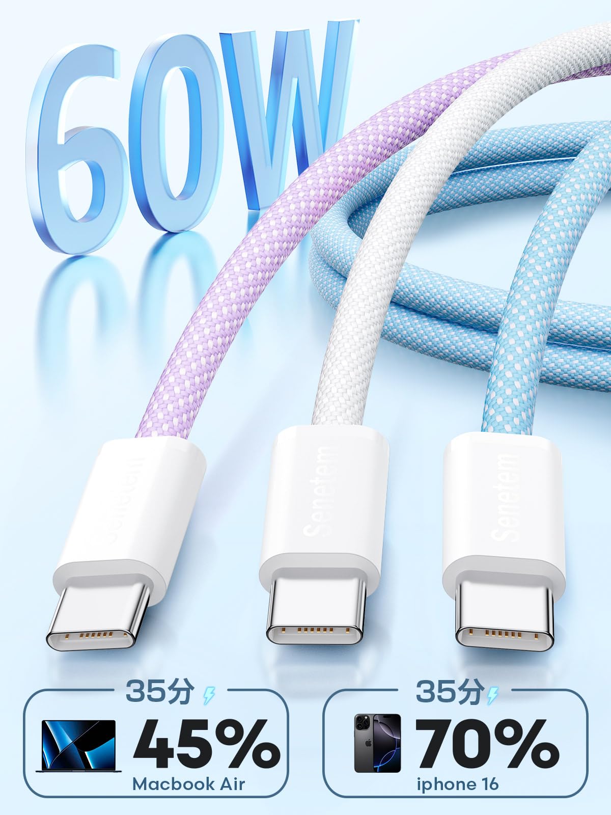 Senetem USB C ケーブル タイプc【1m+1m+1m 3本】USB-C to USBC 60W急速充電 PD対応 高速データ転送 高耐久コード iPhone 16/15・MacBook・iPad Pro/Air・Samsung Galaxy・Xperia・Pixel・イヤホン等Type-C機種対応