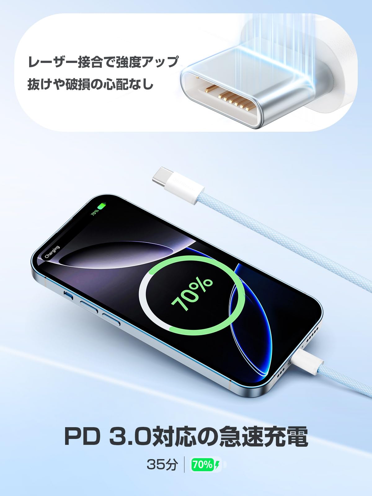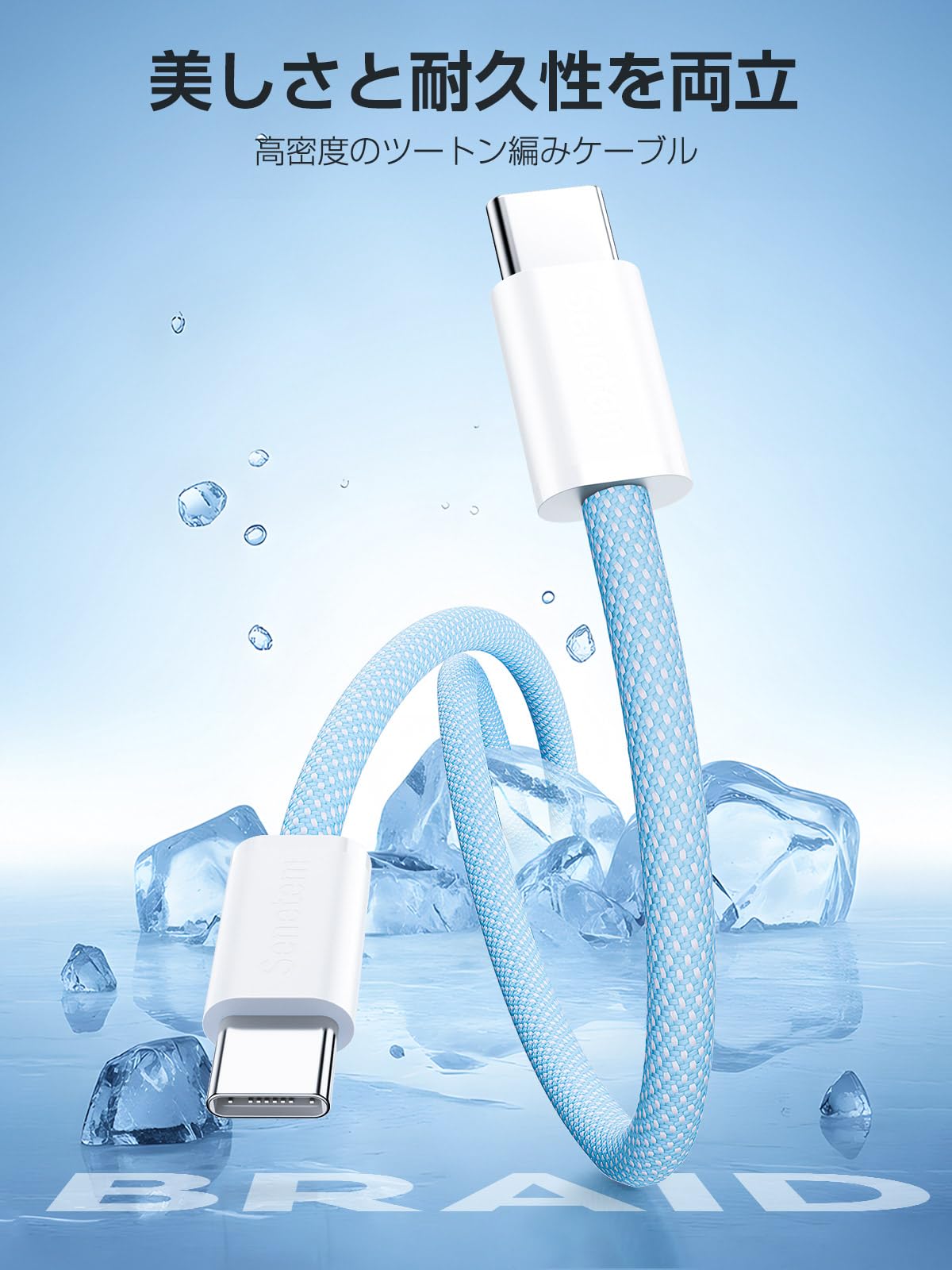 USB C ケーブル 3M 2本セット 100W USB C/Type C to Type C ケーブル 急速充電 PD対応 断線防止 タイプC ケーブル iPhone 16/15 Pro/Plus/Pro Max、MacBook Pro/Air、iPad Pro/Air、Galaxy、PixelなどType-C機種対応
