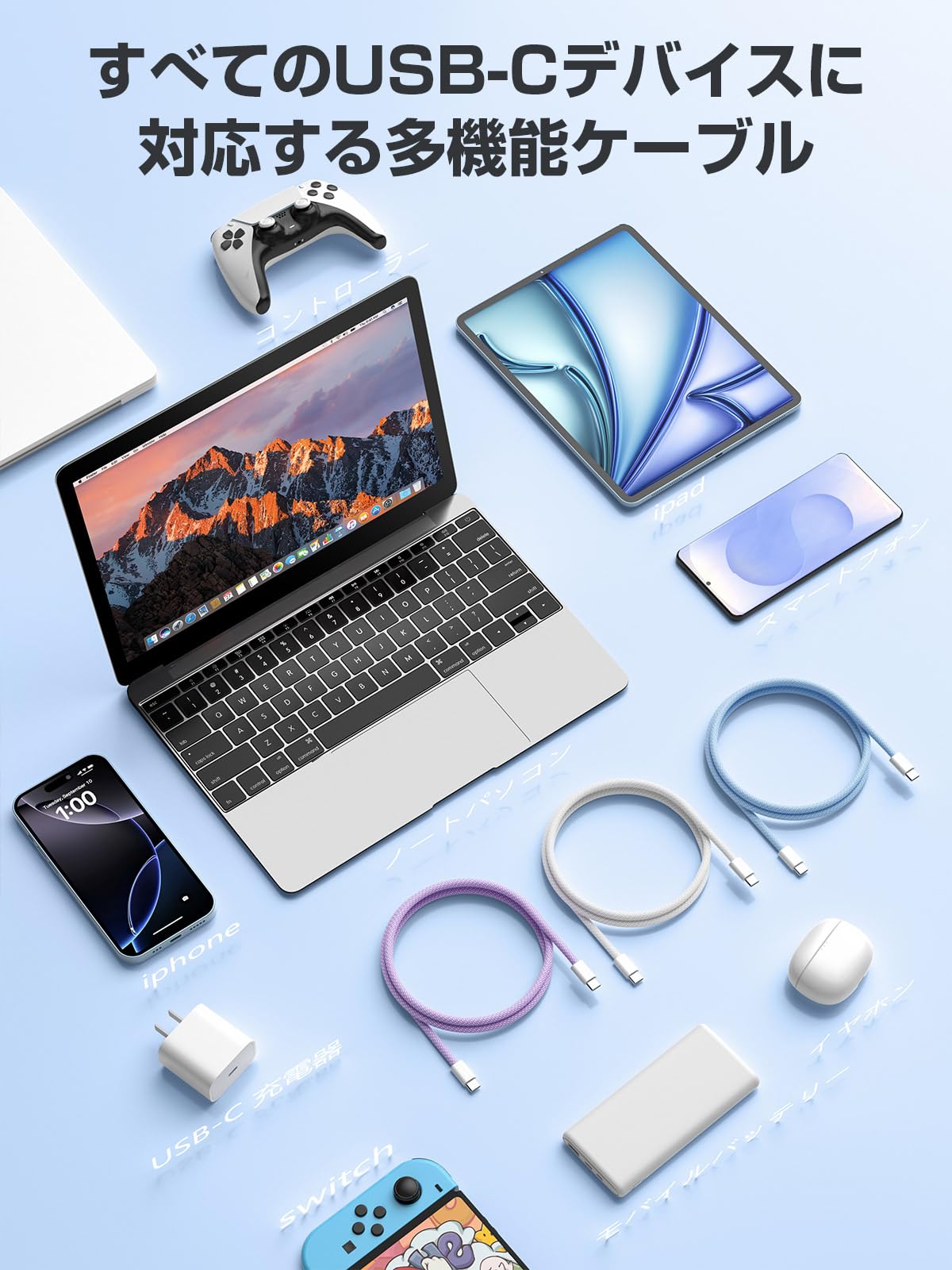ZKAPOR USB C ケーブル PD対応 1M 超急速充電 USB C to USB C ケーブル 100W/5A USB Type C ケーブル 高速データ転送 超高耐久ナイロン編み iPhone 15/15 Pro Max、iPad Pro、iPad Air、Note 10、Galaxy S23、Huawei P40 /Mate 60、Google Pixel 7等Type-c機種対応