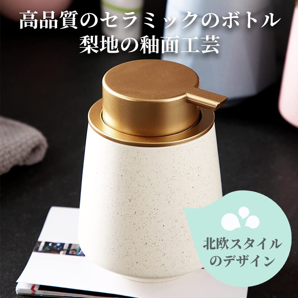 KAWEINA ハンドソープボトル ソープディスペンサー セラミック 液体タイプ 詰め替えボトル 手動 押しタイプ ポンプ式 手洗い 磁器 陶器 広口 400ml ハンドソープ用 食器用洗剤 北欧スタイル おしゃれ 耐久性強い キッチン 洗面所 トイレ バスルーム お風呂場 ホテル 洋館 プレゼントZX-ANWY5