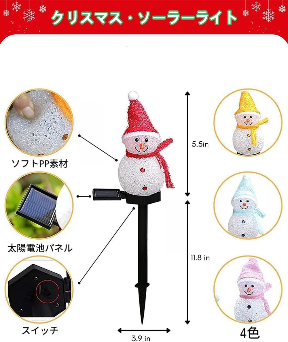 Holubec クリスマス飾りライト 4点セット ソーラーライト 雪だるま ガーデンライト 置物ライト イルミネーション 雪だるま 飾り LED 屋外 防水 ソーラー 埋込み式 夜間自動点灯 省エネ お祝い パーティー飾り led 照明 christmas/新年/誕生日/パーティー ガーデン装飾 雰囲気作り クリスマスグッズ (A)