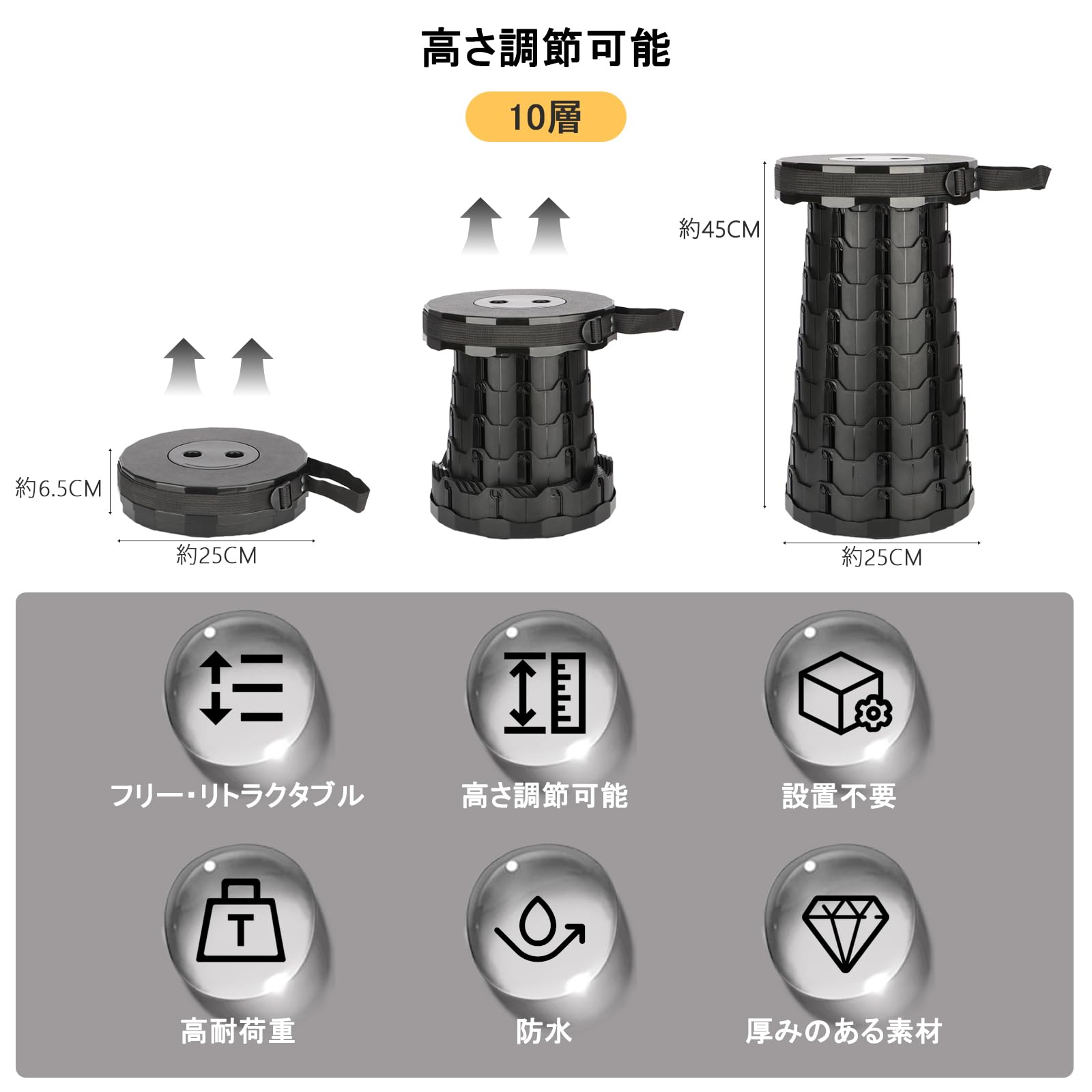 BIKYO 折りたたみ椅子 アウトドアチェア 伸縮式 キャンプ椅子 折り畳み式 キャンプスツール 軽量 コンパクト 持ち運び便利 耐荷重180KG 一秒開閉でき 高さ調整可能 6.5-45CM 滑り止め 釣り 旅行 バーベキュー 行列待ち アウトドアスポーツ 収納バッグ付き