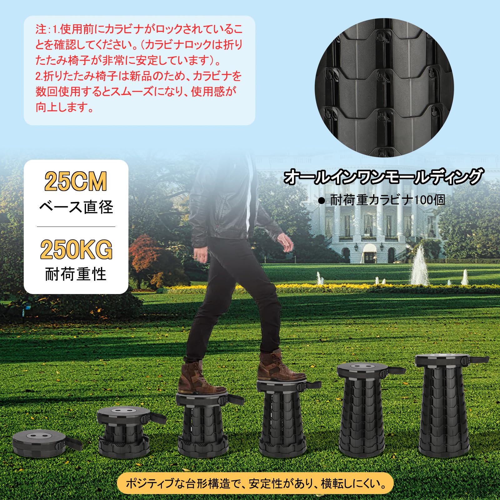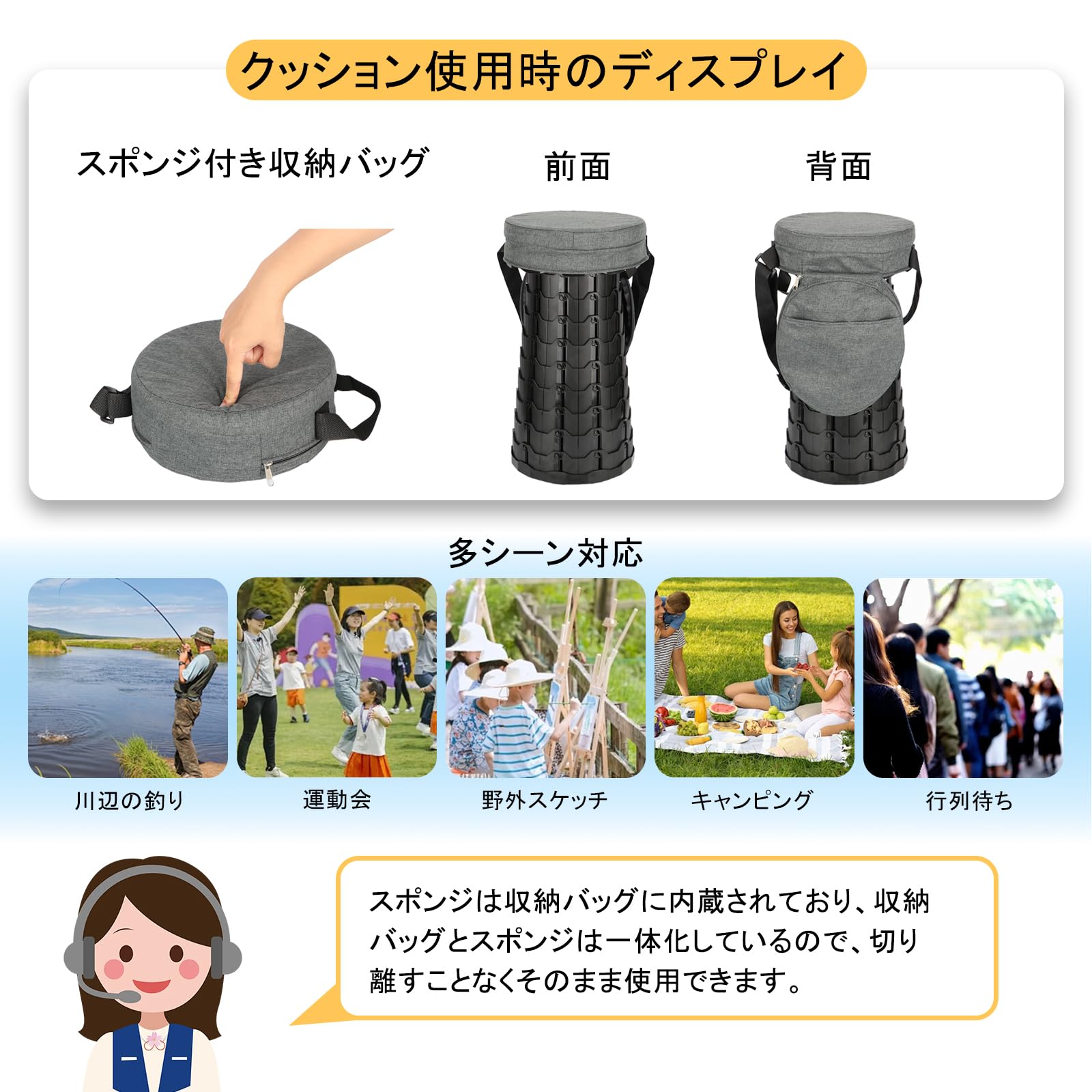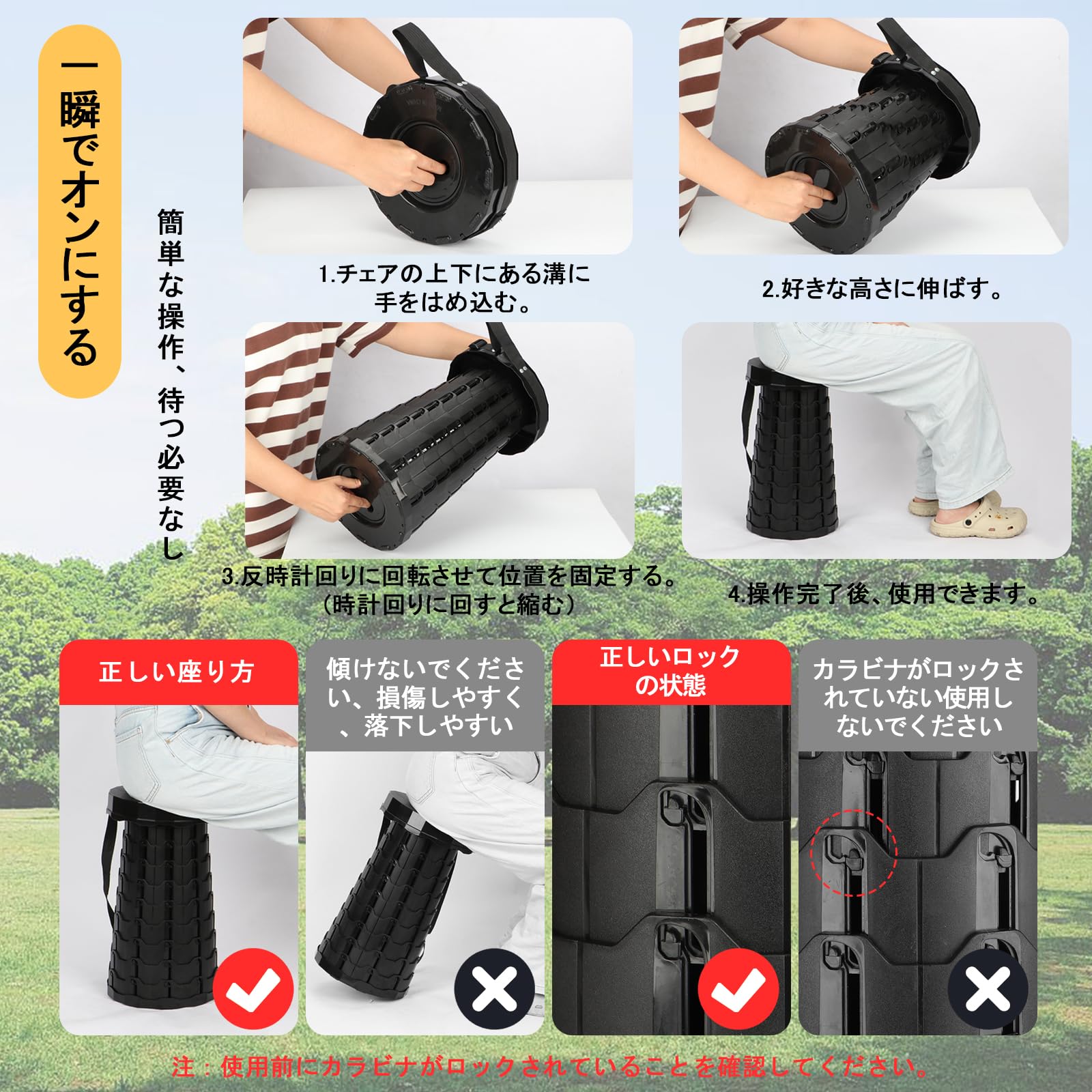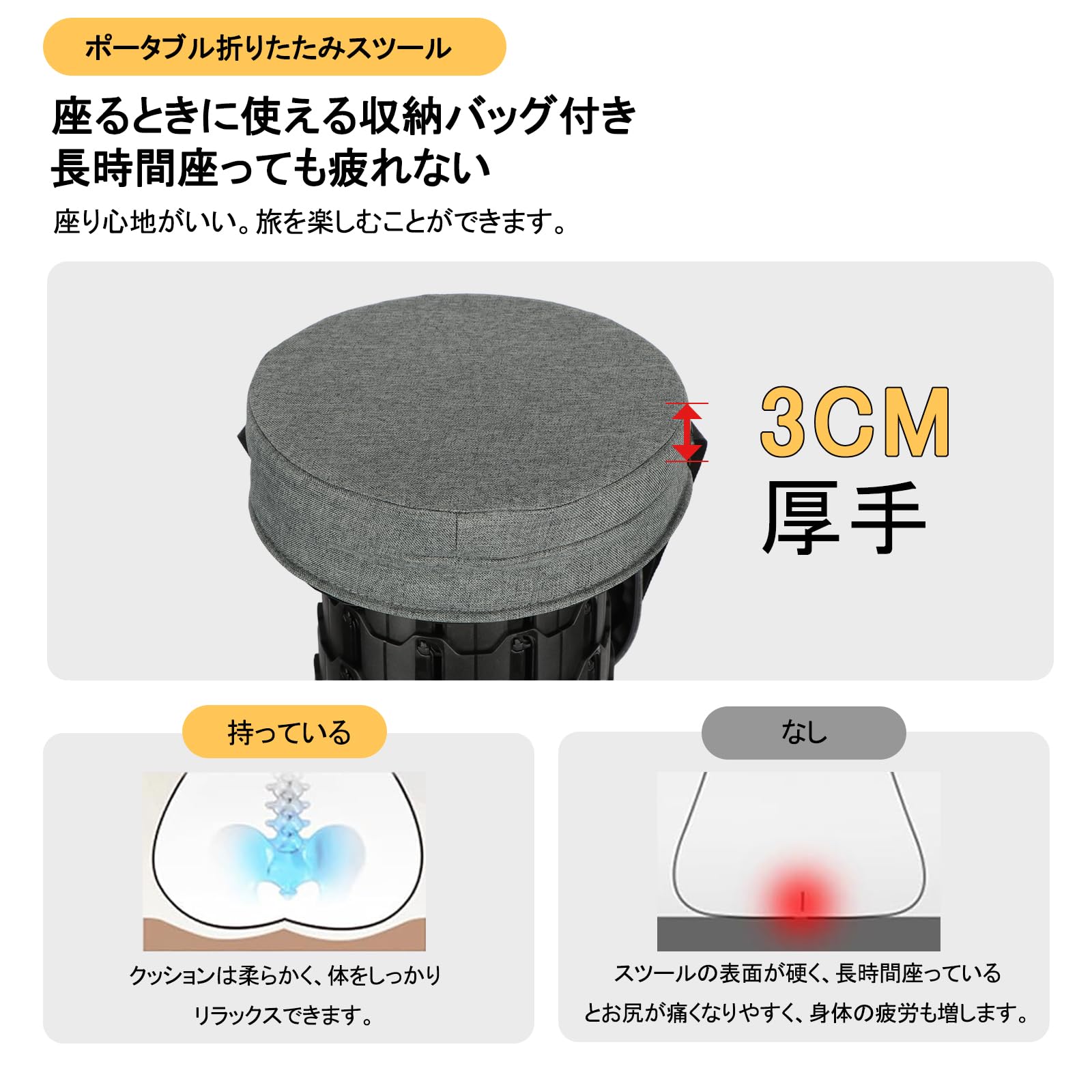 Cyoua 折りたたみ椅子 折り畳み椅子 アウトドアチェア 伸縮式 室内 簡易椅子 キャンプ椅子 おりたたみいす キャンプ チェア 持ち運び 軽量 アウトドア 座椅子 高さ調整可能 持ち運び便利 円形 コンパクト 防水 釣り 花見 山登り 行列待ち 収納袋付き
